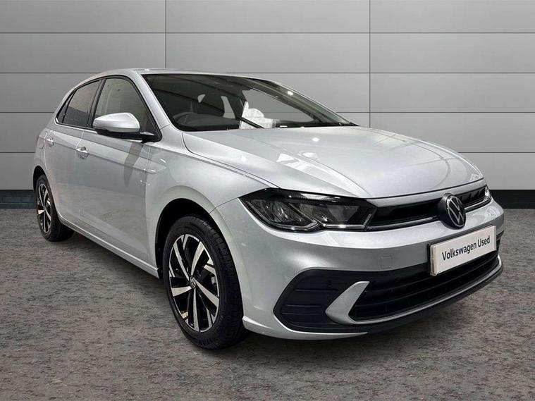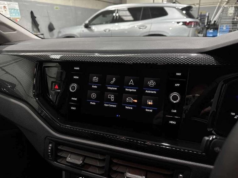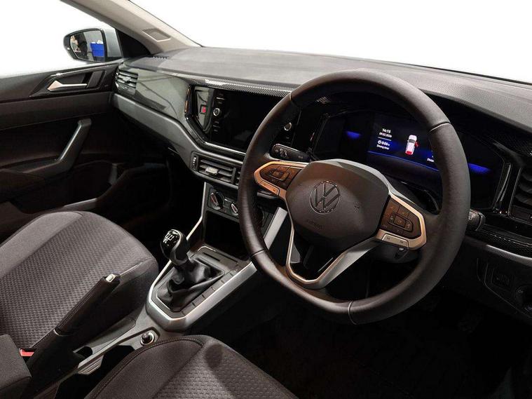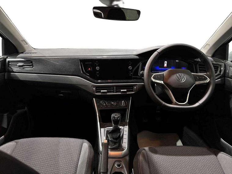 Adaptive cruise control without follow-to-stop and speed limiter, Advanced driver attention and drowsiness monitor, Bluetooth mobile phone interface, Dynamic road sign display, Emergency call service, Mobile phone preparation with inductive charging function, Multifunction front facing camera for distance control, Power assisted speed sensitive steering, Preparation for navigation system with media and internet package, Preparation for We connect and We connect plus, Rear view camera, Speedo and rev counter, electronic odometer, trip, service interval display and exterior temperature gauge, Standard rear axle, Travel Assist - Lane keeping system and traffic jam assist, Travel assist including emergency assist, Trip computer, Warning signal and warning light for front and rear seatbelts not fastened, Washer fluid level indicator, Wireless app connect, Front wheel drive, Rear shock absorpion, Start-stop system with battery regeneration (recuperation - energy recovery during braking), DAB Digital radio, Diversity antenna for FM reception, Automatic dimming interior rear view mirror, Automatic headlight control with LED separate daytime running lights with coming/leaving home function, Body colour bumpers with chrome inserts, Body colour door handles, Body colour door mirrors, Electric front windows, Engine badge deletion, Headlight range adjustment, Heat insulating and laminated safety glass windshield, LED Headlights, LED rear combination lamps, Power folding adjustable/heated exterior mirrors and front passenger exterior mirror lowering function, Rain sensor, Rear electric windows, Rear fog light, Rear side wing doors, Rear tinted glass from B-pillar backwards approx 65% tinted, Rear windscreen washer and wiper with interval delay, Third brake light, 12V power socket in centre console, 2 front and 2 rear reading lights with switch off delay and dimmer, 2 USB-C ports in the front, 2 USB-C charging sockets on the center console in the rear, 3 rear head restraints, 60/40 split folding rear seat and rear seat bench not split, Carpet mats, front and rear, Ceramique roof lining, Chrome plated radiator grille inserts, air vent surrounds and light switch surrounds, Door and side trim panel, Driver and front passenger seat height adjustment, Driver/passenger sunvisors with illuminated vanity mirrors, Front centre armrest, Front seat backrest storage pockets, Front standard seats, Handbrake lever handle in leather, Hartley/Thomas cloth upholstery, Headliner in recycled material, Isofix child seat preparation easy-fit (for two outer rear seats, and front passenger seat) compatible with I-size, Leather trimmed gear knob, Luggage compartment cover, Luggage compartment lighting, Removable luggage compartment floor, Single front passenger seat, Standard climatic zones, Standard pedal cluster, Three spoke leather wrapped multifunction steering wheel, Light and vision pack - Polo, 3 point height adj front seatbelts + pretensioners, 3 point seat belt for centre rear seat, 3 point seatbelts, outer rear with ECE lable, ABS, Driver and front passenger airbag with front passenger airbag deactivation, Drivers and front passengers safety optimised head restraints, ESC (Electronic stability control) + EDL (Electronic Differntial lock) and ASR (Traction control), Extended and predictive pedestrian/ cyclist protection, Front assist with autonomous emergency braking (for Adaptive Cruise Control ACC up to 130 mph), Front curtain and side airbags with center airbag, Front disc brakes, Hill hold control, Manual child lock in rear doors, Rear drum brakes, Single tone horn, Tyre pressure loss indicator, Alarm with interior protection, Anti-theft alarm system with interior monitoring, backup horn, and towing protection, Anti-theft wheel bolts, Electronic engine immobiliser, Lava stone black gloss/matt decorative inserts in dash and front door panels, 16" Torsby alloy wheels, Low rolling resistance tyres,