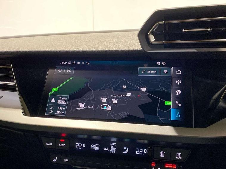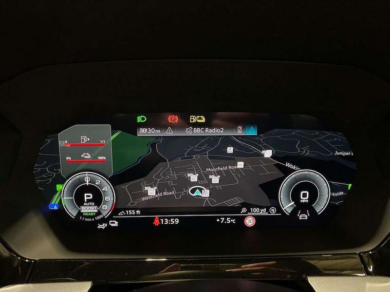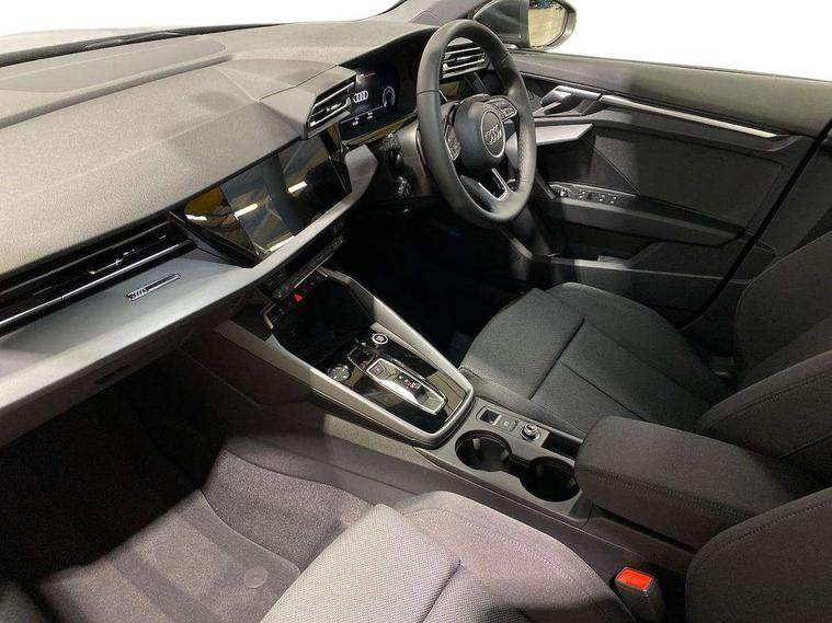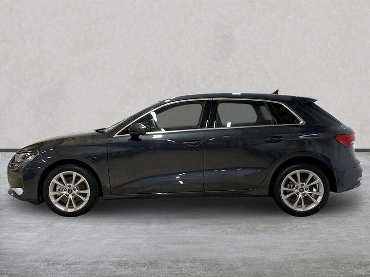 Adaptive cruise control (ACC), Adjustable speed limiter, Audi drive select (Auto, Comfort, Dynamic, Efficiency and Individual), Audi virtual cockpit plus - 12.3" full HD resolution dynamic digital instrument cluster, Automatic start/stop system with recuperation, Bluetooth interface, Camera based traffic sign recognition, Collision avoidance assistant, Driver attention and fatigue detection, e-Call (emergency call), Electromechanical power speed sensitive steering, Emergency assist, Intersection assist, Lane departure warning system, MMI Navigation Plus with high resolution 10.1" colour touch screen display, Park Assist with parking system Plus, Reversing camera, Service indicator, Smartphone interface with app store includes wireless Apple carplay, Android auto and Amazon alexa integration, Trip computer, Voice control system with natural language interaction, CCS socket for DC charging, Charging cable for public charging, mode 3 (type 2), 32 A, Standard suspension, Type 2 socket for AC charging, Audi Phonebox light with wireless charging, Audi sound system - 10 loudspeakers including centre loudspeaker and subwoofer, DAB Digital radio, USB ports with charging function in the rear, 3rd brake light, Acoustic glass windscreen, Aluminium window trim, Auto dimming frameless rear view mirror, Body colour exterior mirrors, Body colour roof spoiler, Electrically adjustable/heated/folding/auto dimming door mirrors with integrated LED indications + kerb view function for passenger side, Exterior model badging, Front electric windows, Front radiator grill in high gloss dark chrome, Front side air inlets in grained matt black with silver frame, Heat insulating glass windscreen, Invisible tailpipe, LED daytime running lights, LED headlights and halogen rear lights, Light and rain sensors, Rear diffuser and grill in grained matt black with silver frame, Rear electric windows, Rear side wing doors, Rear window, rear door windows and rear side windows in clear glass, Rear wiper, 12V socket and storage compartment in front centre console, 3 seat bench in 2nd row, 3 spoke leather multifunction steering wheel with gear shift paddles, 3-zone deluxe automatic air conditioning, 4 way electrically adjustable lumbar support for driver and front passenger, 60/40 split folding rear seat bench, Black front and rear floor mats, Convenience auxiliary air conditioning, Front and rear headrests, Front centre armrest, Front door sill trims with aluminium inlay, Heated front seats, Height and reach adjustable steering wheel, i-Size child seat mounting on the front passenger side and outer rear seats, i-Size and top tether on the outer rear seats, Manual boot compartment lid, Manually adjustable front seats, Routine cloth upholstery with front sports seats, Seat side bolsters, Single front passenger seat, Steel grey cloth headlining, Aluminium interior elements pack - A3, LED interior lighting pack -A3, 3x3 point rear seat belts, Acoustic vehicle alerting system, Driver and front passenger airbag with passenger airbag deactivation, Electronic Stabilisation Control (ESC) including ABS, ASR and EDL, First aid kit with warning triangle and 2 safety vests, Front side airbags with head airbags and interaction airbag, Hill hold assist, Pre-sense front with pedestrian and cyclist detection, Seatbelt monitoring, Tyre pressure loss indicator, Anti theft alarm, Anti-theft wheel bolts, Electronically operated child locks, Immobiliser, Black dashboard, Inlays in volcano grey fine paint finish, Tyre repair kit,