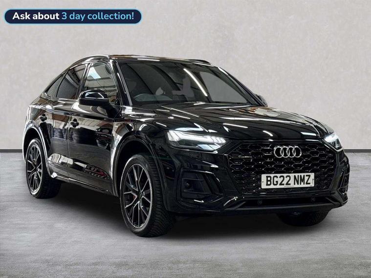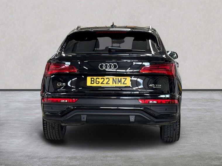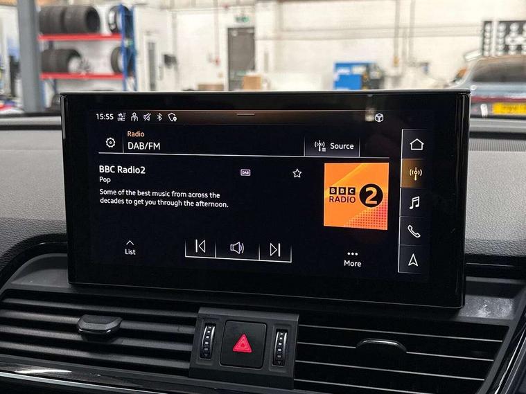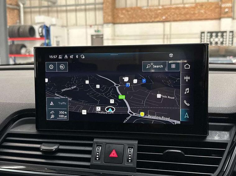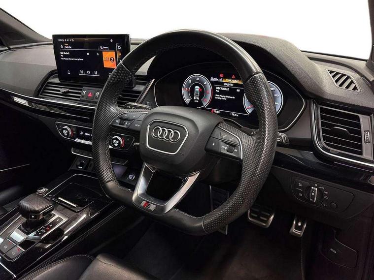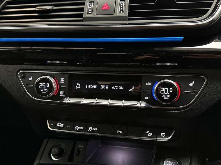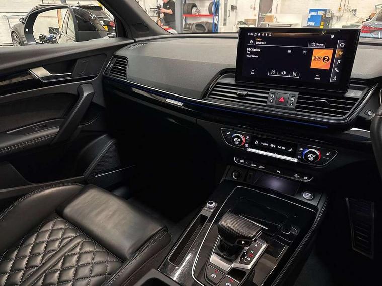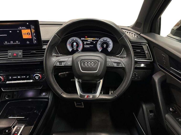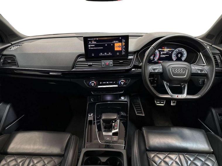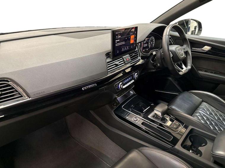Audi connect safety and service (e-call), Audi connect with Amazon Alexa Integration, Audi drive select, Audi virtual cockpit plus with 12.3" screen and three different layout designs, Audi wireless smartphone interface, Automatic start-stop system with coasting functionality and efficiency programme, Bluetooth interface, Electro - mechanical power assisted steering, MMI navigation plus with 10.1" touch screen, Power tailgate, Reversing camera, Service interval indicator, Voice control system with Audi hotword activation "Hey Audi", Diesel particulate filter, Quattro on demand, S line sports suspension, DAB Digital radio, Acoustic windscreen, Audi beam with Audi rings logo, Audi matrix LED headlights with dynamic front and rear indicators, Audi rings at front and rear in black, Audi rings decal on rear doors, Auto dimming door mirrors, Auto dimming rear view mirror, Automatic headlights and windscreen wipers, Black door mirrors, Black roof rails, Body colour underbody protection, Chrome plated exhaust trims, Daytime running lights, Door sills in Selenite silver, Electric adjustable/heated/folding door mirrors, Front air inlet surrounds in aluminium, Front and rear electric windows, Headlight washers, High gloss black B pillar trims and triangular rear door trim, High level LED brake light, Rear chrome trim strip below lights, Rear privacy glass and rear side windows, Rear side wing doors, Rear spoiler, Rear wiper, Roof bars, Without model and engine badging at rear, 2 x USB charging port with aux input socket, 3 rear headrests, 4 way electric lumbar support for driver and front passenger, 40:20:40 split folding 3 rear bench seat in 2nd row with rear centre armrest, Black cloth headlining, Comfort front centre armrest, Contrast stitching on seats, steering wheel and gear lever gaiter, Deluxe 3 zone electronic climate control, Electrically adjustable front seats, Fine Nappa leather upholstery with diamond pattern contrast stitching + front sport seats with S embossed logo, Front head restraints, Front/rear floor mats, Gear lever in black leather, Heated front seats, Height/reach adjustable steering column, Illuminated door sill trims with S logo, ISOFIX child seat mounting and top tether, Rear seat bench plus, Removable luggage compartment floor, Single front passenger seat, Stainless steel pedals, Sunvisors with vanity mirrors, Trunk roller cover, Artificial leather pack - Q5, Black styling package - Q5 Edition 1, Extended LED Interior multi coloured Lighting Pack - Q5, 3 point seatbelts on all seats, 6 airbags - Driver, front passenger, curtain and side airbags, Electrically operated child locks on rear doors, Electromechanical parking brake, Electronic stabilisation control including ABS, ASR and EDL, Front and rear brake calipers painted in red, Front passenger airbag deactivation, Hill descent control, Hill hold assist, Multi collision brake assist, Pop-up bonnet for pedestrian protection, Pre sense city, Seat belt force limiter, Seatbelt monitoring, Tyre pressure warning, Warning triangle and first aid kit, Anti theft alarm, Anti-theft wheel bolts, Keyless Go access/ignition system, Remote central locking, Piano black finish inlay,