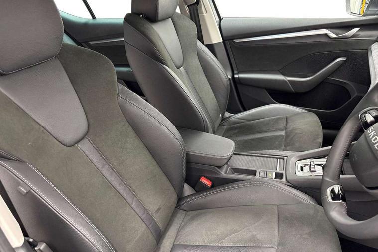 1x USB Typc C port in rear view mirror, 4x USB Type C ports - 2x in front centre console and 2x in rear (45W), Drive mode selection, Driver fatigue sensor, eCall emergency system, Electro-mechanical power steering, Front assist system, Traffic jam assist, Traffic sign recognition, Turn Assist, Virtual Cockpit - 10.25" digital display, Voice control system, Wireless charging (15W) with cooling function, Wireless SmartLink for Apple CarPlay and Android Auto, 13" touchscreen display with navigation, DAB Digital radio, Aero front windscreen wipers with intermittent function, Auto dimming rear view mirror, Body colour bumpers, Body colour door mirrors and handles, Chrome grille surround, Chrome strip in lower front bumper, Chrome window surrounds, Electric front and rear windows, Heated rear windscreen, High level third brake light, Ice scraper in fuel cap, LED daytime running lights, LED Headlights, Logo projection in front doors, Rain and light sensors, Rear fog light on one side, Rear privacy glass, Rear side wing doors, 12 volt socket in boot, 3 rear headrests, 3 seat bench in 2nd row, 4 foldable roof handles, Boot net programme, Electric auxiliary air heater, Front head restraints, Heated front seats, Illuminated glovebox, Interior door handles in dark chrome, Jumbo Box storage, Luggage compartment lighting x2 lights, Mechanical rear seat release from boot, Parcel shelf - folding, Single front passenger seat, Steering wheel in black leather with black stitching, Storage compartments in left and right of boot, Sun visors with mirrors, Sunglasses storage, Ticket holder, Umbrella in door panel, Unsplit rear bench seat, split folding backrest with centre armrest with cupholder, Comfort package - Octavia, 3x3 point rear seat belts, Alarm with interior monitoring, tilt sensor and back up horn, Curtain airbags and front side airbags, Driver and front passenger airbags, Drivers knee airbag, Electronic parking brake, ESC including ABS, EBV, MSR, ASR, EDS, HBA, DSR, Front central airbag, Hill hold assist, ISOFIX on front passenger seat and outer rear seats, Passenger airbag deactivate switch, Three point seat belts in front and rear, Two tone horn, Tyre pressure monitor, Visual and acoustic seat belt reminder, Warning reflectors in front door, Anti-theft wheel bolts, Keyless start/stop, Remote central locking, Chrome air vent surrounds,
