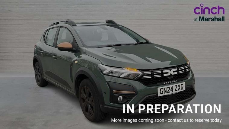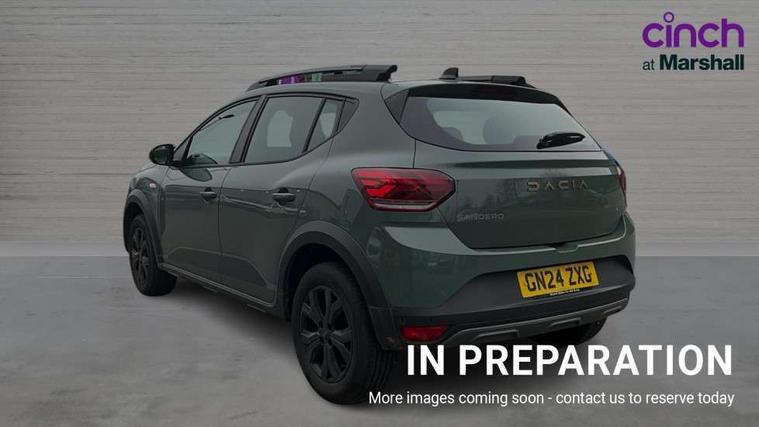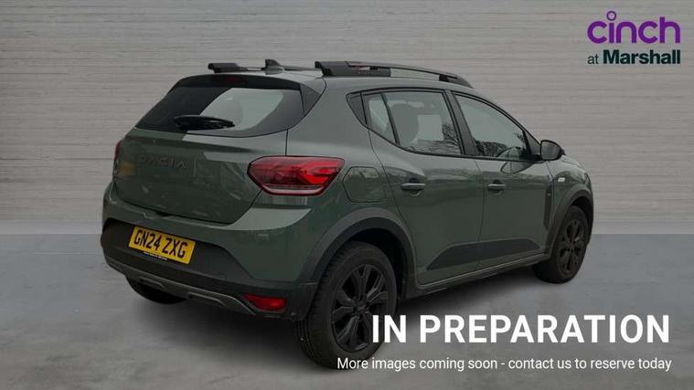 3.5" TFT instrument panel with on-board computer, Blind spot warning, Cruise control with speed limiter, Driver attention warning, eCall emergency call system, Eco mode, Electric power assisted steering, Emergency Stop Signal (ESS), Event data recoder, Extended grip switch, Front parking sensors, Lane departure warning, Lane keep assist, Rear parking sensors, Rescue code, Rev counter, Reversing camera, Stop/start system, Traffic sign recognition with speed alert/Intelligent speed assist (ISA), 8" MediaNav with DAB Radio + Smartphone replication + Bluetooth + 6 Speakers with Apple Carplay and Android Auto, USB connection for data transfer and charging, USB socket, USB-C plug, USB-C plug rear, 3 speed windscreen wipers, Auto lighting, Automatic wipers, Black radiator grille with white inserts stepway inscription, Body colour door handles, Body coloured bumpers, Copper Brown Dacia inscription on tail gate, Copper brown deco part on fog lamp area, Copper brown door mirrors, Copper brown stepway inscription on roof bars, Door sills in topographic pattern, Drivers one touch electric windows, Electrically adjustable and heated door mirrors, Front electric windows, Front fog lights, Heated rear window, High level third brake light, Lateral sticker with topographic pattern, LED automatic daytime running lights, LED Y-shape Dacia signature lighting, Megatith modular roof bars, Rear electric windows, Rear side wing doors, Rear wash/wipe, Shiny black shark antenna, Snorkel sticker with topographic pattern, Tinted windows, Topographic door protection decals and snorkel animation, 1/3 to 2/3 split folding rear seats, 12 volt front socket, 12 volt rear socket, 3 height adjustable rear headrests, 3 seat rear bench, Automatic air conditioning, Copper brown doors deco parts, Driver and passenger vanity mirror with cover, Fixed smartphone holder on dashboard, Fog grey animation on air vents, Fog grey interior door handles, Front and rear rubber mats with topographic pattern, Height adjustable drivers seat with armrest, Height adjustable front headrests, Height/depth adjustable steering wheel, High central armrest with console storage, Isofix points for child seats in both outer rear seats, Micro-cloud grey fabric on dashboard, MicroCloud fabric washable TEP upholstery, Single front passenger seat, Soft feel steering wheel, Steering wheel controls, 3x3 point rear seatbelts, ABS and Emergency brake assist, Advanced emergency braking system, Alcohol imoboliser predisposal, Automatic emergency braking system, Child locks on rear doors, Door open visual and audible warning, Driver airbag, EBD - Electronic brakeforce distribution, Electronic parking brake, ESC (Electronic Stability Control), ESP + Hill Start Assist, Front curtain airbags, Front seatbelt pretensioners, Front side airbags, Height adjustable front seatbelts, Passenger airbag, Seatbelt reminder for driver and front passenger, Side impact protection, Tyre pressure monitor, Automatic central locking, Immobiliser, Keyless entry, Remote central locking, Decopart on instrument panel and door with textile, 16" Mahalia black alloy wheels,