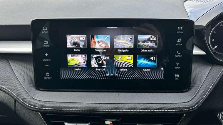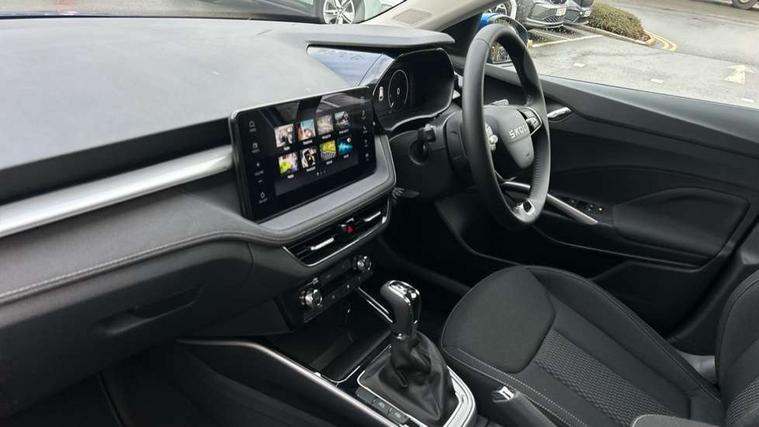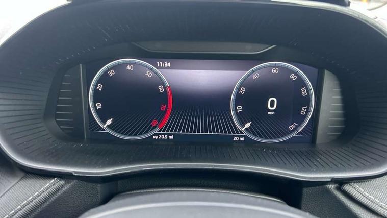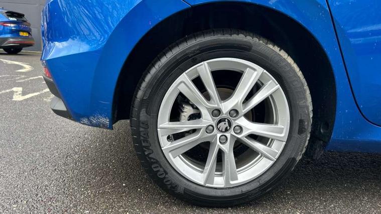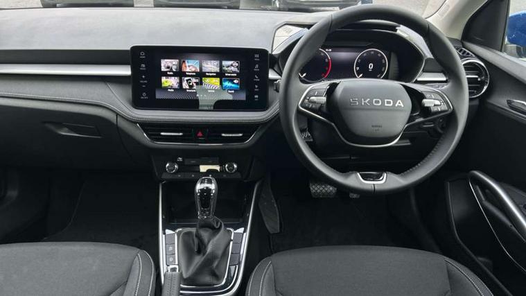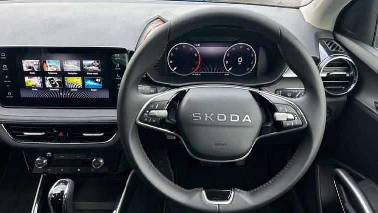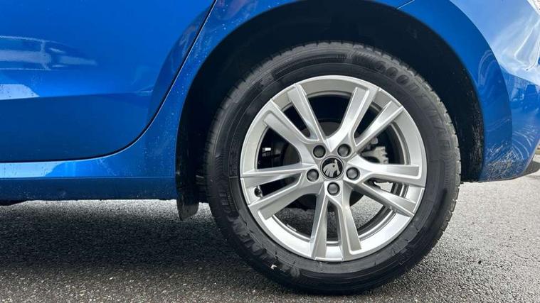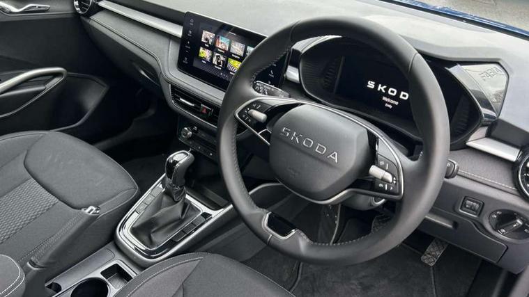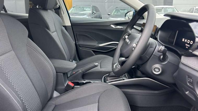 Advanced driver attention and drowsiness monitor, Bluetooth connection, Driver alert system, Electromechanical power steering, Exterior temperature gauge, Service interval indicator, Traffic sign recognition, Virtual cockpit with 10.25" colour display, Wireless SmartLink for Apple CarPlay and Android Auto, 6 Speakers (4 in front and 2 in rear), 9.2" colour display skoda navigation system with voice control and web radio, Auxiliary socket for external MP3 player, DAB digital radio reception, Auto dimming rear view mirror, Body colour door mirrors, Body coloured bumpers, Chrome window surround, Door mirror integrated indicators, Front and rear electric windows, Front window wiper intermittent control, Headlight range control - Automatic, Ice scraper in fuel cap, LED 3rd brake light, LED daytime running lights with coming and leaving home feature, LED rear lights, Privacy glass, Rear LED fog light, Rear side wing doors, Rear window wiper with washing nozzles, Roof mounted spoiler, SKODA tailgate lettering in chrome, Unique dark chrome design logo on alloy wheels, 2 LED reading lights in front and rear, 3 rear headrests, Backrest split and folding, Central console with fixed cup holder and storage box, Chrome handbrake release button, Comfort seats, Door sills with fabia badging, Dual zone air conditioning with climatronic electronic control, Fabric upholstery, Front centre armrest, Gearshift knob/handle in leather, Grain satin black interior door handles, Hand brake lever handle in leather, Height adjustable front headrests, Height adjustable front seats, Height adjustable steering wheel, ISOFIX and TopTether anchorage points to the outer rear seats, ISOFIX and TopTether on the front passenger seat, Luggage compartment lighting, Manually adjustable lumbar support in front seats, Pollen filter, Rear seat bench unsplit, Single front passenger seat, Skoda lettering on steering wheel, Storm grey headlining, Sun visors with mirror and airbag label on passenger side, Textile floor mats, Ticket holder, Ambient lighting pack - Fabia Hatchback, 3-point height adjustable front seats belts with pretensioner and force limiter, Automatic warning lights in case of crash, Driver and passengers airbag with switch off function, e-Call+, ESC including ABS, MSR, ASR, EDS, HBA and XDS, Front and rear seat belt warning, FRONT ASSIST (AEB City and AEB Inter Urban), Front side airbags, Head airbags, Hill hold control, One tone horn, Pedestrian protection, Three rear 3-points safety seat belts with pretensioner and force limiter including stop function for outer rear seat belts, Tyre pressure monitoring system, Anti-theft alarm system including immobiliser, interior monitoring, backup horn, and towing protection, Central locking with radio remote control, interior controls, SAFE function and 2 foldable keys, Chrome edged air vents, Grain satin black central console cover, Metallic grey upper decorative trim, Satin black door and side trim panel in front, Textile microsuede grey lower decorative trim with art grey stitching, Anti-theft wheel bolts protection, Super-low rolling resistance tyres,