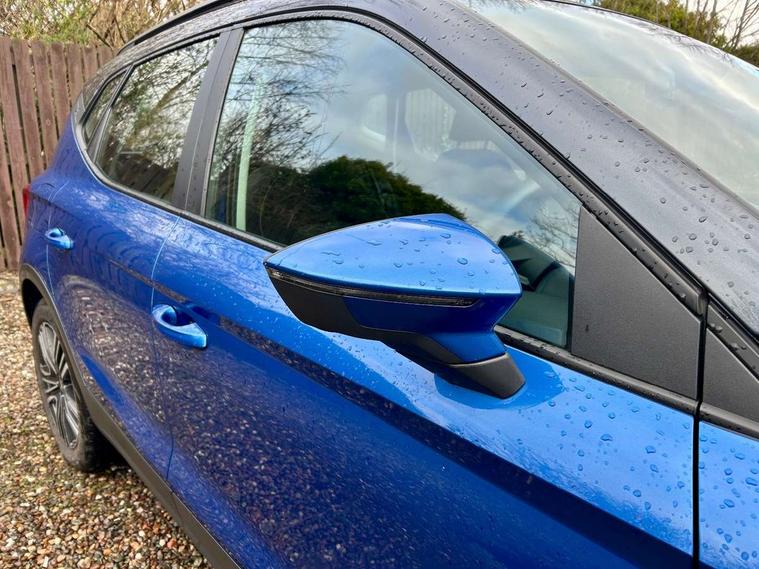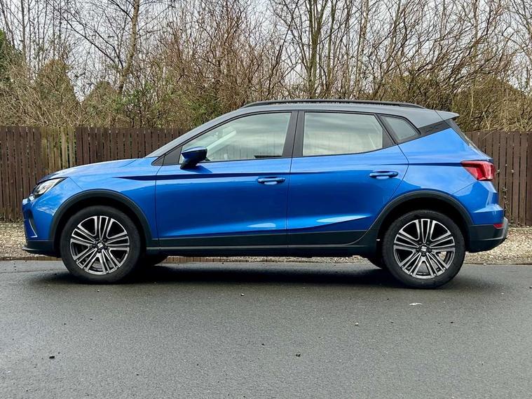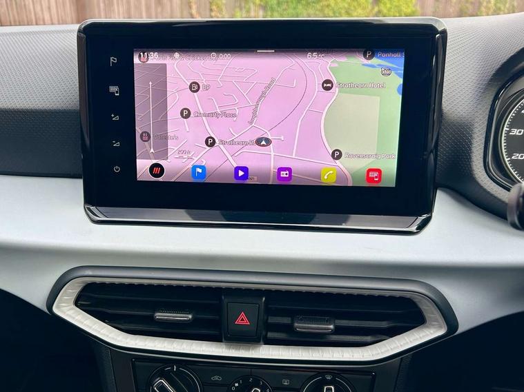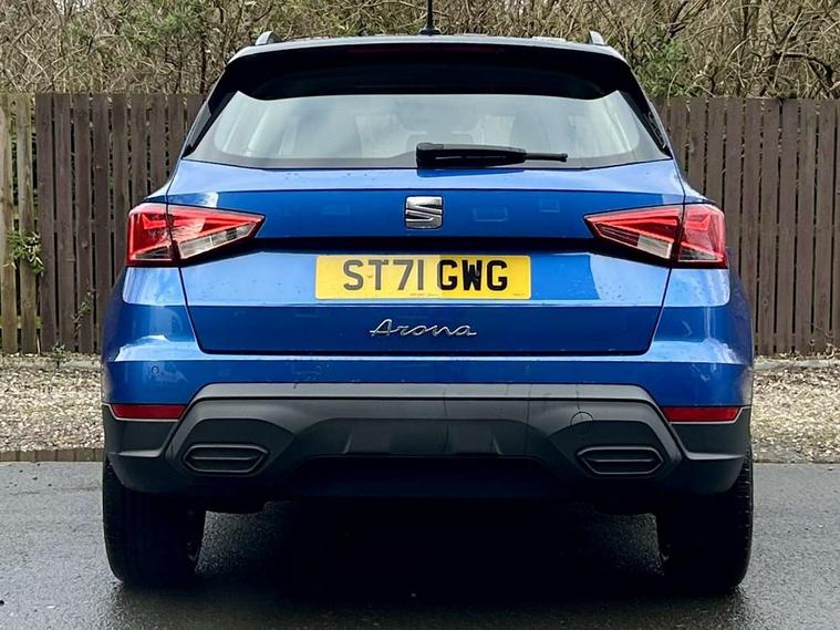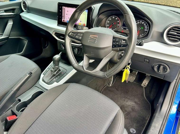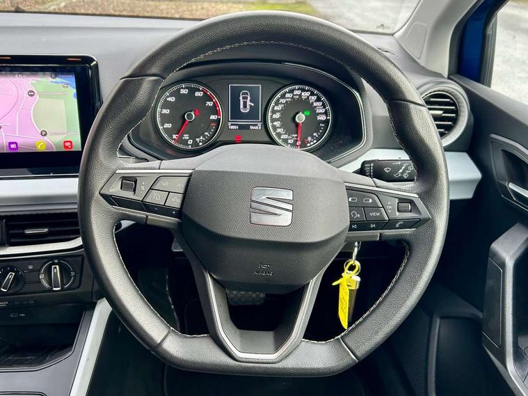 'Lights On' Reminder warning buzzer, Cruise control and speed limiter, Digital clock, Electric speed sensitive power steering, Full Link Smartphone Integration with Mirror Link, Apple Car Play, Google Android Auto with USB Type C cable for Apple and Android compatibility, Lane keeping system, Low fuel warning light, Outside temperature display, Rear parking sensor, RPM counter, Seat connect with safety, service, remote and online, Trip computer, Bluetooth interface for hands free and audio streaming, DAB digital radio and AM/FM radio, Steering wheel mounted audio controls, Anti theft roof antenna, Automatic activation of hazard warning lights, Black roof rails and window surrounds, Black window trims, Body coloured bumpers, Body coloured door handle inserts, Body coloured door mirrors, Dimming rear view mirror, ECO LED automatic headlights and LED daytime running lights, Electric adjustable door mirrors, Electric front/rear windows, Hidden exhaust pipe, Protective side mouldings, Rear spoiler, Rear window wash/wipe, Visible VIN plate, Windshield wiper with intermittent control and potentiometer, 2 cupholders, 60/40 split folding rear seat, Air conditioning, Cloth upholstery, Double boot floor, Driver sunvisor with covered mirror + card holder, Dust/pollen filter, Flat bottomed leather steering wheel/gear knob/handbrake, Front courtesy light with front reading lights, Gear shift indicator, Grey interior roof, Height adjustable front seats, Height/reach adjustable steering column, Honey mustatd coloured air vent, Illuminated boot, Instrument lighting with brightness control, ISOFIX points in outer rear seats with top tether anchorage points, Passenger sunvisor with vanity mirror, Two front and three rear height adjustable headrests, Connectivity pack plus - Arona, Interior chrome pack - Arona, 3 point seatbelts on all rear seats, ABS, Active front headrests, Child locks on rear doors, Driver and front passenger airbags with front passenger airbag de activation, front side and curtain airbags, Electronic stability control, Emergency Brake Assist (EBA) and front assist, Front and rear seatbelt reminder, Hill hold control, Multi-Collision braking, Tiredness recognition system, Traction control, Tyre pressure monitoring system, Electronic engine immobiliser, Locking wheel bolts, Remote central locking + deadlocks, Titan black dashboard, 17" Dynamic machined alloy wheels,