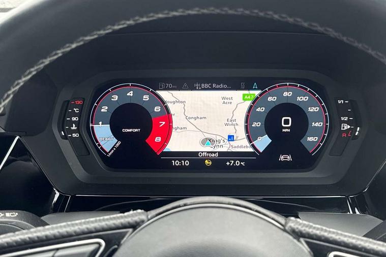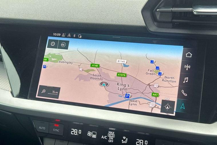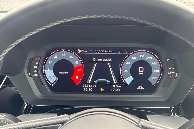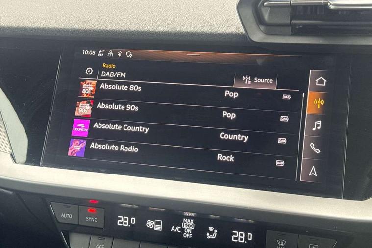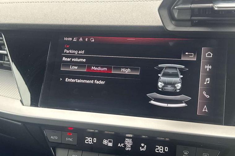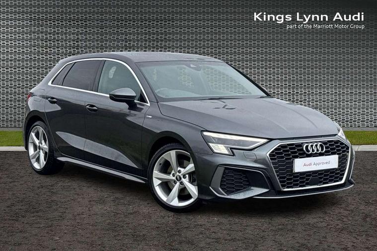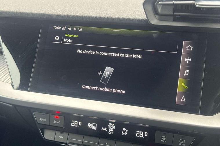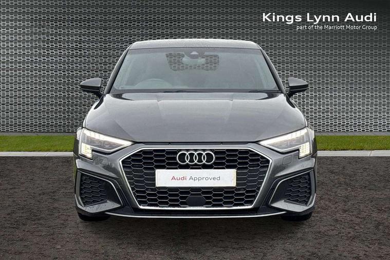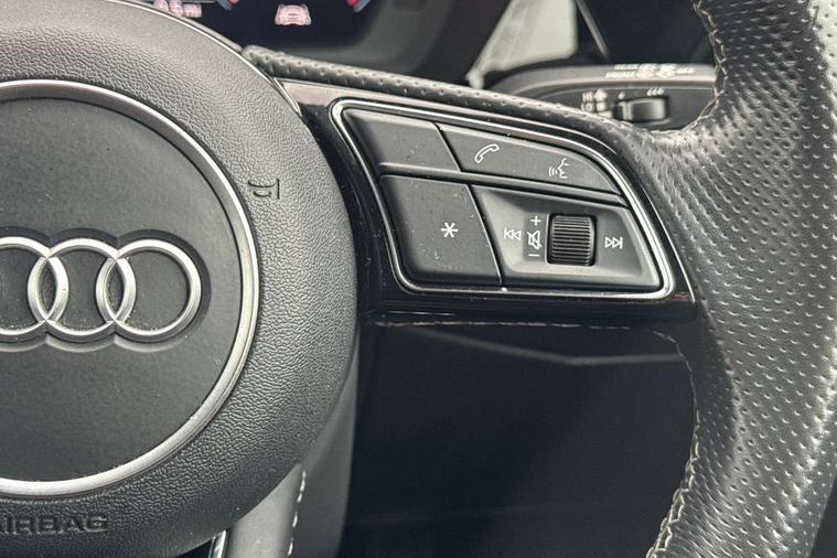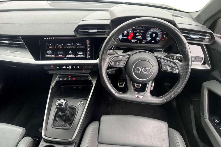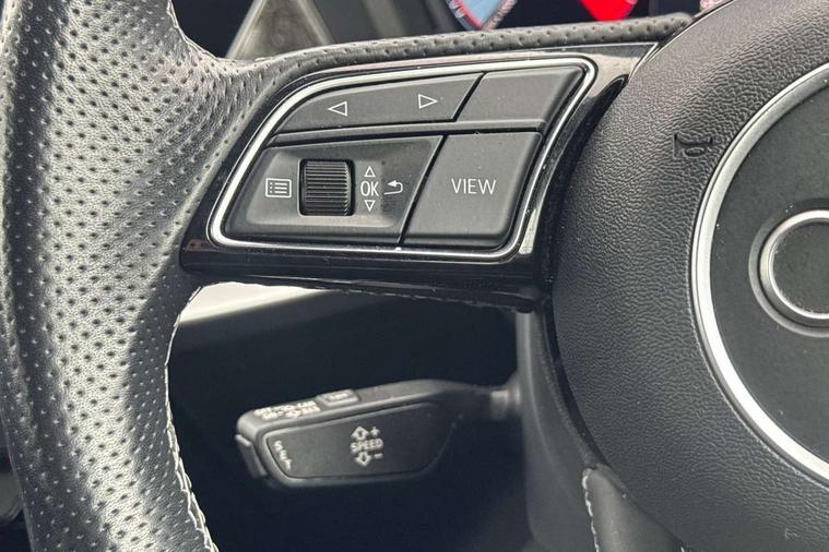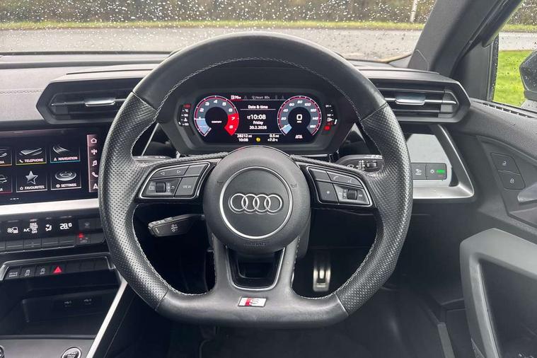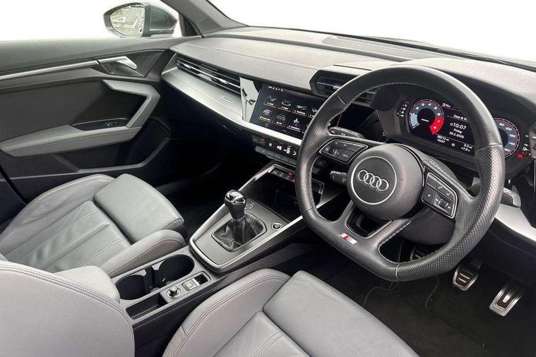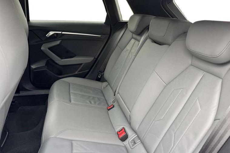 Audi connect emergency call and service, Audi drive select (Auto, Comfort, Dynamic, Efficiency and Individual), Audi smartphone interface, Audi Virtual Cockpit - 10.25" digital and colour instrument cluster, Automatic start/stop system with recuperation, Bluetooth interface, Collision avoidance assistant, Cruise control, Electromechanical power speed sensitive steering, Lane departure warning system, MMI Navigation Plus with high resolution 10.1" colour touch screen display, Rear parking sensors, Service indicator, Trip computer, Voice control system with natural language interaction, 2xUSB-C connection with data and charging functions, 6 passive loudspeakers, DAB Digital radio, Acoustic glass windscreen, Aluminium window trim, Auto dimming frameless rear view mirror, Electrically adjustable/heated/folding/dimming door mirrors with kerb view includes integrated LED indications + kerb view function for passenger side, Front electric windows, Illuminated aluminium inserts front door sills with S logo, LED daytime running lights, Light and rain sensors, Privacy glass - dark tinted rear window, rear door and side windows, Rear electric windows, Rear side air outlets in grained matt black, Rear wiper, S line bumpers, S roof spoiler, 12V socket and storage compartment in front centre console, 40/20/40 split folding rear seat bench with cupholder, Black cloth headlining, Dual zone electronic climate control, Front and rear centre armrest in leather, Front and rear headrests, Front/rear floor mats, Height and reach adjustable steering wheel, Interior lighting - glove compartment light and right hand side, Luggage compartment floor covering, Manual boot compartment lid, Manually adjustable front seats, Seat side bolsters, Stainless steel pedals and front footrest, Twin leather upholstery with front sports seats S embossed logo, Aluminium interior elements pack - A3 Sportback, S line styling pack - A3 Sportback, 3x3 point rear seat belts, Driver and front passenger airbag with passenger airbag deactivation, Electronic Stabilisation Control (ESC) including ABS, ASR and EDL, First aid kit with warning triangle and 2 safety vests, Front side airbags with head airbags and interaction airbag, Hill hold assist, Pre-sense front with pedestrian and cyclist detection, Seatbelt monitoring, Tyre pressure loss indicator, Anti theft alarm, Anti-theft wheel bolts, Electronically operated child lock, Immobiliser, Remote control central locking, Accent surfaces in the dashboard and centre console in platinum grey silk effect paint finish, Dark spectrum aluminium inlays,