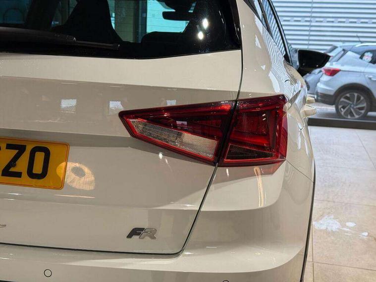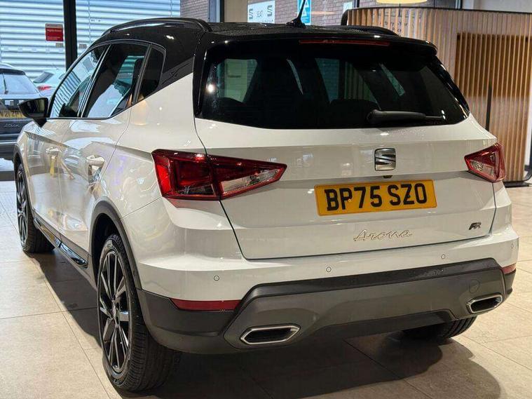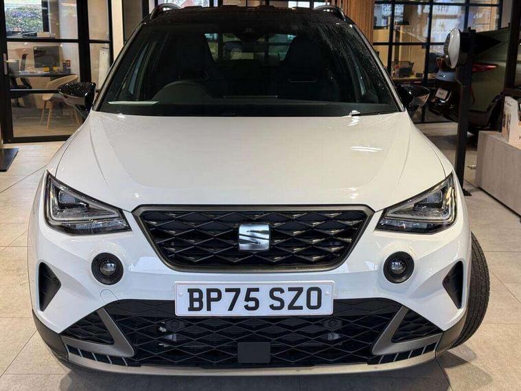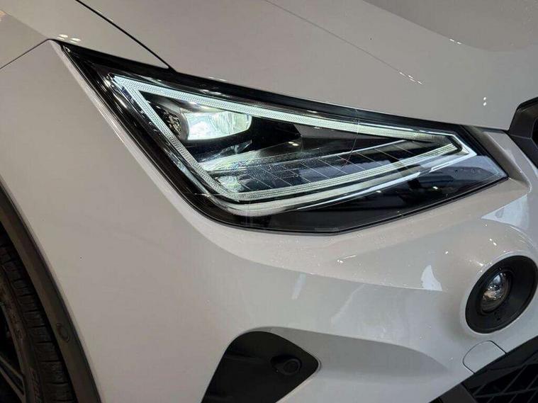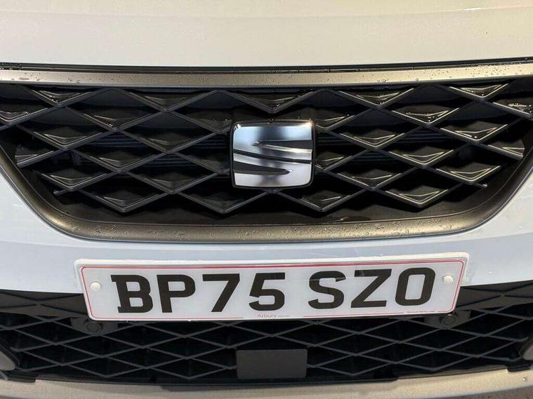 'Lights On' Reminder warning buzzer, 10" Digital cockpit, Digital clock, E-call, Electric speed sensitive power steering, Full link smartphone integration with mirror link, wireless apple carplay, Google android auto + USB Type C cable for apple and android devices, Lane keeping system, Low fuel warning light, Outside temperature display, Park assist system, Rear view camera, RPM counter, SEAT Drive profile - Four different models normal-sport-eco-individual, steering response, throttle response and gear shifts mode, Trip computer, Wireless phone charger, 9.2" colour touchscreen with navigation system, voice control and USB port (type c), Bluetooth interface for hands free and audio streaming, DAB digital radio and AM/FM radio, Steering wheel mounted audio controls, Anti theft roof antenna, Auto dimming interior rear view mirror, Automatic activation of hazard warning lights, Black roof rails and window surrounds, Black side skirts, Body coloured bumpers, Body coloured door handle inserts, Dark tinted rear windows, Electric front/rear windows, Electrically adjustable, heated and folding door mirrors, Front fog lights with cornering function and rear fog light, FULL LED automatic headlights with dynamic headlight range control, coming and leaving home, LED daytime running lights, Lasered lettering on B pillar, LED rear tail lights and licence plate lights, Protective side mouldings, Rain sensing wipers, Rear side wing doors, Rear spoiler, Rear window wash/wipe, Roof colour door mirrors, Third brake light, Twin exhaust pipe styling hidden exhaust pipe, Visible VIN plate, 2 cupholders, 3 seat bench in 2nd row, 60/40 split folding rear seat, Aircare filter, Black interior roof, Double boot floor, Driver sunvisor with covered mirror + card holder, Dual zone climate control, Front courtesy light with front reading lights, Front seat back storage pockets, Gear shift indicator, Grey interior air vents, Heated front seats, Height adjustable front seats, Height/reach adjustable steering column, Illuminated air vent surrounds, Illuminated boot, Instrument lighting with brightness control, Interior ambient lighting, Interior light in footwell, central console and door panel, ISOFIX points in outer rear seats with top tether anchorage points, Microsuede cloth upholstery, Passenger sunvisor with vanity mirror, Perforated flat bottomed leather steering wheel/gear knob/handbrake with red stitching and FR logo, Potentiometer, Single front passenger seat, Sports cloth bucket seats, Steering wheel mounted gearshift paddles, Two front and three rear height adjustable headrests, Interior chrome pack - Arona, Safe and driving pack (S) - Arona, Safety and driving pack (M) - Arona, ABS, Active front headrests, Child locks on rear doors, Driver and front passenger airbags with front passenger airbag de activation, front side and curtain airbags, Emergency Brake Assist (EBA) and front assist, Front and rear seatbelt reminder, Hill hold control, Multi-Collision braking, Tiredness recognition system, Traction control, Tyre pressure monitoring system, Alarm with back up horn with tow away protection, Deadlock, Electronic engine immobiliser, KESSY Keyless entry and go, Locking wheel bolts, Remote central locking, Titan black dashboard, 18" Black alloy wheels,