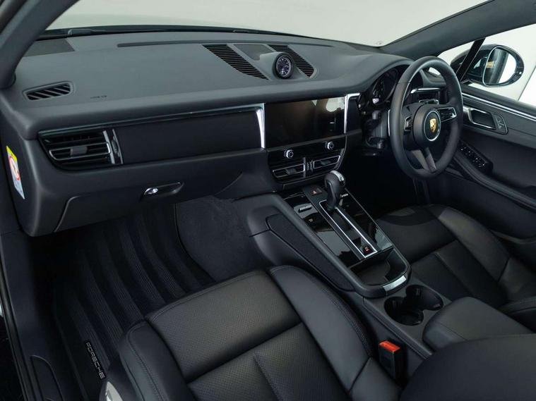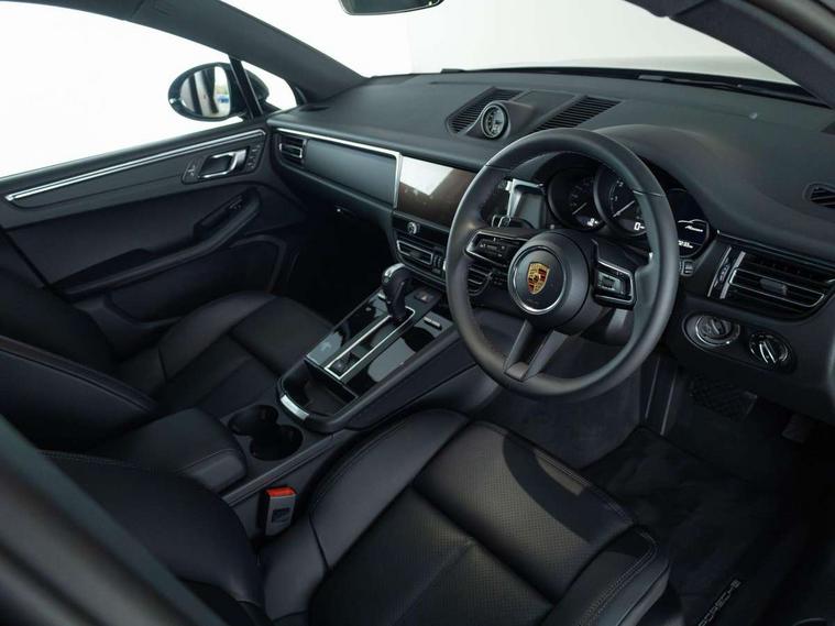 Analogue clock on dashboard, Automatic start/stop system, Automatic tailgate, Cruise control + speed limiter, eCall emergency call system, Instrument cluster with high resolution 4.8-inch TFT display, gear indicator for PDK, service interval display, external temperature indicator, fuel gauge, Off-road button, On board computer, Porsche Communication Management (PCM) including online navigation module, mobile phone preparation, audio interfaces and voice control system, Sports button in centre console, 7-Speed Porsche Doppelkupplung (PDK) with automatic mode and manual controls (gearshift paddles) on steering wheel, Direct fuel injection (DFI), Gasoline particulate filter, VarioCam camshaft control for inlet and exhaust valves, 2 USB sockets in rear centre console, Apple CarPlay with Siri voice recognition, Connect Plus including online navigation, LTE communication module with SIM card reader, wireless internet access, Porsche Car Connect services, DAB Digital radio, Porsche Vehicle Traking System Plus (PVTS Plus), Smartphone compartment with wireless charging, Two USB C charging and connectivity ports in the front centre console storage compartment, Active radiator grille shutters, Automatic headlight activation including welcome home lighting, Bumper system with high strength cross members and two deformation elements + One threaded fixture point for towing eye contained in onboard tool kit, Dynamic cornering lights, speed-sensitive headlight and dynamic range control, adverse weather function, four-point LED daytime running lights, Electric front and rear windows with remote closing function + anti trap + one touch, Electrically folding and heated exterior mirrors, Front light modules with LED position lights and direction indicators, Front windscreen wipers with two speeds, intermittent wipe and rain sensor, Front with integrated cooling air intakes, Fully galvanised body, Heated rear window with automatic switch off, High level 3rd LED brake light integrated into roof spoiler, Loading edge protection in aluminium, Rear side wing doors, Rear window wiper with intermittent function and washer jet, Roof spoiler in high gloss black, Towbar preparation, 3 adjustable rear headrests, 3 rear seats, 3 zone auto climate control separate temperature setting+air recirculation include quality sensor, airflow regulation+AC MAX button+humidity sensor, 4 way adjustable front head restraints, 40:20:40 split folding rear bench seat, Cloth hook b-pillar, Fold up centre console armrest with fore/aft adjustment, Front and rear bottle holders in door panels, Front passenger seat, Glove compartment, Isofix fastening system for child seats on outer rear seats, Luggage compartment cover, Particle/pollen filter with active carbon filter, Rear armrest with 2 cupholders, Storage bin in centre console, Storage compartment in side of luggage compartment and storage compartment in spare wheel recess, Storage pocket in front and rear doors, Two integrated cup holders in front with variable diameter, Two socket 12V power outlets in front console and luggage compartment, Uncovered storage compartment in centre console, Ambient comfort lighting pack - Macan, Lower exterior trim package in black - Macan, 3-point automatic seatbelts with front and outer rear seats pretensioners and force limiter + manually height adjustable seatbelt + reminder warning, Auto hold function, Black painted brake calipers, Child locks on rear doors, Curtain airbags along entire roof frame and side windows from A pillar to the C pillar, Electronic parking brake, Front passenger airbag deactivation facility for installation of child seats indicator in overhead console, Front side airbags integrated into seat, Full size driver and passenger airbags, Internally vented brake discs with diameter of 350mm at front and 330mm at rear, Multi-Collision braking, Porsche hill control (PHC), PTM(Porsche Traction Management) and All-wheel drive with map-controlled multi-plate clutch, Roll over sensor for curtain airbag and seatbelt pretensioners, Side impact protection in doors, Tyre pressure monitoring system, Vehicle stability system, Porsche stability management (PSM) including ABS, ASR, ABD, MSR and trailer stability management, Vented discs brake with 4 piston aluminium monobloc fixed caliper at front, Vented discs brake with combination floating calipers at rear, Alarm system with ultrasonic interior surveillance, Dashcam prep, Engine immobiliser with key transponder, Remote control central locking, Accent trims with silver coloured finish,