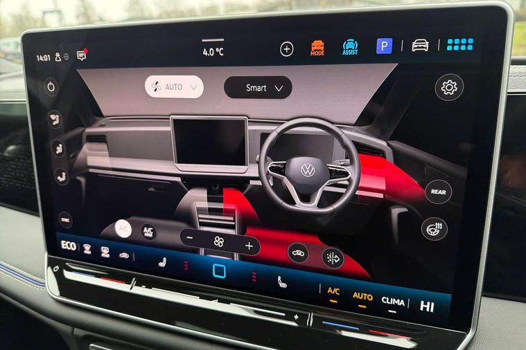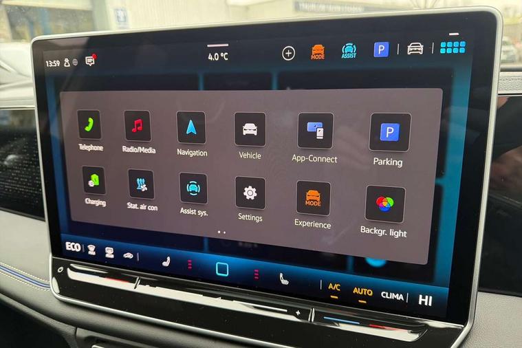 Adaptive cruise control (ACC), Advanced driver attention and drowsiness monitor, Bluetooth mobile phone interface, Digital Cockpit Pro - 10.25" high resolution dash display screen with customisable menus and information, Driving profile selection, Dynamic road sign display, E-Sim card for online connectivity, Easy Open and Close Electric tailgate with virtual pedal activation, eCall emergency call service, Extended safety system (proactive passenger protection system), Front Assist - Autonomous emergency braking with pedestrian and cyclist monitoring, IDA voice assistance with ChatGPT, Inductive smartphone charging without external antenna connection, Lane change system, Side assist, Rear traffic alert and Exit warning system, Multifunction front facing camera, Navigation system, Oncoming vehicle braking when turning including swerve support, Park assist plus with park distance control, Power assisted steering with speed sensitive, Progressive steering, Start/stop system with regenerative braking, Tailgate/trunk lid unlocking from outside, Warning signal and warning light for front and rear seatbelts not fastened, Wireless App-Connect, Adaptive chassis control DCC pro includes driving mode selection, Charging cable Mode 2 Type 2 / G (10A), Charging cable Mode 3 Type 2 / 3 (32A), Front shock absorption G08, Front wheel drive, Rear shock absorption, 12.9" infotainment display, Digital radio reception (DAB), Diversity antenna for FM reception, 3D rear combination light special signal pattern, Ambient lighting with logo projection, Auto dimming interior rear view mirror, Automatic headlight control system, Body coloured door handles, Chrome moldings on the side windows, Coming/leaving home lighting function, Dynamic headlight range control with dynamic cornering light, Exterior mirrors convex on the left and aspherical on the right, Heat insulating glass in side and rear windows, Heat insulating windshield, High Beam Assist, automatic sensing for switching between dipped and main beam, High level 3rd brake light, Highway light, Illuminated door handle recesses, Illuminated lightline between headlamps, Illuminated logo front and rear, Laminated safety glass windshield, LED headlamps, LED separate signature day time running light, Poor weather light, Rain sensor windscreen wipers, Rear fog light on one side, reversing light on both sides, Rear side wing doors, Rear wiper, Remote electrically foldable door mirrors, puddle lights and reverse activated passenger's door mirror, 12V outlet in center console rear and in luggage compartment, 12V socket in centre console, 2 USB-C ports in the front, 2 USB-C charging sockets on the centre console in rear, charging capacity up to 45 W, 3 bench rear seats in 2nd row, Air care climatronic 3 zone air conditioning system with rear air conditioning control panel, Black roof lining, Brushed stainless steel pedals, Carpet mats, front and rear, Centre console with illuminated storage compartment with sliding cover and two drinks holders, Chrome elements on the mirror switch and power window switches and door pulls, Door and side trim panel insert in Art velour, Drivers seat with manual adjustment of seat travel and height and backrest angle with thigh support longitudinally sliding, Front centre armrest, Front integrated head restraints, Front massage seats, Front scuff plates in aluminium, Front seats with manual height adjustment, Greyson sports cloth upholstery with inner side bolsters in artvelours, Interior ambient lighting with 30 colour options, ISOFIX anchors for child seats on outer rear seats and front passenger seat compatible with i-Size, Leather wrapped heated multifunction steering wheel with touch control and paddle shift, Mechanical rear seat release, Power adjustable lumbar support in front, Rear bench seat, split folding, longitudinally movable and folding with load-through hatch and centre armrest, Safety optimised front head restraints, Single front passenger seat, Sports comfort seats in front, Sun visors with illuminated vanity mirrors, Three rear head restraints, 3 point seat belt for centre rear seats, 3 Point seat belts in front with pretensioners, 3 point seatbelts in outer rear with ECE label, Driver and front passenger airbag with front passenger airbag deactivation, Electronic parking brake with auto hold, First aid kit with warning triangle and safety vest, Front and rear curtain airbags, Front centre airbag, Front disc brakes, Hill start assist, Manual child proof rear door locks, Rear disc brakes, Rear side airbags, Two tone horn, Tyre pressure monitoring system, Alarm with interior protection, Central locking system keyless entry, Interior door handle in matte chrome, Soul instrument panel, Tyre mobility kit including compressor and sealing foam,