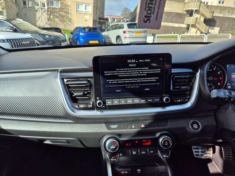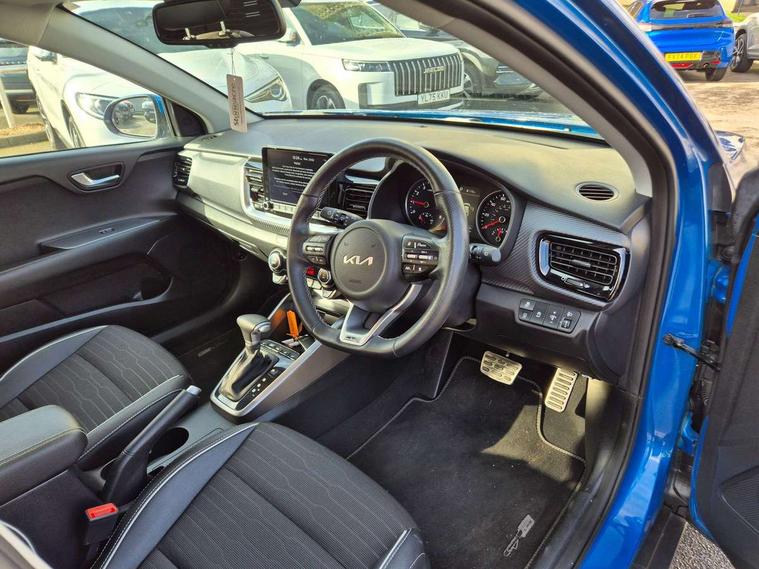 4.2" supervision colour cluster display, 8" touchscreen navigation, Apple car play/Android Auto with voice control, Blind spot collision avoidance assist, Blind spot collision warning, Drive mode selector, Electric power steering, Emergency call service, Emergency stop signalling system, External temperature display, Forward Collision-Avoidance Assist (FCA) - City/Pedestrian/Cyclist, Front parking sensors, Intelligent speed limit warning, Lane keeping assist system (LKAS), Driver attention warning (DAW) and High beam assist (HBA), Rear parking sensor, Reversing camera system, Smart cruise control, Trip computer, Intelligent Stop and Go, Audio system with 6 speakers, Bluetooth with music streaming, Front USB port, Steering wheel mounted controls, All round electric windows with drivers auto up/down function, Auto dimming rear view mirror, Automatic defog system, Automatic headlights control, Black rear roof spoiler with high mounted LED braking light, Black side sill, door garnish and wheel arch trims, Black/body colour bumpers, Body coloured exterior door handles, Chrome side window trim, Electrically adjustable/heated/folding door mirrors with LED indicators, Front and rear silver skid plates, Gloss black door mirrors with matt black lower housing, GT-Line body kit, Headlight levelling device, Heated rear window, High gloss black and satin radiator grille, LED Bi-function projection headlights with static bending, LED daytime running lights, LED front fog lights, LED position light, LED rear combination lights, Privacy glass - Rear windows and tailgate, Rain sensing front wipers, Rear fog lights, Rear side wing doors, Rear wash/wipe, Roof rails, Shark fin antenna, Solar windshield glass, Speed variable front aeroblade wipers, Tinted glass, Welcome and follow-me home light functionality, Windscreen Washer Level Warning, 12V power point front, 3 seat bench in 2nd row, 60/40 split folding rear seat, Air filter, All-round height adjustable headrests, Aluminium pedals, Automatic air conditioning, Centre armrest storage box, Centre console with cupholders, D-Cut perforated leather trimmed steering wheel, Dash illumination dimmer switch, Driver's seat height adjuster, Front and centre cabin lights, Front and rear door map pockets with bottle holder, Gear shift indicator, Glovebox illumination, GT-Line cloth/faux leather upholstery, Heated front seats, Heated steering wheel, ISOFIX Child seat top tethers and anchor fixings outer rear seats, Leather trimmed gearshift, Luggage area light, Luggage area parcel shelf, Luggage net, Luggage net with hooks, Overhead console lamp, Overhead console with sunglasses cases, Passenger front seatback pockets, Passenger seat height adjuster, Rear USB charging port, Satin chrome interior door handles, Single front passenger seat, Sunvisors with vanity mirror illumination (Driver and front passenger), Tilt/telescopic adjustable steering wheel, ABS with Electronic Brakeforce Distribution (EBD) and Brake Assist System (BAS), All round 3-point seatbelts, Electronic stability control (ESC) and vehicle stability management (VSM), Front passenger airbag cut-off switch, Front seatbelt pretensioners + load limiters, Height adjustable front seatbelts, Hill start assist control (HAC), Impact sensing auto door unlocking, Manual child lock in rear doors, Rear seat Occupancy alert, Seatbelt reminder warning, Twin curtain airbags, Twin front airbags, Twin front side airbags, Tyre pressure monitoring system, Alarm system, Door deadlocks, Engine immobiliser, Locking wheel nuts, Smart key with engine start/stop button, Speed sensitive auto door locking, Visible vehicle identification number, High gloss black centre fascia, 17" GT-Line alloy wheels, Tyre mobility kit,