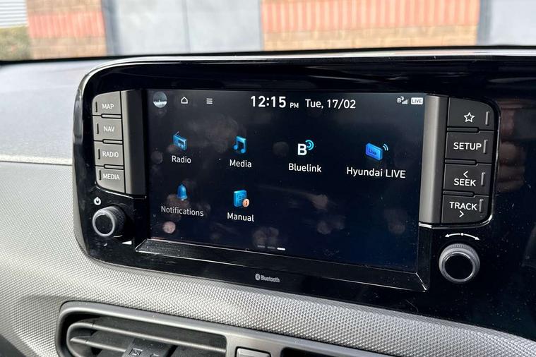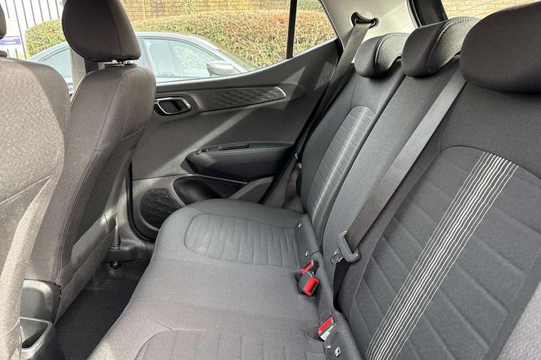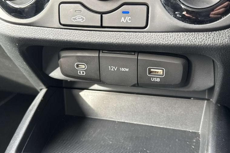 Apple car play/Android Auto, Bluelink mobile remote connectivity, Bluetooth connectivity with voice recognition, Cruise control, Driver attention alert system, eCall emergency call system, Forward Collision-Avoidance Assist (FCA) - Pedestrian/Cyclist, Front USB-C charging and USB-A data, Full-width 4.2" LCD instrument cluster, Intelligent speed limit assist, Lane departure warning system with lane keep assist - LKAS, Lane follow assist, PAS, Rear parking sensors, Rear view camera with guidelines, Roadside assistance, Start/Stop function, Tailgate, Trip computer, 2 front/2 rear speakers, Rear USB-C device charger, Steering wheel audio, phone and cruise controls, 1 speed non intermittent rear windscreen wiper, Black finish on B pillars, Body colour door handles, Body coloured bumpers, Body coloured door mirrors, Electric front windows, Electric rear windows, Electrically adjustable and heated door mirrors, Flat metal emblem, Front grille in matte black, Front intermittent wipers, Halogen daytime running lights, Halogen headlights, Headlights inner with Black Blade design, Heated rear window, High beam assist, Indicator light on door mirrors, Rear roof spoiler with integrated LED brake light, Rear side wing doors, 12v power outlet - front, 3 seat bench in 2nd row, 60/40 split folding flat to floor rear seats, Air conditioning, Auto light control, Bottle holders in front/rear doors + front centre console, Cabin and luggage compartment interior lighting, Cloth upholstery, Driver + passenger vanity mirrors, Driver's seat height adjustment, Driver/passenger sunvisors with ticket holders, Floor mats, Front door pockets, Front Head Restraints - Vertical and Horizontal Adjustment, Glove compartment, Height adjustable steering column, Isofix child seat preparation, Leather multifunction steering wheel, Rear door pockets, Single front passenger seat, Vertical adjustment rear head restraints, 3x3 point rear seatbelts, Airbags - front, front side and curtain airbags, Anti-lock brake system (ABS), Autonomous emergency braking (AEB) with forward collision warning system, Brake assist function, Childproof rear door locks, Electronic stability control, Front and rear seatbelt reminder, Front seatbelt pretensioners, Hill start assist control (HAC), Passenger airbag deactivate switch, Traction control, Tyre pressure monitoring system, Immobiliser, Perimeter alarm, Rear occupant alert, Remote central locking, Second remote key, Speed sensitive auto door locking, 15" Alloy wheels, Tyre repair kit,