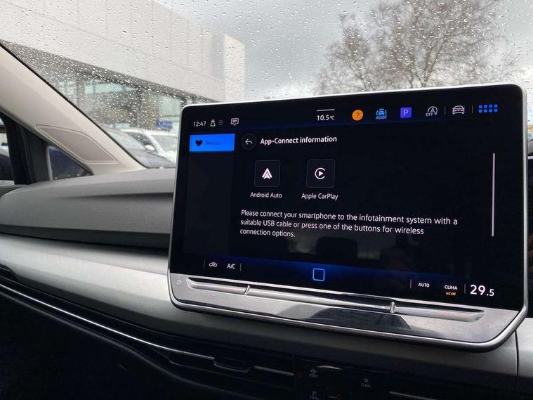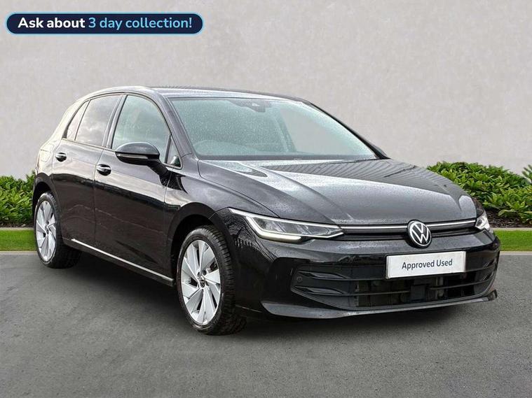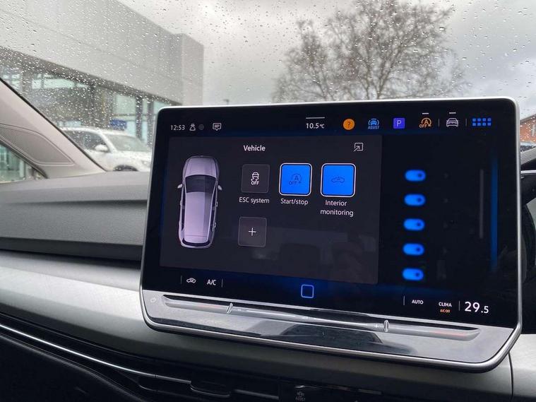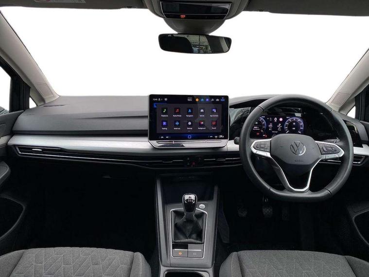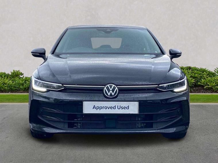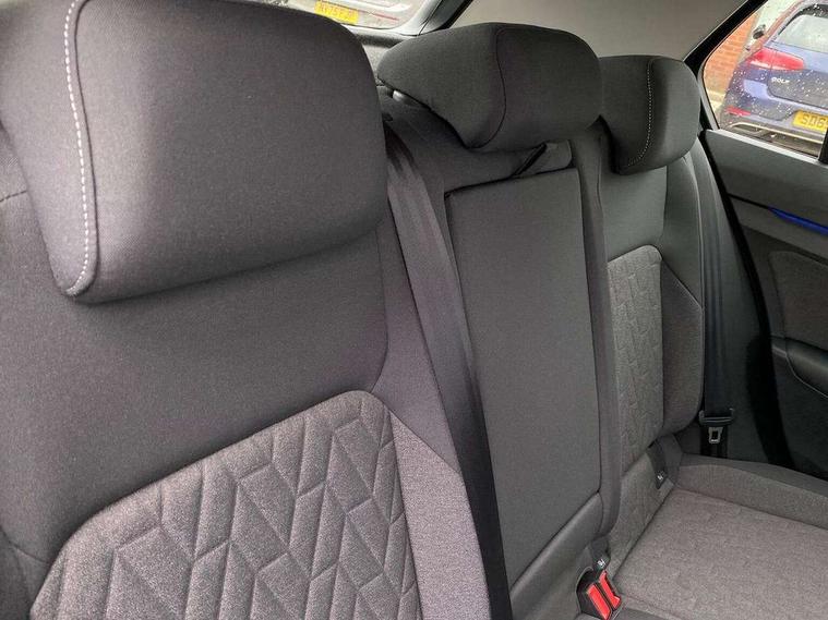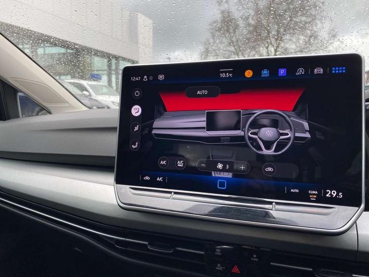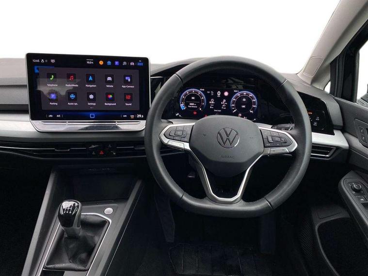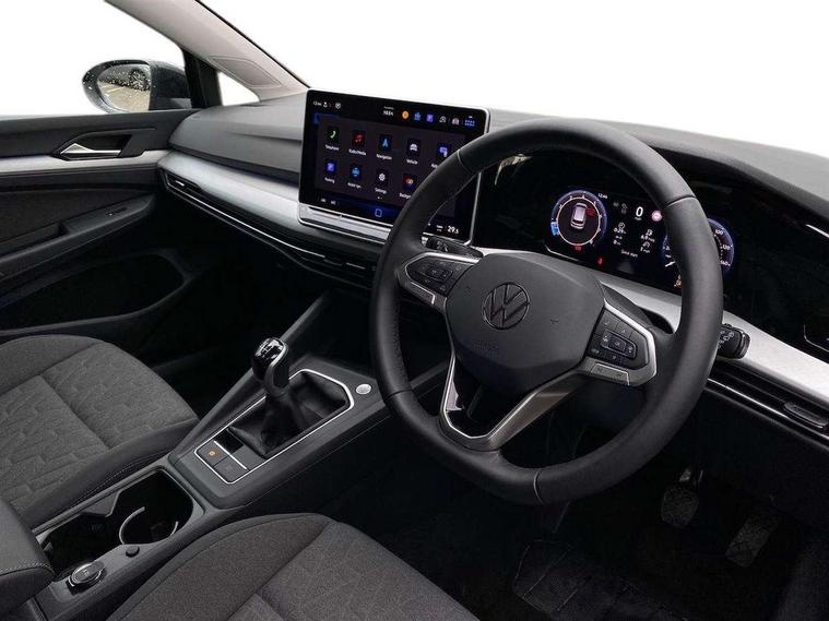 Activated carbon canister, Adaptive cruise control (ACC), Advanced driver attention and drowsiness monitor, Dynamic road sign display, E-Sim card for online connectivity, eCall emergency call system, Multi-color Digital cockpit pro, selection of different info profile possible, Multifunction front facing camera for distance control, Navigation system, Oncoming vehicle braking when turning including swerve support, Preparation for light assist system, Speed limiter, Speedo, rev counter, electronic odometer, trip, service interval display, exterior temperature and fuel gauge, Voice enhancer and voice control, Warning signal and warning light for front and rear seatbelts not fastened, We connect plus preparation, We connect preparation, Wireless app connect, Petrol Particulate Filter, Start-stop system with battery regeneration (recuperation - energy recovery during braking), XDS electronic differential lock for improved traction and handling, 2 USB C ports in front, 2 USB charging sockets on the centre console in the rear charging capacity upto 45W, Comfort telephony + wireless charging, without wireless aerial connection, Digital radio reception (DAB), Diversity antenna for FM reception, Gaming platform via car app, Infotainment system with 12.9" display, Mobile phone interface with inductive charging feature, 3rd brake light, Auto dimming rear view mirror, Auto headlights, Automatic headlamp activation with Coming home and Leaving home feature, Body colour door handles, Body colour door mirrors, Exterior ambient lighting with illuminated door handles, Exterior mirrors convex on the left and aspherical on the right, Front and rear electric windows, Heat insulating windshield made of laminated glass, LED daytime running lights, Rain sensor, Rear exhaust tailpipe, Rear fog light on one side and reversing lights on both sides, Rear side wing doors, Rear tinted glass 65% light absorbing from B pillar backwards, Rear windscreen washer and wiper with interval delay, Remote electrically foldable door mirrors, puddle lights and reverse activated passenger's door mirror, Standard bumpers, Welcome light with surround lighting, 12V socket in front centre console, 12V socket in luggage compartment, 3 rear head restraints, 3 seat bench in 2nd row, Chrome plated radiator grille inserts, air vent surrounds and light switch surrounds, Front centre armrest, Front head restraints, ISOFIX anchors for child seats on outer rear bench seats and on front passanger seat compatible for i-Size, Leather gearshift handle, Luggage compartment lighting, Rear cupholder and loadthough, Single front passenger seat, Soul black instrument panel, Split folding backrest with centre armrest and unsplit rear seat bench, Standard pedal cluster, Storm grey roof lining, Sun visors with illuminated vanity mirrors, Parking and comfort pack - Golf Estate/Hatchback, 3 point height adj front seatbelts + pretensioners, 3 rear three point seatbelts, ABS, Autonomous emergency braking front assist with pedestrian and cyclist monitoring, Child locks on rear doors, Driver and front passenger airbag with front passenger airbag deactivation, Electronic parking brake with auto hold, ESC (Electronic Stability Control), Extended pedestrian protection measures, Rear disc brakes, Two tone horn, Tyre pressure loss indicator, Volkswagen roadside assistance, Alarm with interior protection, Anti theft wheel bolts, Keyless start with SAFE lock, Preparation for alcohol interlock, Nature cross brushed decorative inserts for dashboard and front door panels,