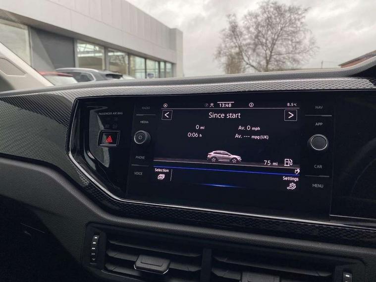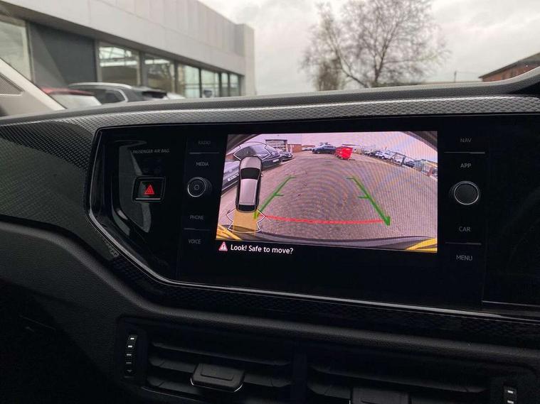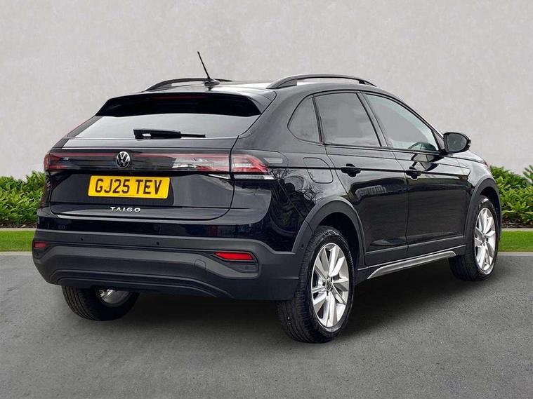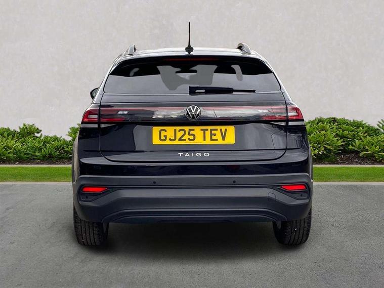 Advanced driver attention and drowsiness monitor, Dynamic road sign display, e-Call (emergency call), Power Steering, Predictive adaptive cruise control, Rear view camera, Travel assist including emergency assist, Washer fluid level indicator, Wireless Charging including Bluetooth, Start-stop system with battery regeneration (recuperation - energy recovery during braking), WeConnect plus, Ambient lighting with logo projection, Aspherical driver's exterior mirror, Body coloured bumpers, Body coloured exterior mirror housings and door handles, Electric windows, External USB type C socket and charging sockets, Heat insulating glass windscreen, LED rear combination lamp, LED third brake light, Left convex exterior mirror, Power folding adjustable/heated exterior mirrors and front passenger exterior mirror lowering function, Rear fog light on one side, reversing light on both sides, Rear side wing doors, Rear wash/wipe with intermittent wipe setting, Side windows in heat-insulating glass, from B-pillar and rear window dark tinted, 'Slash/ Austin' Cloth upholstery, 12V socket in centre console, 2 front reading lights, 3 rear head restraints, 3 seat bench in 2nd row, Black carpets, Ceramique headliner, Child seat anchor for child seat system i-Size, 2x top tether and child seat anchor in front on front passenger side, Door and side trim panels in titan black, Driver and front passenger seat height adjustment, Front centre armrest, Handbrake lever handle in leather, Height and reach adjustable steering wheel, Leather trimmed gear knob, Leather wrapped multifunction steering wheel, Luggage compartment floor, Luggage compartment light, Lumbar support for driver's and front passengers seat, Seat covers in titanium black, Single front passenger seat, Split folding backrest with centre armrest and unsplit rear seat bench, Storage compartment under front seats, Sun visors with illuminated vanity mirrors, Titanium black instrument panel, Chrome Package - Taigo, Drivers assistance package - Taigo, Light and sight pack - Taigo, 2 x 3-point seatbelts/outer rear seats with ECE label, 3-point seat belts in front with pretensioner and height adjustment, 3-point seatbelt for centre rear seat, Driver and front passenger airbag with front passenger airbag deactivation, Driver and front passenger safety-optimised head restraints, Electronic stability control, Extended and predictive pedestrian/ cyclist protection, Front and rear disc brakes, Front curtain and side airbags with center airbag, Hill start assist, Manual rear child locks, Single tone horn, Tyre pressure loss indicator, Anti-theft alarm system with interior monitoring, backup horn, and towing protection, Keyless locking and starting system keyless access with safelock, Black (slush) Dashboard, Lava stone black gloss/matt decorative inserts in dash and front door panels, Low rolling resistance tyres,
