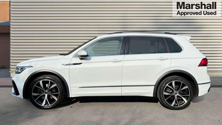 Adaptive cruise control ACC stop and go including speed limiter, App-Connect incl. App-Connect Wireless for Apple CarPlay and Android Auto, Bluetooth phone integration system, Digital Cockpit Pro - Active info display, Distance control assist, Driver alert system, Driver profile selection, Dynamic road sign display, eCall emergency call system, Electromechanical speed sensitive power steering, Lane keeping system Lane Assist, Lights on warning, Multifunction front facing camera, Outside temperature display, Premium multifunction display with multi colour display, Revision / skills operating concept travel assistant, Service interval indicator, Start/stop system with regenerative braking, Warning sound and light for doors and tailgate open, Battery regeneration during braking, Diesel particulate filter, Misfuel prevention device for diesel engine, XDS electronic differential lock for improved traction and handling, 2 USB-C ports in the front, 1 USB-C charging socket on the center console in the rear, Diversity antenna for FM reception, Radio, SD card slot, Simultaneous pairing of 2 compatible mobile devices, SMS functionality - read, compose and send SMS messages using touch-screen display, Title and cover art display, Auto dimming interior rear view mirror, Automatic headlight control system, Black roof rails, Body colour door handles, Body coloured bumpers in R Line style, Chrome moldings on the side windows, Coming/leaving home lighting function, Dynamic headlight range control, Front and rear electric windows, Heated rear window, High level 3rd brake light, Laminated safety glass windshield, heat and sound insulating, LED rear number plate lights, License plate carrier in front and rear, Poor weather light and cornering light, Privacy glass for rear side windows and rear window, R Line body kit, R Line side sills, Rain sensor windscreen wipers, Rear exhaust tailpipe, Rear fog lamp, Rear spoiler in R style, Rear windscreen washer and wiper with interval delay, Side and rear windows in heat insulating glass, Trailer Stability Programme, Unique R Line badging, Windscreen wipers/ intermittent wipe + 4 position delay, 12V outlet in center console rear and in luggage compartment, 2 cup holders in front, 2 LED front reading lights, 2 LED rear reading lights, 3 rear headrests, 4 load lashing points, 40:20:40 split folding rear seats, Air Care Climatronic 3 zone automatic climate control with enhanced air filter and controls in the rear, Backrest release for left front seat, Black headlining, Brushed stainless steel pedals and footrest, Carpet mats in front and rear with decorative stitching in Gray, Climate control unit rear with touch function, Door and side trim panel in foam film, insert in leatherette, Front footwell illumination, Front seats head restraints (x-adjustment), Height adjustable front seats, Height/reach adjust steering wheel, Instrument lighting white adjustable panel illumination, Interior light with delay, Isofix Preparation 2 Rear child seats, Leather gear knob, Lockable cooled glovebox, Luggage compartment lighting, Rear bench seat asymetrically split folding, longitudinally movable and folding with load-through hatch and center armrest, Remote unlocking for rear seat backrest, Removable luggage cover, Safety optimised front head restraints, Sliding/reclining rear seats, Standard rear seat release, Storage compartment in driver's door, Storage compartment in passenger's door, Storage compartment in rear doors, Storage compartments in luggage area left and right, Storage tray on dashboard, Sun visors with illuminated vanity mirrors, Tool kit, Top front comfort seats, Variable boot floor, height adjustable and removable, Ambience pack - Tiguan R Line, Driver assistance pack plus - Tiguan, 3 point seat belt for centre rear seats, 3 point seat belts with seat belt pretensioners for the outer rear seats, Active bonnet, Curtain airbags for front and rear passengers, Driver/Front Passenger airbags, Drivers knee airbag, Electronic parking brake with auto hold, Electronic Stability Control with driver steering recommendation, ABS, ASR, EDL, EDTC and trailer stabilization, Front assist with autonomous emergency braking (for Adaptive Cruise Control ACC up to 130 mph), Front disc brakes, Front passenger airbag deactivation, Front side airbags, Height adjustable front 3 point seatbelts + pretensioners, Hill hold control, Pedestrian monitoring system, Proactive passenger protection system in combination with front assist, Rear disc brakes, Rigid safety cell with front and rear crumple zones, Two tone horn, Warning sound and light for front seat belts if unfastened, Anti theft alarm system with interior monitoring, backup horn and towing protection, Anti theft wheel bolts, Electronic engine immobiliser, 20" Misano black with diamond turned surface alloy wheels with Airstop tyres,