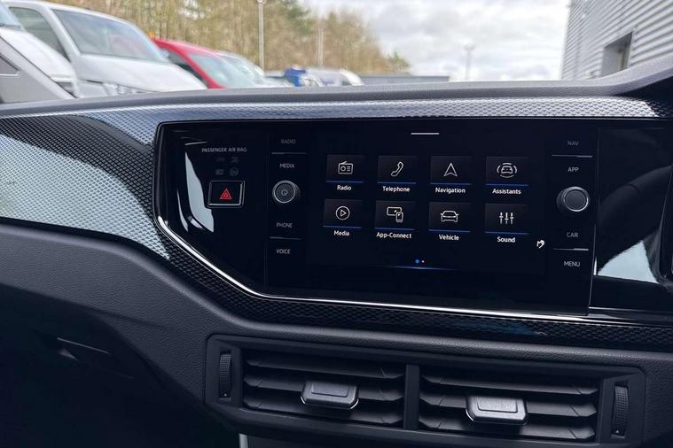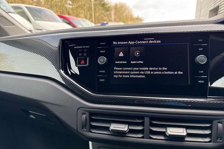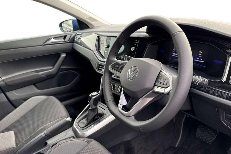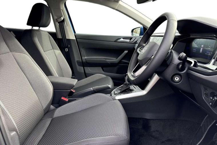 Advanced driver attention and drowsiness monitor, Bluetooth mobile phone interface, Dynamic road sign display, Emergency call service, Mobile phone preparation with inductive charging function, Multifunction front facing camera for distance control, Power assisted speed sensitive steering, Predictive adaptive cruise control without follow-to-stop and speed limiter, Preparation for navigation system with media and internet package, Preparation for We connect and We connect plus, Rear view camera, Speedo and rev counter, electronic odometer, trip, service interval display and exterior temperature gauge, Standard rear axle, Travel Assist - Lane keeping system and traffic jam assist, Travel assist including emergency assist, Trip computer, Warning signal and warning light for front and rear seatbelts not fastened, Washer fluid level indicator, Wireless app connect, Front wheel drive, Rear shock absorpion, Start-stop system with battery regeneration (recuperation - energy recovery during braking), DAB Digital radio, Diversity antenna for FM reception, Automatic dimming interior rear view mirror, Automatic headlight control with LED separate daytime running lights with coming/leaving home function, Body colour bumpers with chrome inserts, Body colour door handles, Body colour door mirrors, Electric front windows, Engine badge deletion, Headlight range adjustment, Heat insulating and laminated safety glass windshield, LED Headlights, LED rear combination lamps, Power folding adjustable/heated exterior mirrors and front passenger exterior mirror lowering function, Rain sensor, Rear electric windows, Rear fog light, Rear side wing doors, Rear tinted glass from B-pillar backwards approx 65% tinted, Rear windscreen washer and wiper with interval delay, Third brake light, 12V power socket in centre console, 2 front and 2 rear reading lights with switch off delay and dimmer, 2 USB-C ports in the front, 2 USB-C charging sockets on the center console in the rear, 3 rear head restraints, 60/40 split folding rear seat and rear seat bench not split, Carpet mats, front and rear, Ceramique roof lining, Chrome plated radiator grille inserts, air vent surrounds and light switch surrounds, Door and side trim panel, Driver and front passenger seat height adjustment, Driver/passenger sunvisors with illuminated vanity mirrors, Front centre armrest, Front seat backrest storage pockets, Front standard seats, Handbrake lever handle in leather, Hartley/Thomas cloth upholstery, Headliner in recycled material, Isofix child seat preparation easy-fit (for two outer rear seats, and front passenger seat) compatible with I-size, Leather trimmed gear knob, Luggage compartment cover, Luggage compartment lighting, Removable luggage compartment floor, Single front passenger seat, Standard climatic zones, Standard pedal cluster, Three spoke leather wrapped multifunction steering wheel with shifting paddles, Light and vision pack - Polo, 3 point height adj front seatbelts + pretensioners, 3 point seat belt for centre rear seat, 3 point seatbelts, outer rear with ECE lable, ABS, Driver and front passenger airbag with front passenger airbag deactivation, Drivers and front passengers safety optimised head restraints, ESC (Electronic stability control) + EDL (Electronic Differntial lock) and ASR (Traction control), Extended and predictive pedestrian/ cyclist protection, Front assist with autonomous emergency braking (for Adaptive Cruise Control ACC up to 130 mph), Front curtain and side airbags with center airbag, Front disc brakes, Hill hold control, Manual child lock in rear doors, Rear drum brakes, Single tone horn, Tyre pressure loss indicator, Alarm with interior protection, Anti-theft alarm system with interior monitoring, backup horn, and towing protection, Anti-theft wheel bolts, Electronic engine immobiliser, Lava stone black gloss/matt decorative inserts in dash and front door panels, 16" Torsby alloy wheels, Low rolling resistance tyres,