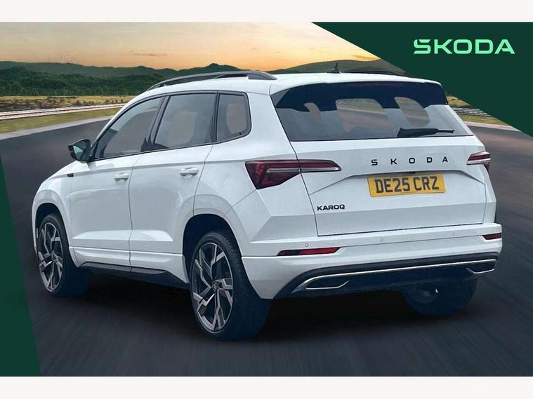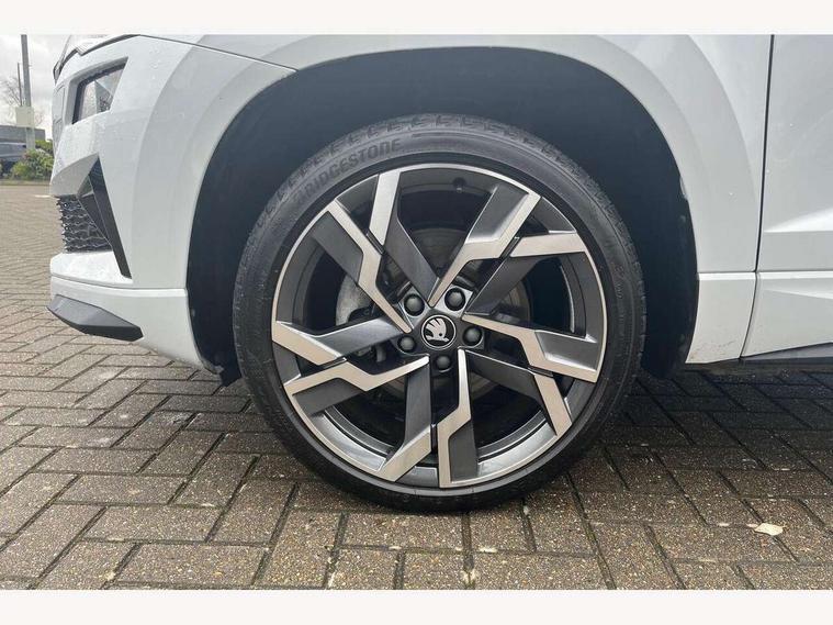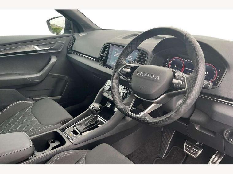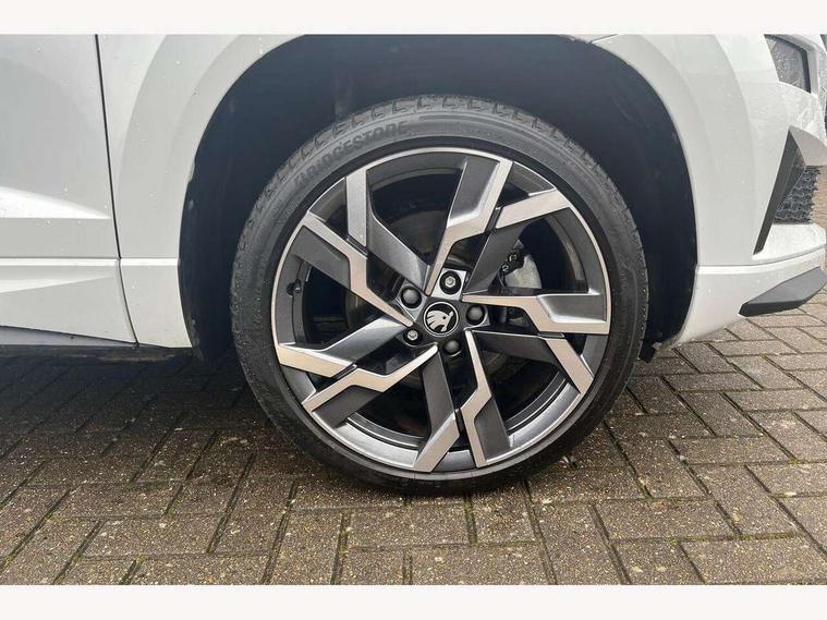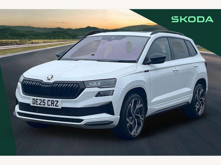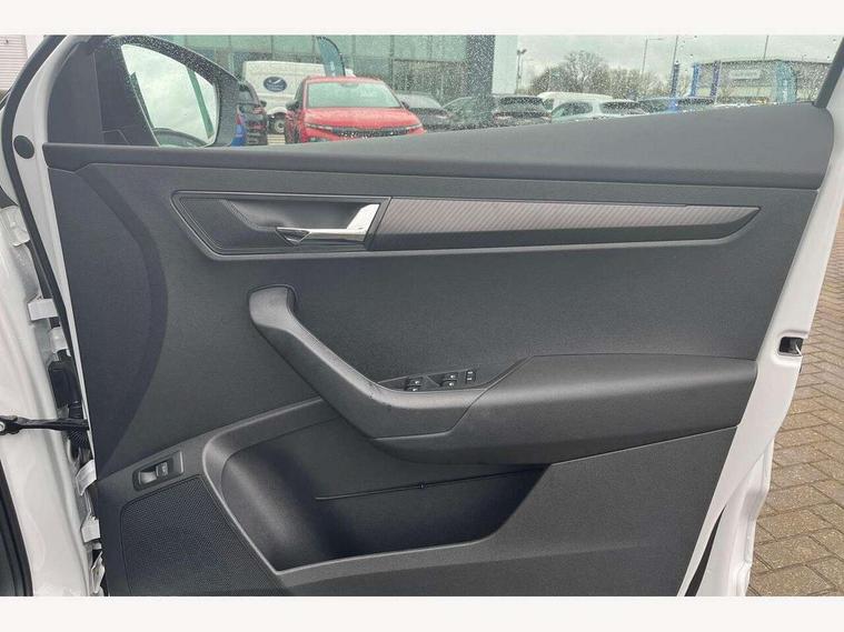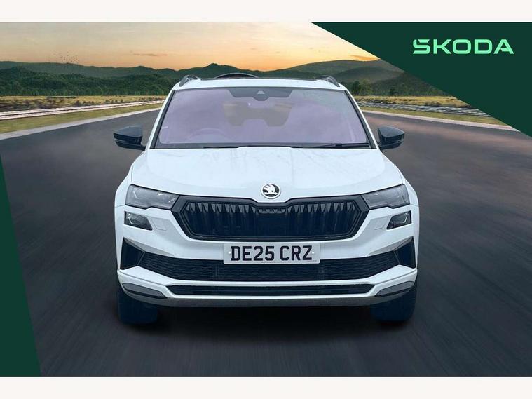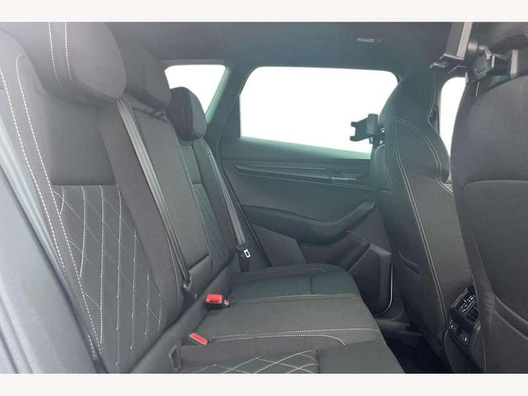 Advanced driver attention and drowsiness monitor, Emergency services call system, Outside temperature gauge, Sensor for driver assistance systems, Service interval indicator, SmartLink wireless for Apple and wired for Android, Start/stop system with regenerative braking, Traffic sign recognition, USB C Port x 2 in front centre console, Virtual Cockpit - 10.25" digital display, Virtual pedal with electrically operated boot door, Wireless smartphone charging, DAB radio with Bluetooth, USB connection, Acoustic glass, Aero front windscreen wipers with intermittent function, Auto dimming rear view mirror with light and rain sensors, Black door mirrors, Black electric window control buttons, Black radiator grille, Black roof rails, Body colour door handles, Electric front and rear windows with child proof lock, Extended rear roof spoiler, Front door steps with SportLine logo, Heated rear windscreen, LED daytime running lights, LED rear lights with high functionality welcome effect and dynamic indicators, Light assistant (coming/leaving home/tunnel light), Panoramic sliding sunroof, Plastic scuff plates in door apertures, Privacy glass, Protective door side sills in body colour, Rear diffuser, Rear side wing doors, Rear window wiper with washer system and intermittent control, Safety reflectors on front doors, Skoda lettering on tailgate in black, Sportline badge on front fender, Sports front and rear bumpers, Third brake light, Unique dark chrome design logo on alloy wheels, 1.5 litre bottle holders in driver and front passenger door panels, 12V socket in boot, 12v socket in front centre armrest with storage compartment and rear air vents, 2 x Tablet holder, 3 rear height adjustable headrests, 3 seat bench in 2nd row, 3 spoke sports leather heated multifunction steering wheel with DSG paddles, 4 foldable roof handles with rear coat hooks, Black floor carpet, Cargo elements in boot, Chrome inner door handles, Foldable hooks in the boot, Front head restraints, Height adjustable front three point seats belts with tensioners, Height/reach adjust steering wheel, Ice scraper, Illuminated glovebox, Illuminated luggage compartment, Isofix child seat preparation for front passenger seat, Isofix child seat preparation outer rear, Manual lumbar support for front seats, Pen holder, Pollen filter, Rear backrest release from boot, Rear boot cover, Rear package tray, Rear reading lights, Rear seats fixed folding and divided 60:40, Rubbish bin door, Safety vest holder, Single front passenger seat, Skoda lettering on steering wheel, Sportline decorative inserts, Storage box in upper central dashboard closed, Sunvisors with illuminated vanity mirrors, Textile floor mats, Ticket holder, Titan black interior ceiling, Umbrella under passenger seat, Under passenger seat storage compartment, Columbus pack - Karoq, LED Interior lighting pack with Skoda welcome logo - Karoq, Light Pack - Karoq, Non Smokers pack, Performance pack - Karoq, Winter plus pack with heated front and rear seats - Karoq, Automatic door unlocking in case of crash, Automatic fuel cut off in case of crash, Driver airbag, Electronic parking brake with auto hold function, Emergency rear braking signal, ESC (incl. ABS+MSR+ASR+EDS+HBA+DSR+RBS+MKB), Front side airbags, Head airbags, Hill hold control, Knee airbags, Passenger airbag with switch-off function, Pedestrian monitor, Seatbelt reminder signalisation and pretensioner for all seats, Three point seatbelts rear, Two tone horn, Tyre pressure monitor, Alarm with interior monitoring, back up horn and tilt sensor with safe function, Electronic engine immobiliser, Keyless entry and start/stop, Remote central locking with 2 remote folding keys, Black air vent surround, Black centre console, carbon door decor, Satin black dashboard, Satin black door trim, 19" Sagittarius anthracite alloy wheels, Anti-theft wheel bolts protection, Breakdown and tool kit,