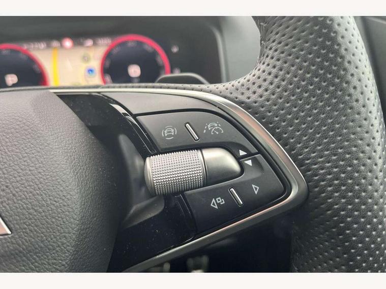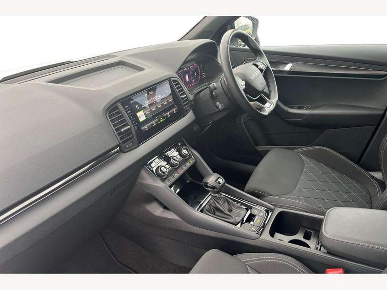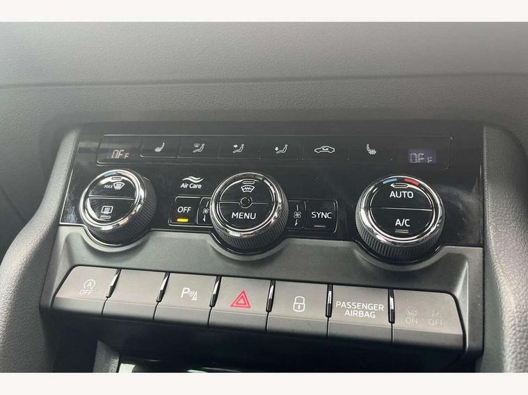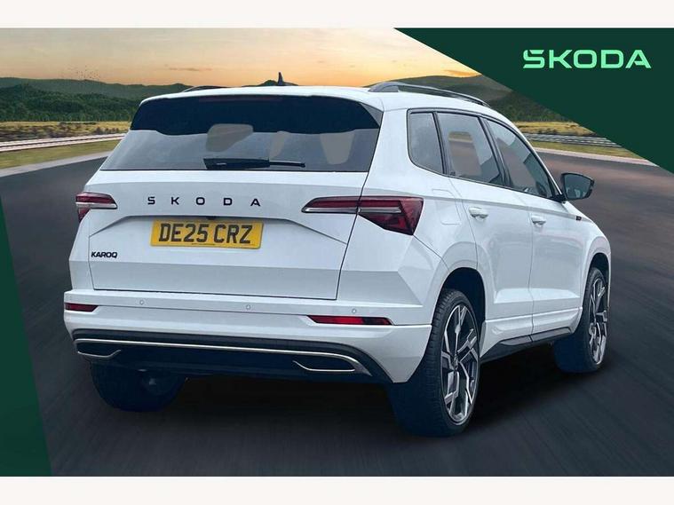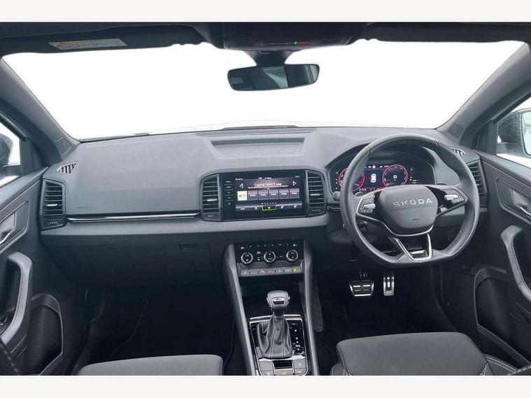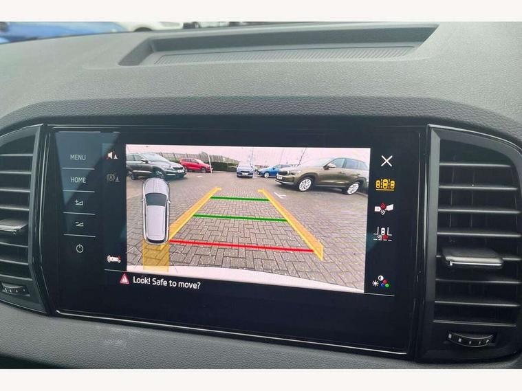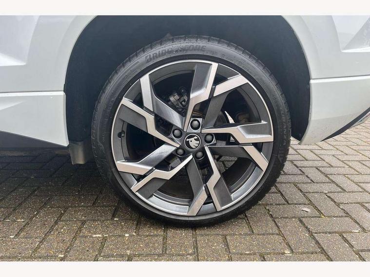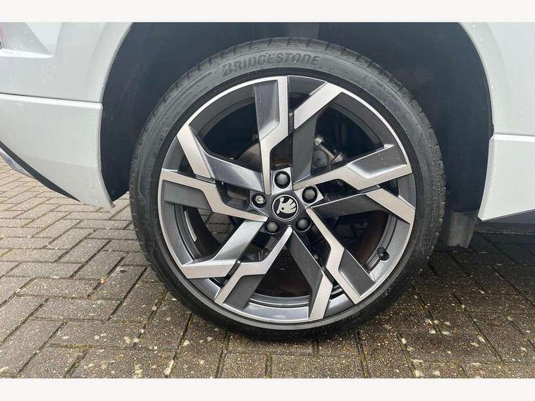 Advanced driver attention and drowsiness monitor, Emergency services call system, Outside temperature gauge, Sensor for driver assistance systems, Service interval indicator, SmartLink wireless for Apple and wired for Android, Start/stop system with regenerative braking, Traffic sign recognition, USB C Port x 2 in front centre console, Virtual Cockpit - 10.25" digital display, Virtual pedal with electrically operated boot door, Wireless smartphone charging, DAB radio with Bluetooth, USB connection, Acoustic glass, Aero front windscreen wipers with intermittent function, Auto dimming rear view mirror with light and rain sensors, Black door mirrors, Black electric window control buttons, Black radiator grille, Black roof rails, Body colour door handles, Electric front and rear windows with child proof lock, Extended rear roof spoiler, Front door steps with SportLine logo, Heated rear windscreen, LED daytime running lights, LED rear lights with high functionality welcome effect and dynamic indicators, Light assistant (coming/leaving home/tunnel light), Panoramic sliding sunroof, Plastic scuff plates in door apertures, Privacy glass, Protective door side sills in body colour, Rear diffuser, Rear side wing doors, Rear window wiper with washer system and intermittent control, Safety reflectors on front doors, Skoda lettering on tailgate in black, Sportline badge on front fender, Sports front and rear bumpers, Third brake light, Unique dark chrome design logo on alloy wheels, 1.5 litre bottle holders in driver and front passenger door panels, 12V socket in boot, 12v socket in front centre armrest with storage compartment and rear air vents, 2 x Tablet holder, 3 rear height adjustable headrests, 3 seat bench in 2nd row, 3 spoke sports leather heated multifunction steering wheel with DSG paddles, 4 foldable roof handles with rear coat hooks, Black floor carpet, Cargo elements in boot, Chrome inner door handles, Foldable hooks in the boot, Front head restraints, Height adjustable front three point seats belts with tensioners, Height/reach adjust steering wheel, Ice scraper, Illuminated glovebox, Illuminated luggage compartment, Isofix child seat preparation for front passenger seat, Isofix child seat preparation outer rear, Manual lumbar support for front seats, Pen holder, Pollen filter, Rear backrest release from boot, Rear boot cover, Rear package tray, Rear reading lights, Rear seats fixed folding and divided 60:40, Rubbish bin door, Safety vest holder, Single front passenger seat, Skoda lettering on steering wheel, Sportline decorative inserts, Storage box in upper central dashboard closed, Sunvisors with illuminated vanity mirrors, Textile floor mats, Ticket holder, Titan black interior ceiling, Umbrella under passenger seat, Under passenger seat storage compartment, Columbus pack - Karoq, LED Interior lighting pack with Skoda welcome logo - Karoq, Light Pack - Karoq, Non Smokers pack, Performance pack - Karoq, Winter plus pack with heated front and rear seats - Karoq, Automatic door unlocking in case of crash, Automatic fuel cut off in case of crash, Driver airbag, Electronic parking brake with auto hold function, Emergency rear braking signal, ESC (incl. ABS+MSR+ASR+EDS+HBA+DSR+RBS+MKB), Front side airbags, Head airbags, Hill hold control, Knee airbags, Passenger airbag with switch-off function, Pedestrian monitor, Seatbelt reminder signalisation and pretensioner for all seats, Three point seatbelts rear, Two tone horn, Tyre pressure monitor, Alarm with interior monitoring, back up horn and tilt sensor with safe function, Electronic engine immobiliser, Keyless entry and start/stop, Remote central locking with 2 remote folding keys, Black air vent surround, Black centre console, carbon door decor, Satin black dashboard, Satin black door trim, 19" Sagittarius anthracite alloy wheels, Anti-theft wheel bolts protection, Breakdown and tool kit,