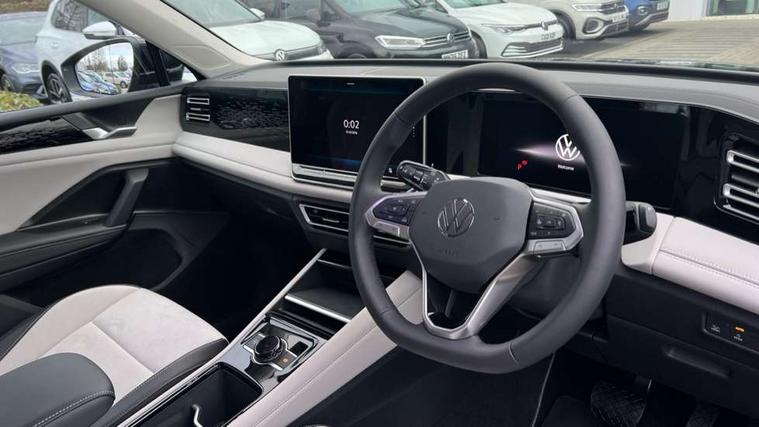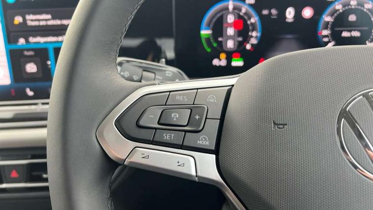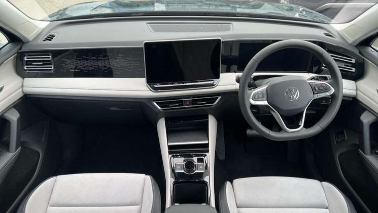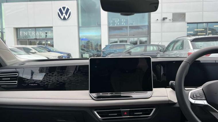 Adaptive cruise control (ACC), Advanced driver attention and drowsiness monitor, Bluetooth mobile phone interface, Car2X technology, Comfort drive travel assist, lane keeping system, lane assist and emergency assist, Digital Cockpit Pro - 10.25" high resolution dash display screen with customisable menus and information, Dynamic road sign display, E-Sim card for online connectivity, eCall emergency call service, Front Assist - Autonomous emergency braking with pedestrian and cyclist monitoring, Lane change system, Side assist, Rear traffic alert and Exit warning system, Multifunction front facing camera, Oncoming vehicle braking when turning including swerve support, Park assist pro with park distance control (Remote park assist), Power assisted steering with speed sensitive, Start/stop system with regenerative braking, Warning signal and warning light for front and rear seatbelts not fastened, Wireless App-Connect, Adaptive chassis control DCC pro includes driving mode selection, Charging cable Mode 3 Type 2 / 3 (16A), Front shock absorption, Front wheel drive, Rear shock absorption, Digital radio reception (DAB), Diversity antenna for FM reception, Air intake with Chrome trim, Ambient lighting with logo projection, Auto dimming interior rear view mirror, Automatic headlight control system, Body colored bumpers in R-Line style, Body coloured door handles, Body-coloured exterior mirror housings, Chrome moldings on the side windows, Coming/leaving home lighting function, Heat insulating glass in side and rear windows, Heated rear window, Heated windscreen washer jets, High level 3rd brake light, Illuminated door handle recesses, Illuminated lightline between headlamps, Laminated safety glass from B-pillar backwards 90% tinted, Laminated safety glass windshield, LED Day time running light, Rain sensor windscreen wipers, Rear fog light on one side, reversing light on both sides, Rear side wing doors, Rear wiper, Silver roof rails, 12V outlet in center console rear and in luggage compartment, 12V socket in centre console, 3 bench rear seats in 2nd row, Air care climatronic 3 zone air conditioning system with rear air conditioning control panel, Carpet mats, front and rear, Centre console with illuminated storage compartment with sliding cover and two drinks holders, Ceramique headlining, Chrome elements on the mirror switch and power window switches and door pulls, Door and side trim panel with leatherette insert, Door sill protectors, Front centre armrest, Interior ambient lighting with 30 colour options, ISOFIX anchors for child seats on outer rear seats and front passenger seat compatible with i-Size, Mechanical rear seat release, Power adjustable lumbar support in front, Rear bench seat, split folding, longitudinally movable and folding with load-through hatch and centre armrest, Safety optimised front head restraints, Single front passenger seat, Sports comfort seats in front, Sun visors with illuminated vanity mirrors, Three rear head restraints, Variable luggage compartment floor, Comfort package with park assist plus and Safelock - Tiguan, Driver assistance package - Tiguan, 3 point seat belt for centre rear seats, 3 Point seat belts in front with pretensioners, 3 point seatbelts in outer rear with ECE label, Driver and front passenger airbag with front passenger airbag deactivation, Electronic parking brake with auto hold, Front and rear curtain airbags, Front and rear side airbags, Front centre airbag, Front disc brakes, Hill start assist, Manual child proof rear door locks, Rear disc brakes, Two tone horn, Warning triangle, Decorative inserts Cross in dash and front door panels, Interior door handle in matte chrome, Soul instrument panel, Tyre mobility kit including compressor and sealing foam,