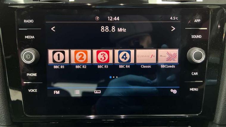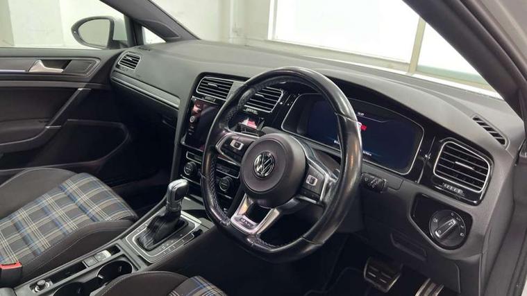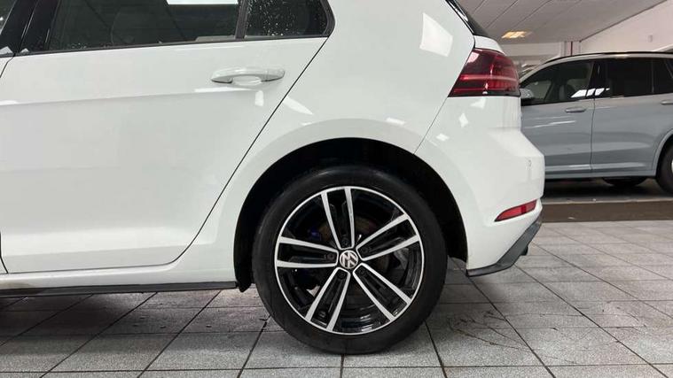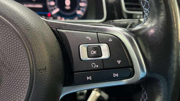 'Lights On' Reminder warning buzzer, 8" touch screen, Adaptive Cruise Control with pedestrian detection and speed limiter, App-Connect, Bluetooth hands free telephone connection, Brake pad wear indicator warning light, Driver alert system, Driver profile selection, Exterior temperature gauge, Front assistant collision mitigation, Instrument cluster in white, Multifunction computer, PAS - speed related, Rev counter, Trip and service interval display, Ultrasonic front and rear optical and audible parking sensors, Warning buzzer and light for front seatbelts unfastened, XDS electronic differential lock, CD/MP3/WMA, USB and SD card reader, aux-in, Composition media system, DAB Digital radio, 3D-LED-SBBR with sweeping indicator, Auto dimming rear view mirror, Automatic coming/leaving home lighting function, Automatic headlights, Black front air intake and radiator grille with chrome insert, Black rear diffuser, Body colour bumpers, Body colour door handles, Body colour door mirrors, Chrome grille surround, Electric front windows, Electric rear windows, Electrically adjustable and heated door mirrors, Heated rear windscreen, LED daytime running lights, LED rear lights, Rain sensor, Rear roof spoiler, Rear windscreen washer and wiper with interval delay, Side skirts, Twin exhaust tailpipe, 12V socket in luggage compartment, 3 rear headrests, 3 spoke steering wheel, 60/40 split folding rear seat, Air conditioning - 2 zone electronic climate control, Aluminium/leather gear knob, Bag hook in luggage compartment, Black headlining, Boot lashing points, Cooled glovebox, Courtesy light delay, Cover for storage compartment in centre, Dust/pollen filter, Front + rear carpet mats, Front passenger drawer stowage, Front passenger seat height adjust, Front seat back storage pockets, Gearshift paddles, Grab handles, Height adjustable driver's seat, Height/reach adjust steering wheel, Illuminated vanity mirrors, Isofix preparation for 2 rear child seats, Load through provision with rear centre armrest and cupholders x2, Luggage compartment cover, Luggage compartment lighting, Multifunction leather steering wheel with blue stitching, Overhead storage box, Stainless steel pedals, Storage box in luggage compartment, Storage compartments in doors, Sun visors, Ambient lighting pack - Golf, Mirror pack - Golf, 3 point height adj front seatbelts + pretensioners, 3 rear 3 point seatbelts, ABS, Automatic post collision braking, Blue brake callipers, Child locks on rear doors, Driver/Front Passenger airbags, Driver/Passenger whiplash optimised head restraints, Drivers knee airbag, Electronic parking brake with auto hold, ESP with EDL + ASR, Front and rear curtain airbags, Front passenger airbag deactivation, Front side airbags, Pre crash system, Tyre pressure monitor, Alarm with interior protection, Electronic engine immobiliser, Remote central locking with 2 remote folding keys, Chrome-plated light switch surround, Honeycomb black decorative inserts, Piano black centre console, 17" Rio de Janeiro alloy wheels, Tyre repair kit,