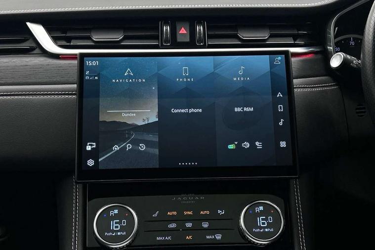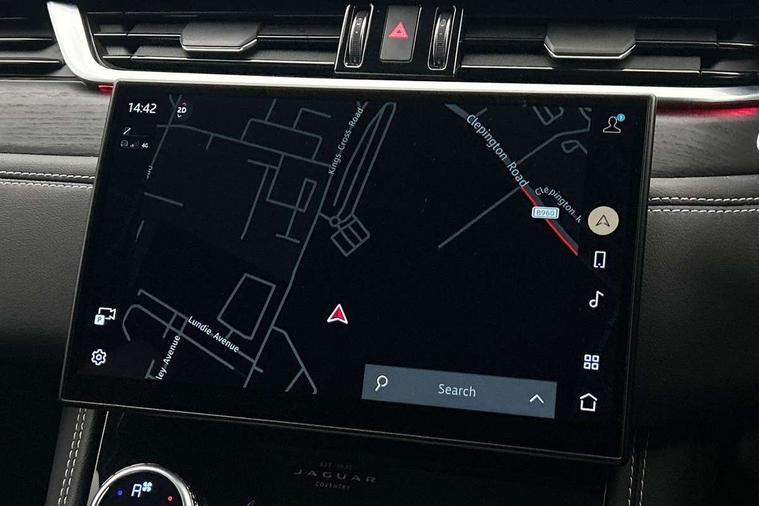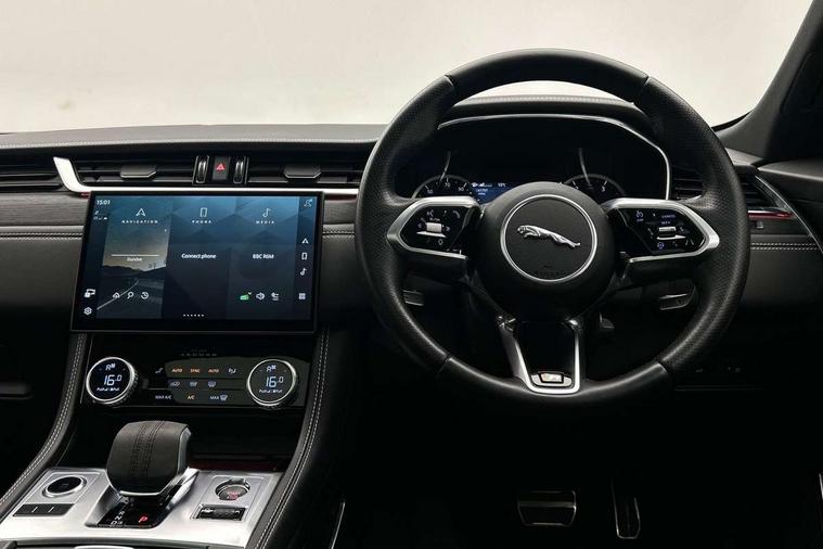 11.4" touchscreen, Android Auto, Apple car play, Bluetooth connectivity, Driver alert system, Driver condition monitor, eCall emergency call system, Eco driving style assistant, Electric power assisted steering, InControl remote, Jaguar Toggle shift selector, Lane departure warning system, Lane keep assist, Outside temperature gauge, Personalisation profile management, Pivi pro connected navigation system with app interface and media storage, Pro services and wifi hotspot, Push button starter, Service interval indicator, Speed proportional steering, Start up sequence with movement in dials and lighting, Traffic sign recognition with adaptive speed limiter, Trip computer, Voice control system, 8 speed automatic transmission, All terrain progress control, All Wheel Drive (AWD), Open differential with torque vectoring by braking, AM/FM radio, Bluetooth streaming, DAB Radio (Digital Audio Broadcasting), Dynamic volume control, InControl apps, InControl protect, iPod integration, 3 flash lane change indicators, Animated directional indicators, Approach Illumination, Auto dimming rear view mirror, Automatic headlights, Electric windows with one touch open/close and anti trap, F-Pace and R Dynamic badge, Gloss black door mirrors, Gloss black roof rails, Green tinted glass, Heated front windscreen + heated washer jets, Heated rear window with timer, Jaguar script and leaper, LED High level third brake light, LED tail lights, Non acoustic front windscreen, Privacy glass, R Dynamic badge on side door, Rain sensor windscreen wipers, Rear fog lights, Rear metal tread plates, Rear side wing doors, Rear wiper, Trailer stability assist, Variable front intermittent wipers, 12V power point front, 3 rear headrests, 3 seat bench in 2nd row, Air distribution speed, Bright metal foot pedals, Centre armrest console, Centre console with side storage, Deletion loadspace storage rails, Door sill tread plates, Fold flat front seats, Front centre armrest with storage compartment, Front door storage space, Glovebox finisher with jaguar script, Heated steering wheel, Hooks in loadspace, Illuminated glovebox, Interior front door handles with separate locking switches, ISOFIX on outer rear seats, Jaguar sense, Luggage tie downs in loadspace, Mist sensing, Multifunction steering wheel, Overhead lighting console, Overhead stowage for sunglasses, Passive front head restraints, Premium cabin lighting, Premium carpet mats, R-Dynamic branded leather steering wheel, Rear air vents, Rear armrest with twin cupholders, Rear centre headrest, Rear door storage space, Reversible boot floor, Satin chrome gearshift paddles, Shopping bag hook, Single front passenger seat, Sunvisors with illuminated vanity mirrors, Twin front cupholders with cover, Black Exterior pack - F Pace R-Dynamic/Sport, Exterior pack - F Pace R-Dynamic, Online Pack with data plan - F-Pace, 355mm front brakes and 325mm rear brakes, 3x3 point rear seatbelts, ABS, All surface progress control (ASPC), Brake pad warning light, DSC - Dynamic Stability Control, Electric parking brake (EPB), Emergency brake assist, Front airbags with passenger seat occupant detector, Front and rear seatbelt reminder, Front side airbags, Full length side window curtain airbag, Hill launch assist, Power operated child locks, Torque vectoring brake, Traction control, Tyre pressure monitoring system, Immobiliser, Keyless start, Locking wheel nuts, Perimeter alarm, Remote central locking, Valet mode,