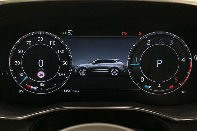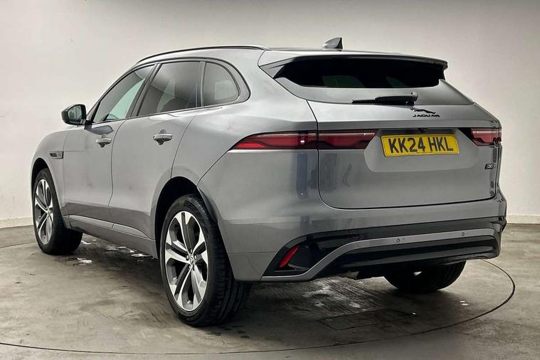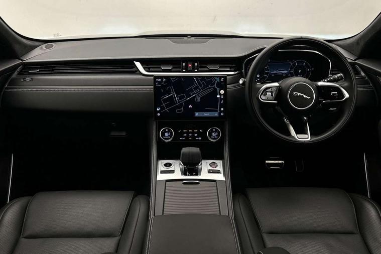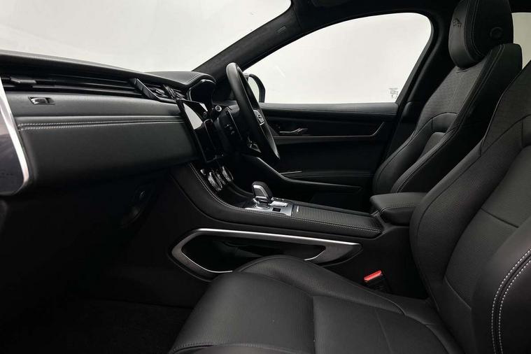 11.4" touchscreen, Adaptive cruise control with steering assist, Android Auto, Apple car play, Blind spot assist, Bluetooth connectivity, Clear exit monitor, Driver alert system, Driver condition monitor, eCall emergency call system, Eco driving style assistant, Electric power assisted steering, InControl remote, Interactive driver display digital with 12" TFT display, Jaguar Toggle shift selector, Lane departure warning system, Lane keep assist, Outside temperature gauge, Personalisation profile management, Pivi pro connected navigation system with app interface and media storage, Pro services and wifi hotspot, Push button starter, Rear collision monitor, Rear traffic monitor, Service interval indicator, Speed proportional steering, Start up sequence with movement in dials and lighting, Traffic sign recognition with adaptive speed limiter, Trip computer, Voice control system, Wireless device charging, 8 speed automatic transmission, Adaptive dynamics, All terrain progress control, All Wheel Drive (AWD), Configurable dynamics, Open differential with torque vectoring by braking, AM/FM radio, Bluetooth streaming, DAB Radio (Digital Audio Broadcasting), Dynamic volume control, InControl apps, InControl protect, iPod integration, 3 flash lane change indicators, 90th Anniversary Edition Badge, AHBA and animated directional indicators, Approach Illumination, Auto dimming rear view mirror, Automatic headlights, Electric heated/power fold memory door mirrors with approach lights and auto dimming driver side, Electric windows with one touch open/close and anti trap, F-Pace and R Dynamic badge, Green tinted glass, Heated front windscreen + heated washer jets, Heated rear window with timer, Illuminated metal tread plates with Jaguar script, Jaguar script and leaper, LED High level third brake light, LED tail lights, Metal load space scuff plates, Non acoustic front windscreen, Privacy glass (rear side windows and rear screen), R Dynamic badge on side door, Rain sensor windscreen wipers, Rear fog lights, Rear metal tread plates, Rear side wing doors, Rear wiper, Trailer stability assist, Variable front intermittent wipers, 12V power point front, 3 rear headrests, 3 seat bench in 2nd row, Additional power sockets - Two additional USB sockets in rear centre console and one 12V socket in trunk, Air distribution speed, Bright metal foot pedals, Centre armrest console, Centre console with side storage, Configurable cabin lighting, Deletion loadspace storage rails, Door sill tread plates, Ebony suede cloth headlining, Electrically adjustable steering column, Fold flat front seats, Front centre armrest with storage compartment, Front door storage space, Glovebox finisher with jaguar script, Heated steering wheel, Hooks in loadspace, Illuminated glovebox, Interior front door handles with separate locking switches, ISOFIX on outer rear seats, Jaguar sense, Leather steering wheel, Luggage tie downs in loadspace, Mist sensing, Multifunction steering wheel, Overhead lighting console, Overhead stowage for sunglasses, Passive front head restraints, Premium carpet mats, Rear air vents, Rear armrest with twin cupholders, Rear centre headrest, Rear door storage space, Reversible boot floor, Satin chrome gearshift paddles, Shopping bag hook, Single front passenger seat, Sunvisors with illuminated vanity mirrors, Twin front cupholders with cover, Online Pack with data plan - F-Pace, 355mm front brakes and 325mm rear brakes, 3x3 point rear seatbelts, ABS, All surface progress control (ASPC), Brake pad warning light, DSC - Dynamic Stability Control, Electric parking brake (EPB), Emergency brake assist, Front airbags with passenger seat occupant detector, Front and rear seatbelt reminder, Front side airbags, Full length side window curtain airbag, Hill launch assist, Power operated child locks, Traction control, Tyre pressure monitoring system, Immobiliser, Keyless entry, Keyless start, Locking wheel nuts, Perimeter alarm, Remote central locking, Valet mode,