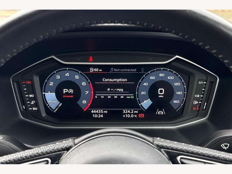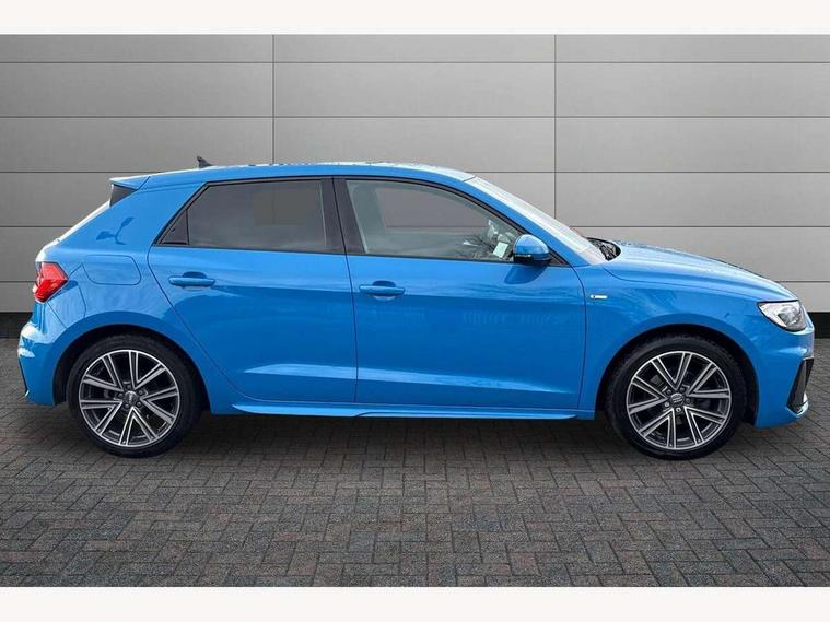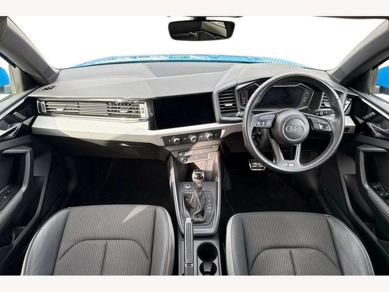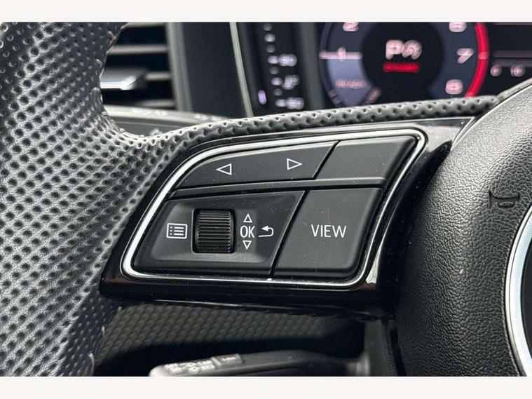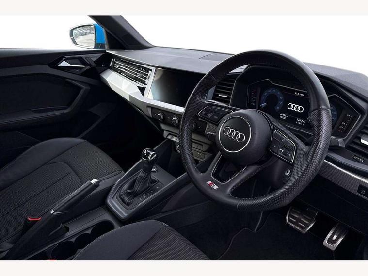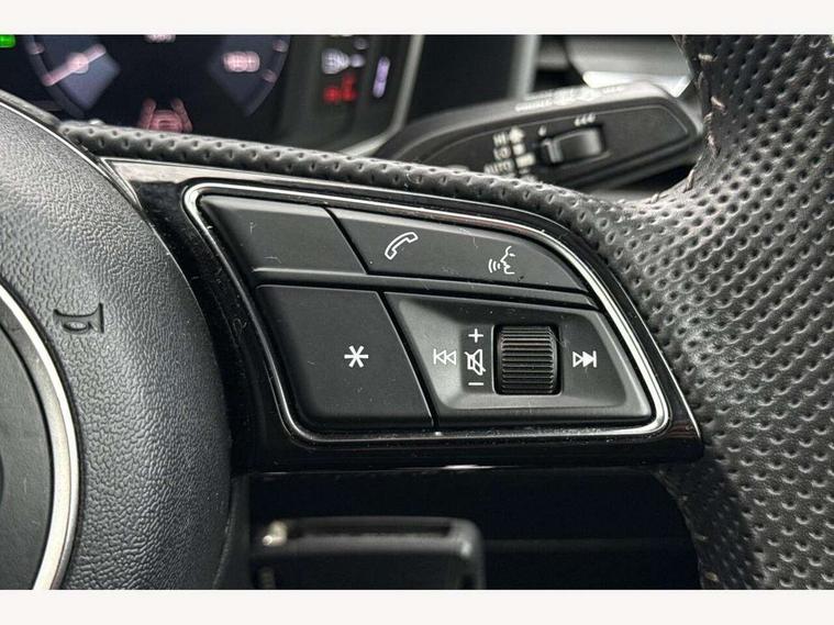 10.25" Digital instrument cluster display screen, Audi connect safety emergency and service including E-call, Audi drive select, Audi smartphone interface, Automatic start/stop system, Bluetooth interface, Driver's information system, Electromechanical power steering, Lane departure warning system, Service interval indicator, Speed limiter, Voice control system, Washer fluid level indicator, Sports suspension, 1 x SDXC card reader, 1 x USB type C and 1 USB type A charging points, Audi music interface, Bluetooth audio streaming, DAB Digital radio, MMI radio plus with 8.8" colour MMI display screen and MMI touch, Auto dimming rear view mirror, Body colour side sill mouldings, Body coloured bumpers, Body coloured door mirrors, Door sills with aluminium inlays and S Line logo, Electric front and rear windows, Front side air inlets in grained matt black and C frame in titanium black, Heat insulating glass windscreen and side windows, Heated rear windscreen, LED headlights with LED rear lights + dynamic rear indicators, Matt aluminium silver tailpipe trim, Matt black radiator grille frame, Matt platinum grey in front spoiler clip and rear diffuser clip, Rain and light sensors, Rear fog lights, Rear wiper, S line badges on front wings, S line exterior bumpers, S line roof spoiler, Side air inlet frames titanium black, Side front spoiler lips in grained matt black, 12V socket in centre console with two cup holders, 3 rear seats, Black cloth headlining, Driver and passenger seat with manual height adjust with forward and backwards adjustment, Front and rear black floor mats with contrast stitching in fine silver, Front head restraints, Height and reach adjustable steering wheel, ISOFIX child seat mounting in front passenger and rear outer seats, Leather gear knob with aluminium trim, Leatherette handbrake grip, Luggage compartment light with front and rear reading lights, Lumbar adjustment for front seats, Rear head restraints, Split folding rear seats, Stainless steel pedals, 3x3 point rear seatbelts, Audi pre-sense front with pedestrain and cyclist recognition, Brake assist function, Driver and front passenger airbag with front side and head airbags, Electronic Stability Control including ABS, EBD, ASR and EDL, Front and rear seatbelt reminder, Front passenger airbag deactivation switch, Hill hold assist, Seatbelt height adjustment for front seats, Seatbelt monitoring, Tyre pressure warning light, Warning triangle and first aid kit, Anti theft alarm, Anti theft wheel bolts and loose wheel warning, Immobiliser, Remote central locking with 2 remote folding keys, Aluminium trim for control switches, air vents and digital instrument cluster, Silver grey inlays polygon structure in diamond paint finish, Structured grey accent areas including air vents, door handle recesses and centre console in quartz paint finish,