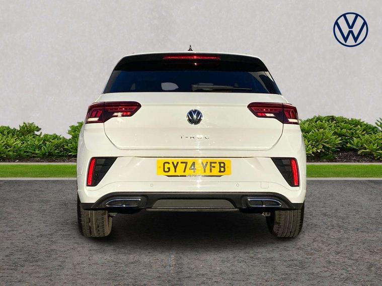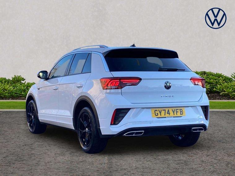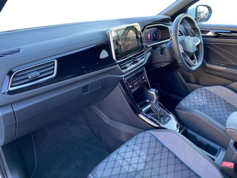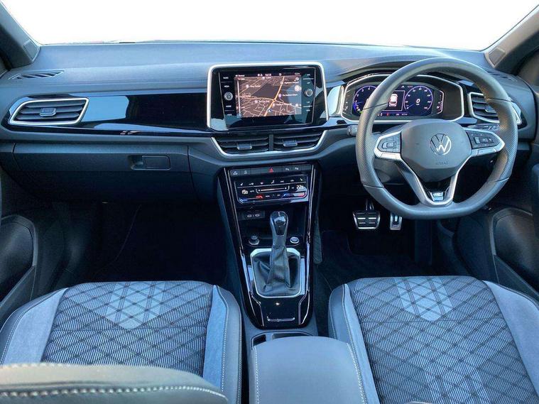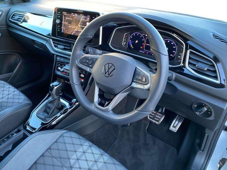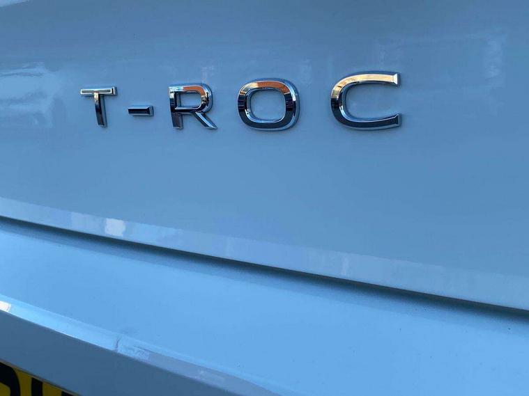 10.25" Digital cockpit pro, Advanced driver attention and drowsiness monitor, Emergency call service, Lane keeping system Lane Assist, Mobile phone interface, Modified key software - reduce switch off time for key status change to Long no motion, Online services, Park assist including front and rear parking sensors, Service interval indicator, Tailgate/trunk lid release from outside, Think blue trainer driver tips and journey analysis, Warning sound and light for front seatbelts unfastened, Wireless app connect, Battery regeneration during braking, Start/stop function with battery regeneration, DAB Digital radio, Diversity antenna for FM reception, Front and rear 6 speakers, Music playback - MP3, WMA and AAC files, Premium USB cable in choice of either Apple or Android smartphone compatibility, SD card slot, Simultaneous pairing of 2 compatible mobile devices, Title and cover art display, We Connect and We Connect Plus functionality, Auto dimming interior rear view mirror, Automatic hazard lights activation under emergency braking, Automatic headlight control with LED separate daytime running lights with coming/leaving home function, Body coloured exterior mirror housings and door handles, Electrically adjustable and heated door mirrors, Extended roof spoiler, Exterior mirrors aspherical on driver side, convex on front passenger side, External USB type C socket and charging sockets, Front windscreen wiper with intermittent wipe and 4 position delay, Heated rear window, LED 3rd brake light, LED rear combination lamps, LED rear number plate lights, Power windows with comfort operation and circuit breaker, Privacy glass for rear side windows and rear window, R-Line design body coloured bumpers, Rain sensor, Rear exhaust tailpipe, Rear fog light on one side and reversing lights on both sides, Rear side wing doors, Rear wash/wipe with intermittent wipe setting, Remote electrically foldable door mirrors, puddle lights and reverse activated passenger's door mirror, 12V power socket in centre console, 3 rear head restraints, 3 seat bench in 2nd row, 4 load lashing points in luggage compartment, Air care climatronic air conditoning system with active combination filter and 2-zone temperature control, Black roof lining, Chrome plated decorative trims, Chrome plated radiator grille inserts, air vent surrounds and light switch surrounds, Door and side trim panel with leatherette insert, Front + rear carpet mats, Front centre armrest, Front cupholders x 2, Front footwell illumination, Front reading light, Front scuff plates with R Line logo, Front seat back storage pockets, Glove compartment door with light, Instrument lighting, white adjustable panel illumination, Interior ambient lighting and surround lighting, Interior light delay, Isofix child seat preparation, Leather gearshift handle, Load-through provision with cup holder when folded down ('Unsplit rear seat bench, split folding backrest, with centre armrest), Luggage compartment lighting, Single front passenger seat, Stainless steel pedals, Storage compartment in left and right luggage area, Storage compartment in rear doors, Storage compartments in driver and front passenger doors, Sunvisors with illuminated vanity mirrors, Variable boot floor, height adjustable and removable, Driver assistance pack without proactive passenger protection - T-Roc, 3 point height adj front seatbelts + pretensioners, 3 point seatbelts in outer rear with ECE label, ABS, Child locks on rear doors, City emergency braking and pedestrian monitoring, Driver and front passenger airbag with front passenger airbag deactivation, Driver and front passenger safety-optimised head restraints, Drivers seatbelt reminder, Electronic parking brake, Electronic Stability Control (ESC) inc EDL (Electronic Differential Lock) and ASR (Traction Control), Front and rear passengers curtain airbag system including front side airbags, Hill start assist, Predictive pedestrian protection, Rear disc brakes, Two tone horn, Tyre pressure loss indicator, Volkswagen roadside assistance, Piano black decorative inserts in dashboard and front door trim panels, Trims for alloy wheels,