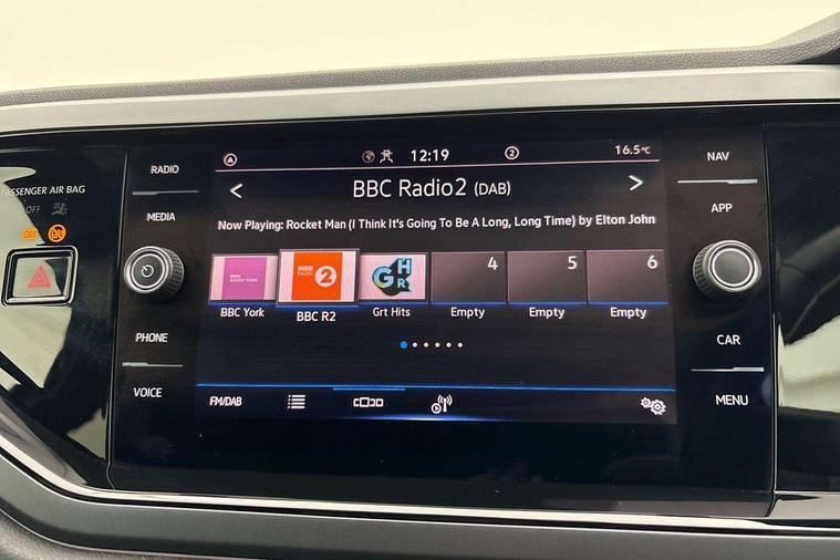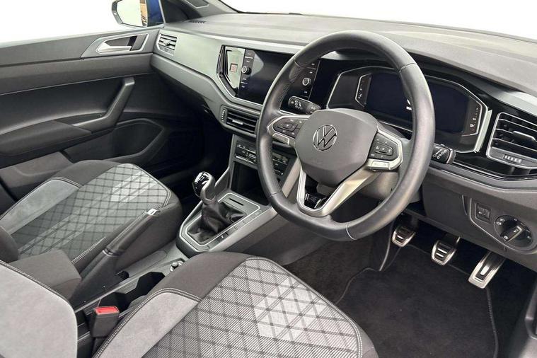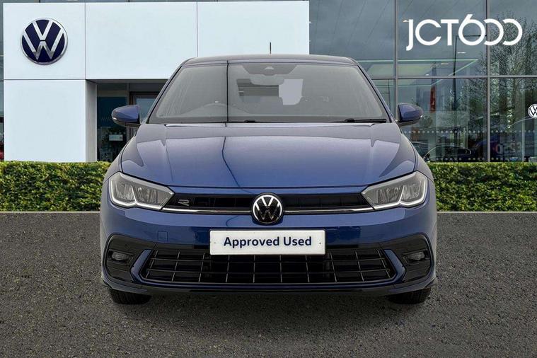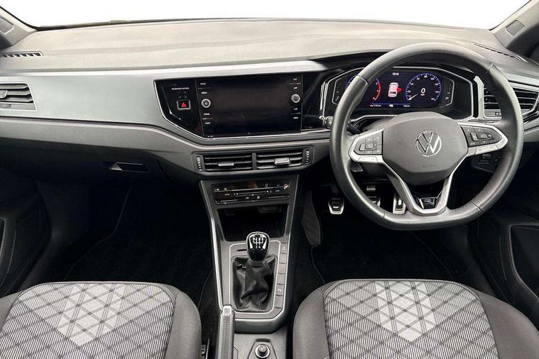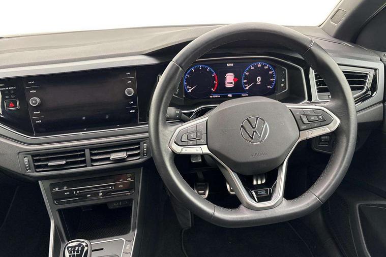 Adaptive cruise control without follow-to-stop and speed limiter, Advanced driver attention and drowsiness monitor, Bluetooth mobile phone interface, Digital Cockpit Pro with 10.25" Display, Dynamic road sign display, Emergency call service, Power assisted speed sensitive steering, Preparation for We connect and We connect plus, Speedo and rev counter, electronic odometer, trip, service interval display and fuel gauge, Standard rear axle, Travel Assist - Lane keeping system and traffic jam assist, Travel assist including emergency assist, Trip computer, Warning signal and warning light for front and rear seatbelts not fastened, Washer fluid level indicator, Wireless app connect, Front wheel drive, Rear shock absorpion, Start-stop system with battery regeneration (recuperation - energy recovery during braking), DAB Digital radio, Diversity antenna for FM reception, Front and rear 6 speakers, Auto headlights, Body colour bumpers, Body colour door handles, Body colour door mirrors, Electric front windows, Front scuff plates with R-Line logo, Heat insulating glass in side and rear windows, Heat insulating glass windscreen, Power folding adjustable/heated exterior mirrors and front passenger exterior mirror lowering function, Rear electric windows, Rear fog light, Rear side wing doors, Rear tinted glass from B-pillar backwards approx 65% tinted, Rear windscreen washer and wiper with interval delay, Third brake light, 12V power socket in centre console, 2 USB-C ports in the front, 2 USB-C charging sockets on the center console in the rear, 3 rear head restraints, 60/40 split folding rear seat and rear seat bench not split, Air care climatronic air conditoning system with active combination filter and 2-zone temperature control, Black roof lining, Chrome plated radiator grille inserts, air vent surrounds and light switch surrounds, Door and side trim panel, Driver and front passenger seat height adjustment, Driver/passenger sunvisors with illuminated vanity mirrors, Front + rear carpet mats in recycled material, Front centre armrest, Front footwell illumination, Front seat backrest storage pockets, Front sports comfort seats, Handbrake lever handle in leather, Headliner in recycled material, Isofix child seat preparation easy-fit (for two outer rear seats, and front passenger seat) compatible with I-size, Karoso artvelours cloth upholstery, Leather trimmed gear knob, LED interior light with switch off delay and dimmer, 2 reading lights front and rear, Luggage compartment cover, Luggage compartment floor, Luggage compartment lighting, Lumbar adjustment for front seats, Multifunction steering wheel, Single front passenger seat, Stainless steel pedals, Standard pedal cluster, Light and sight pack - Polo R-Line, 3 point height adj front seatbelts + pretensioners, 3x3 point rear seatbelts, ABS, Driver and front passenger airbag with front passenger airbag deactivation, Drivers and front passengers safety optimised head restraints, ESC (Electronic stability control) + EDL (Electronic Differntial lock) and ASR (Traction control), Extended and predictive pedestrian/ cyclist protection, Front curtain and side airbags with center airbag, Hill hold control, Manual child lock in rear doors, Single tone horn, Tyre pressure loss indicator, Alarm with interior protection, Anti-theft alarm system with interior monitoring, backup horn, and towing protection, Anti-theft wheel bolts, Electronic engine immobiliser, Chrome applications on rotary light, mirror adjustment, window regulator switches, outlet with frame in black, Dark grey anodised matt decorative inserts in dash and front door panels, Low rolling resistance tyres,