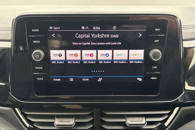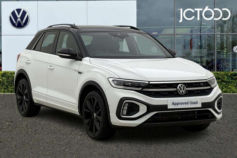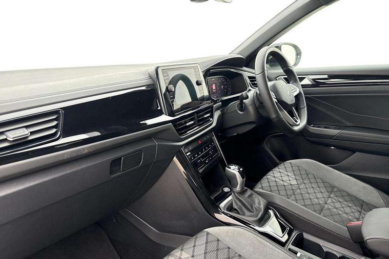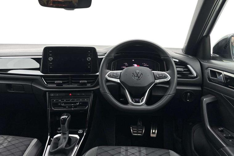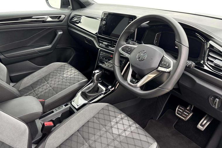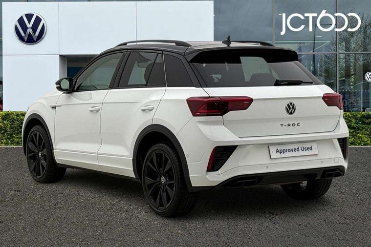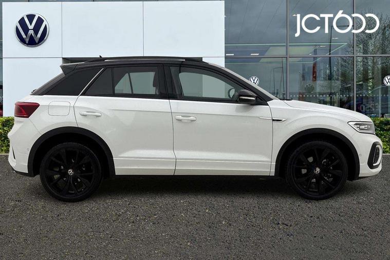10.25" Digital cockpit pro, Advanced driver attention and drowsiness monitor, Emergency call service, Lane keeping system Lane Assist, Mobile phone interface, Modified key software - reduce switch off time for key status change to Long no motion, Online services, Park assist including front and rear parking sensors, Power assisted speed sensitive steering, Rear view camera, Service interval indicator, Tailgate/trunk lid release from outside, Think blue trainer driver tips and journey analysis, Warning sound and light for front seatbelts unfastened, Wireless app connect, Battery regeneration during braking, Rear shock absorption chassis with increased ride height, Start/stop function with battery regeneration, DAB Digital radio, Diversity antenna for FM reception, Music playback - MP3, WMA and AAC files, SD card slot, Simultaneous pairing of 2 compatible mobile devices, Title and cover art display, We Connect and We Connect Plus functionality, Advanced dynamic light assist for LED matrix headlights, Auto dimming interior rear view mirror, Automatic hazard lights activation under emergency braking, Black roof rails, Dynamic cornering light, Dynamic headlight range control with self adjusting whilst driving, Electrically adjustable and heated door mirrors, Extended roof spoiler, Exterior ambient lighting, Exterior mirrors aspherical on driver side, convex on front passenger side, External USB type C socket and charging sockets, Front windscreen wiper with intermittent wipe and 4 position delay, Heated rear window, Illuminated front grille, IQ LED matrix headlights, LED 3rd brake light, LED rear number plate lights, LED rear tail lights with dynamic turn signal, LED separate daytime running light, Light mode for poor weather, rain, fog or snow, Power windows with comfort operation and circuit breaker, Privacy glass for rear side windows and rear window, R-Line design body coloured bumpers, Rain sensor, Rear exhaust tailpipe, Rear fog light on one side and reversing lights on both sides, Rear side wing doors, Rear wash/wipe with intermittent wipe setting, Remote electrically foldable door mirrors, puddle lights and reverse activated passenger's door mirror, Tilting and sliding panoramic sunroof with rear panoramic sunroof, 12V power socket in centre console, 3 rear head restraints, 3 seat bench in 2nd row, 4 load lashing points in luggage compartment, Air care climatronic air conditoning system with active combination filter and 2-zone temperature control, Chrome plated radiator grille inserts, air vent surrounds and light switch surrounds, Door and side trim panel with leatherette insert, Drawer under drivers seat, Front + rear carpet mats, Front centre armrest, Front comfort sports seats, Front cupholders x 2, Front footwell illumination, Front reading light, Front scuff plates with R Line logo, Front seat back storage pockets, Glove compartment door with light, Instrument lighting, white adjustable panel illumination, Interior ambient lighting and surround lighting, Interior light delay, Isofix child seat preparation, Leather gearshift handle, Load-through provision with cup holder when folded down ('Unsplit rear seat bench, split folding backrest, with centre armrest), Luggage compartment lighting, Non-folding front passenger seat backrest, Single front passenger seat, Stainless steel pedals, Storage compartment in left and right luggage area, Storage compartment in rear doors, Storage compartments in driver and front passenger doors, Sunvisors with illuminated vanity mirrors, Variable boot floor, height adjustable and removable, Black design pack - T-Roc black edition plus, Easy open package with safelock - T-Roc, Sport pack with sports suspension - T-Roc, 3 point height adj front seatbelts + pretensioners, 3 point seatbelts in outer rear with ECE label, ABS, Child locks on rear doors, City emergency braking and pedestrian monitoring, Driver and front passenger airbag with front passenger airbag deactivation, Driver and front passenger safety-optimised head restraints, Drivers seatbelt reminder, Electronic parking brake, Electronic Stability Control (ESC) inc EDL (Electronic Differential Lock) and ASR (Traction Control), Front and rear passengers curtain airbag system including front side airbags, Front disc brakes, Hill start assist, Predictive pedestrian protection, Rear disc brakes, Two tone horn, Tyre pressure loss indicator, Volkswagen roadside assistance, Keyless locking and starting system keyless access with safelock, Gloss deep iron dash trim, 19" Misano black diamond turned alloy wheels with low rolling resistance and anti theft wheel bolts, Tool kit, Trims for alloy wheels, Tyre mobility kit including compressor and sealing foam,