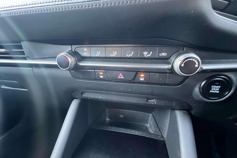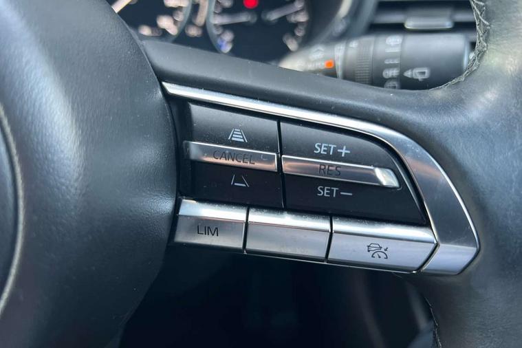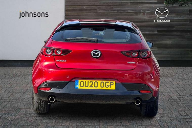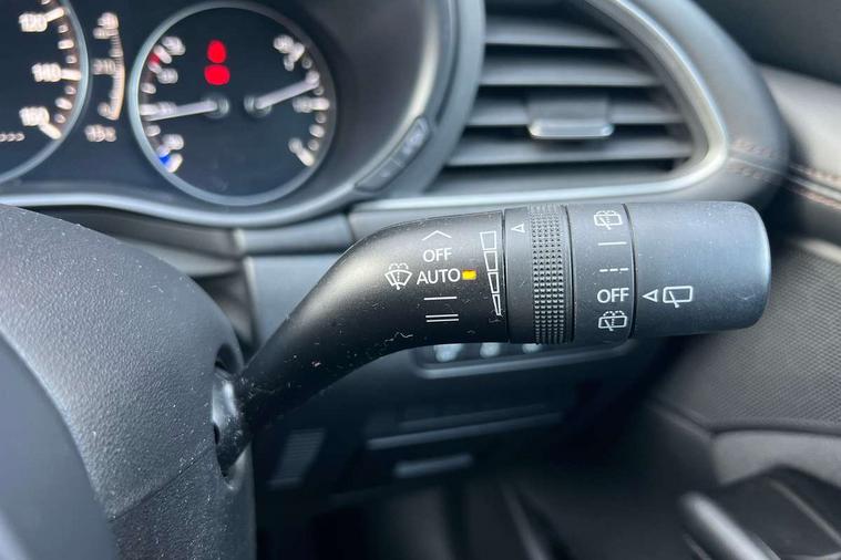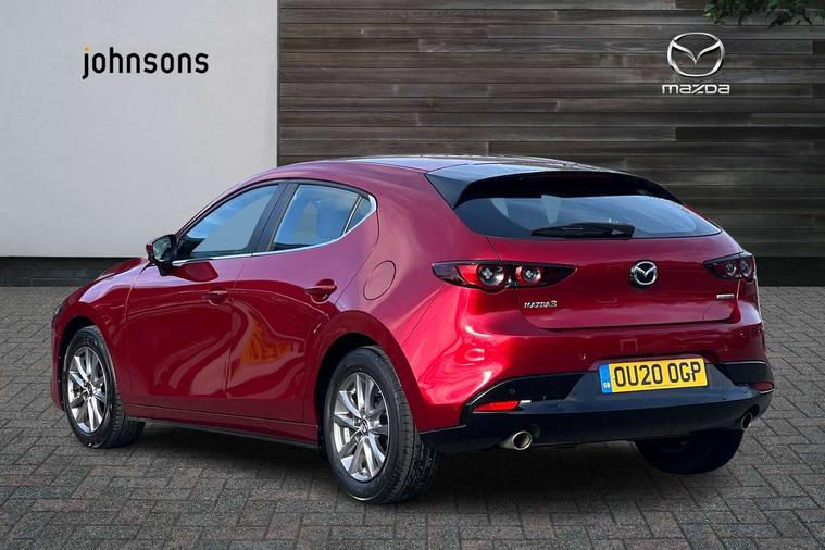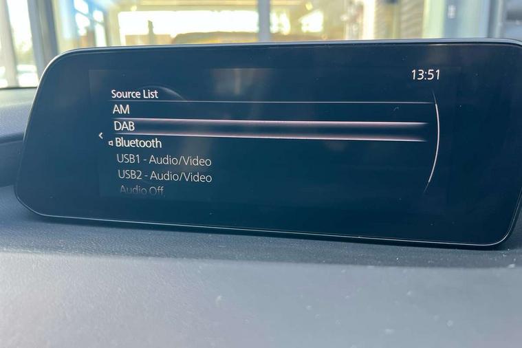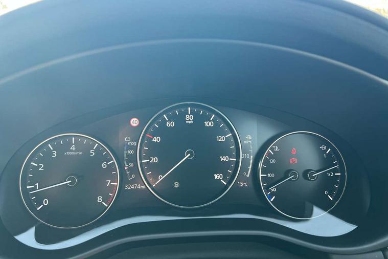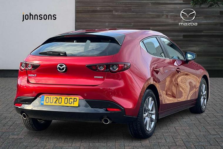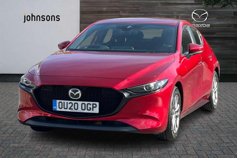 7" colour TFT display, 8.8" Colour centre touch screen display with Mazda Connect infotainment, Apple car play/Android Auto, Audio transfer from bluetooth devices, Blind spot monitoring with rear cross traffic alert, Colour active driving display inc Windscreen projected, Traffic Sign Recognition, turn-by- turn navigation and Mazda Radar Cruise Control information, Digital instrument cluster, Driver attention alert system, E-call with GPS, Emergency stop signalling system, Engine start/stop button, Head up Display, Integrated bluetooth with steering wheel mounted controls, Intelligent speed assist, Lane keep assist system (LAS) with Lane departure warning system (LDWS), Mazda Navigation System with european mapping, Mazda Radar Cruise Control, Mobile App interface, Multimedia Commander, PAS, Rear parking sensor, Service indicator, Trip computer, Auxiliary input socket, Mazda Multimedia System with AM / FM / DAB radio with 8 speakers, Coming/leaving home lighting function, Dark metallic finish signature wing, Daytime running lights, Dusk sensing headlights, Electric front/rear windows with one touch/auto up/down, Electrically adjustable/heated/auto power folding door mirrors with integrated indicators, Front body coloured bumper with black/bright lower bezel, Gloss black mesh grille, Gloss black rear roof spoiler, High beam assist, LED front fog lights, LED headlamps with auto levelling, LED indicator lights, LED rear combination lights with LED rear turn lights, LED third brake light, Rain sensing front wipers, Rear fog lights, Rear gloss black lower moulding, Speed adjustable rear wash wiper with intermittent wipe, 60/40 split fold down rear seats, Cloth upholstery, Driver, Front passenger and two rear grab handles with coathooks, Driver/passenger sunvisors + vanity mirrors (drivers side with ticket holder), Drivers seat manual slide recline and height adjustment, Electrical power outlet, Folding rear centre armrest with two cup holders, Front and rear courtesy lamps, Front armrest, Front centre console with storage box with tray, lid + 2 cupholders, Front head restraints, Front passengers seat manual slide, recline and height adjustment, Illuminated glovebox, ISOFIX child seat anchorage points attached on outer rear seats, Leather wrapped gear shift knob, Leather wrapped steering wheel, LED interior light, Luggage compartment light, Manual air conditioning, Reach adjustable steering wheel, Storage - glovebox, driver and front passenger door pockets and roof mounted sunglasses holder, Three height adjustable rear head restraints, Tilt/height adjustable steering wheel, USB charging point, 3 point ELR front seatbelts with pretensioners, 3 rear 3 point seatbelts with ELR, Anti-lock braking system (ABS), Collision mitigation braking system, Drivers knee airbag, DSC - Dynamic Stability Control, Dual front airbags, EBD - Electronic brakeforce distribution, Electronic parking brake with auto disengage function and auto hold function, ESP, Front and rear curtain airbags, Front passenger airbag cut-off switch, Front side airbags, Front smart city brake support, G-Vectoring control plus, Hill launch assist, Intelligent Traction Control system, Mild Hybrid system with regenerative braking, Seatbelt reminder for driver/front passenger and rear seats, Tyre pressure monitoring system (TPMS), Auto door lock when driving, Remote central locking + deadlocks, Thatcham accredited alarm and immobiliser, 16" Silver metallic alloy wheels, Emergency tyre repair kit,