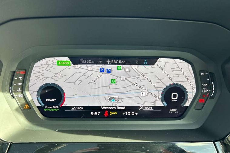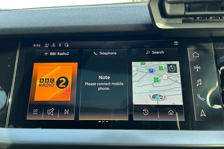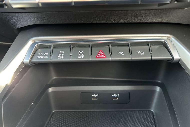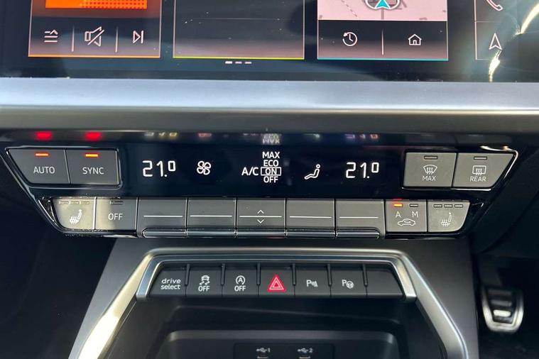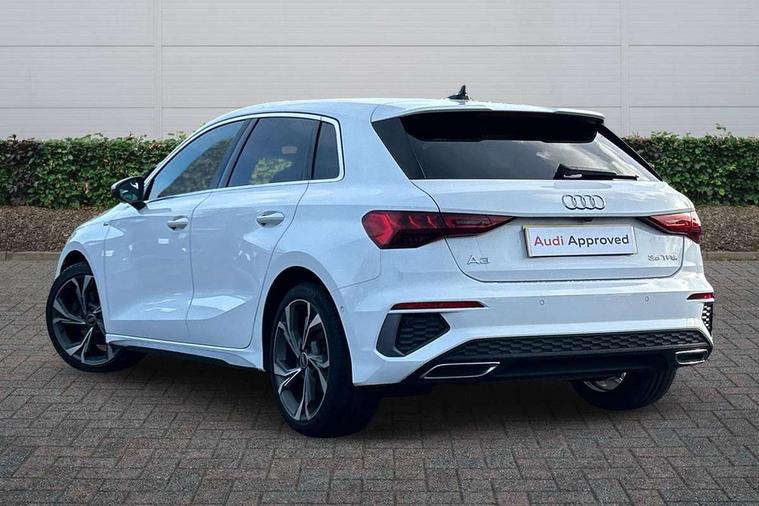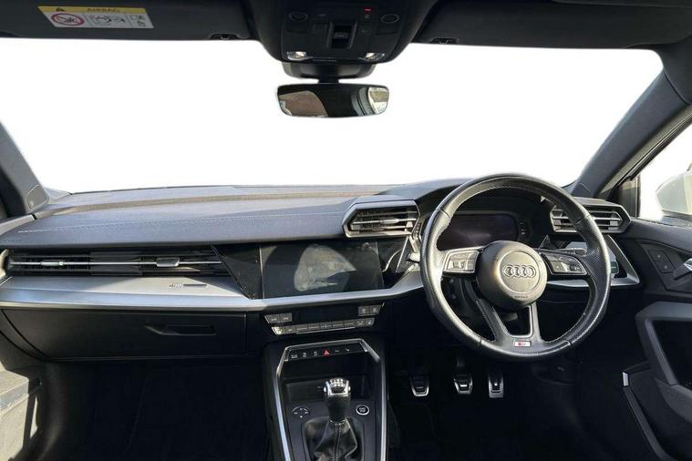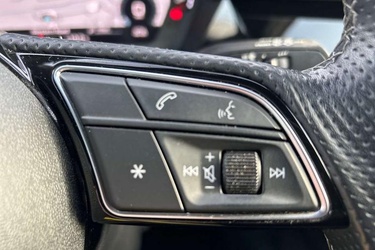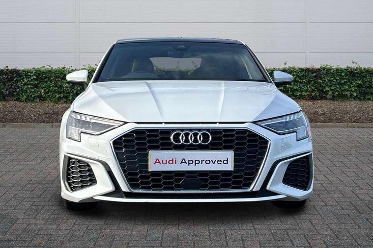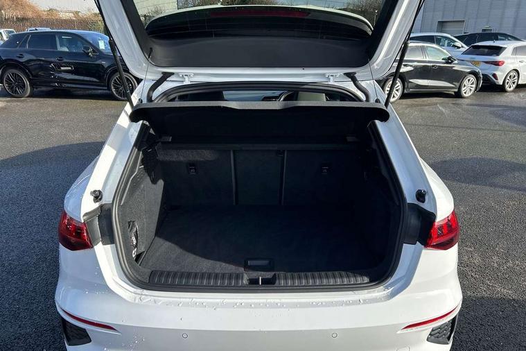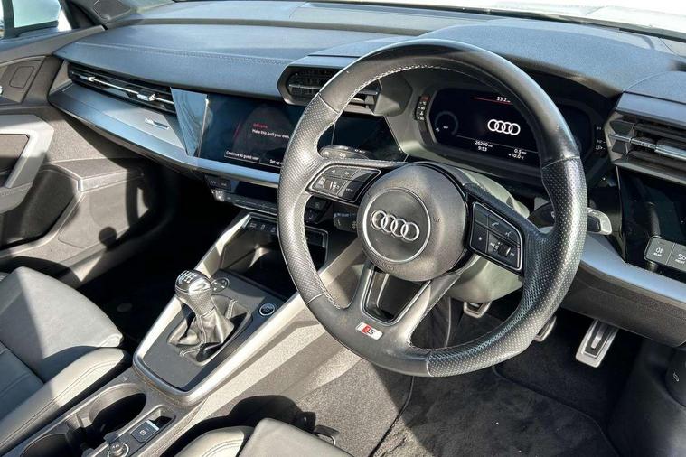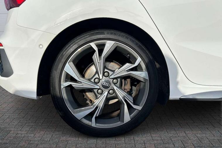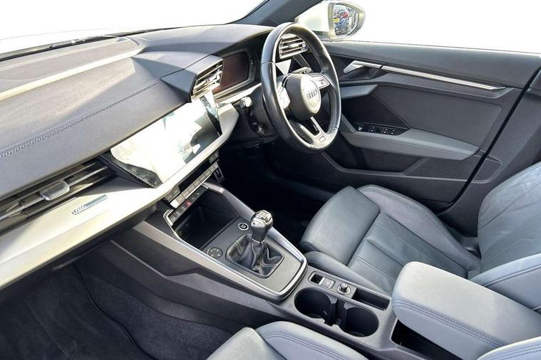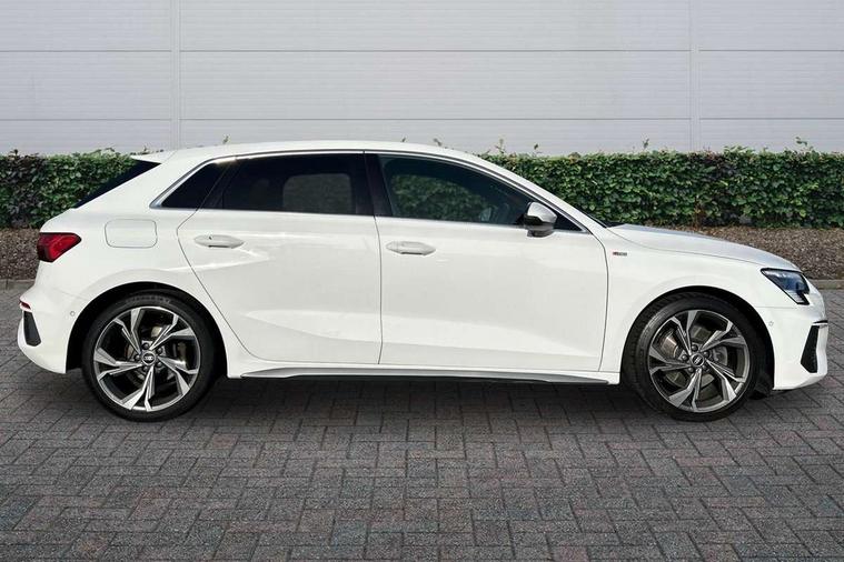 Audi connect emergency call and service, Audi drive select (Auto, Comfort, Dynamic, Efficiency and Individual), Audi smartphone interface, Audi Virtual Cockpit - 10.25" digital and colour instrument cluster, Automatic start/stop system with recuperation, Bluetooth interface, Collision avoidance assistant, Cruise control, Electromechanical power speed sensitive steering, Lane departure warning system, MMI Navigation Plus with high resolution 10.1" colour touch screen display, Rear parking sensors, Service indicator, Trip computer, Voice control system with natural language interaction, 2xUSB-C connection with data and charging functions, 6 passive loudspeakers, DAB Digital radio, Acoustic glass windscreen, Aluminium window trim, Auto dimming frameless rear view mirror, Electrically adjustable/heated/folding/dimming door mirrors with kerb view includes integrated LED indications + kerb view function for passenger side, Front electric windows, Illuminated aluminium inserts front door sills with S logo, LED daytime running lights, Light and rain sensors, Privacy glass - dark tinted rear window, rear door and side windows, Rear electric windows, Rear side air outlets in grained matt black, Rear wiper, S line bumpers, S roof spoiler, 12V socket and storage compartment in front centre console, 40/20/40 split folding rear seat bench with cupholder, Black cloth headlining, Dual zone electronic climate control, Front and rear centre armrest in leather, Front and rear headrests, Front/rear floor mats, Height and reach adjustable steering wheel, Interior lighting - glove compartment light and right hand side, Luggage compartment floor covering, Manual boot compartment lid, Manually adjustable front seats, Seat side bolsters, Stainless steel pedals and front footrest, Twin leather upholstery with front sports seats S embossed logo, Aluminium interior elements pack - A3 Sportback, S line styling pack - A3 Sportback, 3x3 point rear seat belts, Driver and front passenger airbag with passenger airbag deactivation, Electronic Stabilisation Control (ESC) including ABS, ASR and EDL, First aid kit with warning triangle and 2 safety vests, Front side airbags with head airbags and interaction airbag, Hill hold assist, Pre-sense front with pedestrian and cyclist detection, Seatbelt monitoring, Tyre pressure loss indicator, Anti theft alarm, Anti-theft wheel bolts, Electronically operated child lock, Immobiliser, Remote control central locking, Accent surfaces in the dashboard and centre console in platinum grey silk effect paint finish, Dark spectrum aluminium inlays,