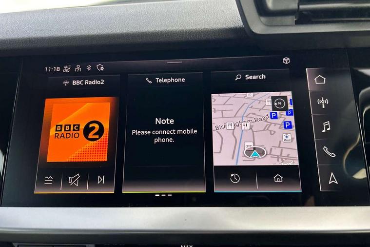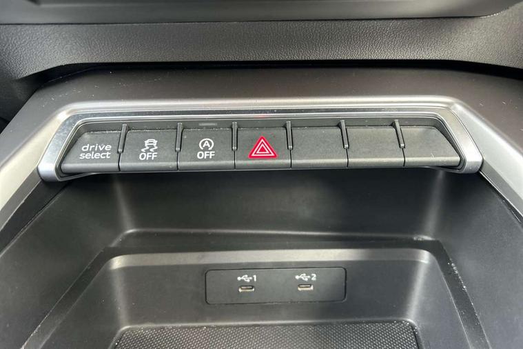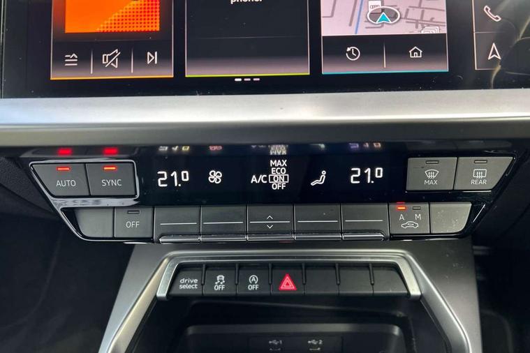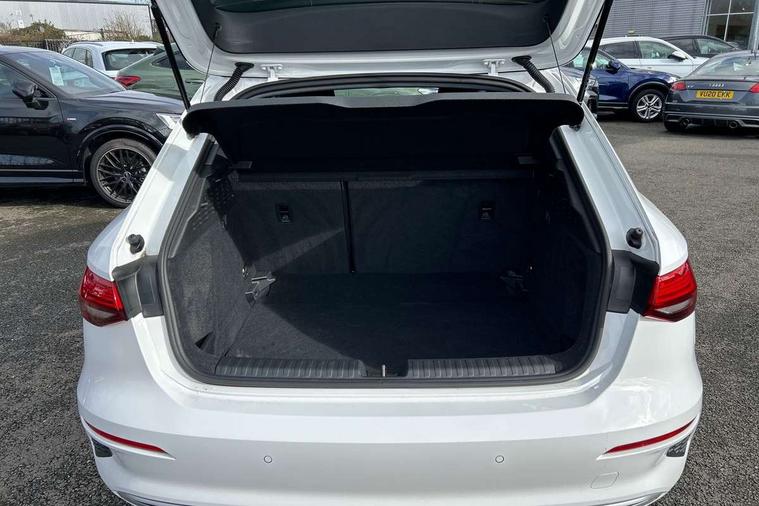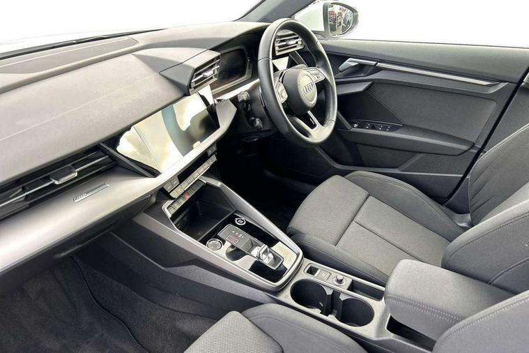 Audi drive select (Auto, Comfort, Dynamic and Individual), Audi smartphone interface, Audi Virtual Cockpit - 10.25" digital and colour instrument cluster, Automatic start/stop system with recuperation, Bluetooth interface, Camera based traffic sign recognition, Collision avoidance assistant, e-Call (emergency call), Electromechanical power speed sensitive steering, Lane departure warning system, MMI Navigation Plus with high resolution 10.1" colour touch screen display, Service indicator, Trip computer, Voice control system with natural language interaction, Standard suspension, 2xUSB-C connection with data and charging functions, 6 passive loudspeakers, DAB Digital radio, 3rd brake light, Acoustic glass windscreen, Aluminium window trim, Auto dimming frameless rear view mirror, Body colour exterior mirrors, Body colour roof spoiler, Electrically adjustable/heated/folding/auto dimming door mirrors with integrated LED indications + kerb view function for passenger side, Front electric windows, LED daytime running lights, LED headlights and halogen rear lights, Light and rain sensors, Rear electric windows, Rear side wing doors, Rear window, rear door windows and rear side windows in clear glass, Rear wiper, 12V socket and storage compartment in front centre console, 3 seat bench in 2nd row, 3 spoke leather multifunction steering wheel with paddle shift, 4 way electrically adjustable lumbar support for driver and front passenger, 60/40 split folding rear seat bench, Dual zone electronic climate control, Front and rear headrests, Front centre armrest, Front door sill trims with aluminium inlay, Front/rear floor mats, Height and reach adjustable steering wheel, Interior lighting - Front and rear roof module including reading lights, glove compartment light and right hand side, Interior lighting - glove compartment light and right hand side, Luggage compartment floor covering, Manual boot compartment lid, Manually adjustable front seats, Routine cloth upholstery with front sports seats, Seat side bolsters, Single front passenger seat, Steel grey cloth headlining, Aluminium interior elements pack - A3 Sportback, LED interior lighting pack - A3 Sportback, Sport styling pack - A3 Sportback, 3x3 point rear seat belts, Driver and front passenger airbag with passenger airbag deactivation, Electronic Stabilisation Control (ESC) including ABS, ASR and EDL, First aid kit with warning triangle and 2 safety vests, Front side airbags with head airbags and interaction airbag, Pre-sense front with pedestrian and cyclist detection, Seatbelt monitoring, Tyre pressure loss indicator, Anti theft alarm, Anti-theft wheel bolts, Electronically operated child locks, Immobiliser, Remote control central locking, Inlays with silk effect paint in platinum grey,