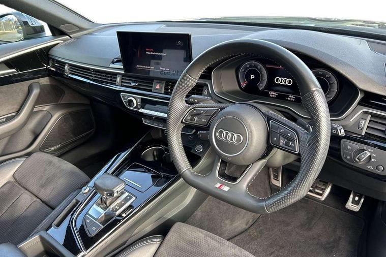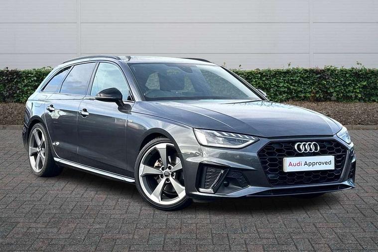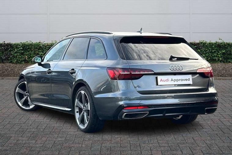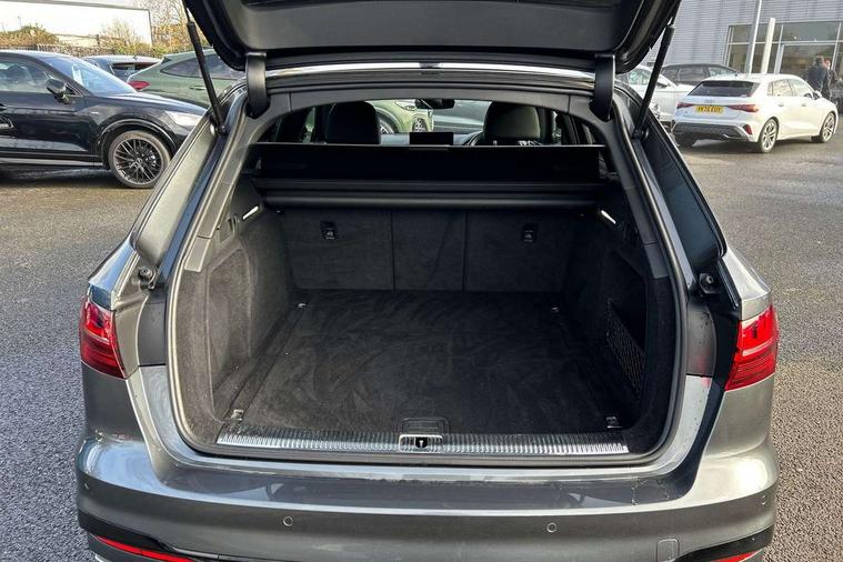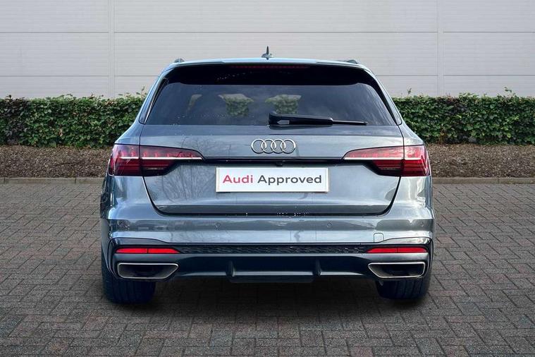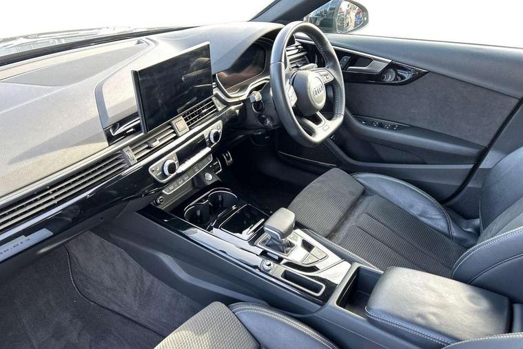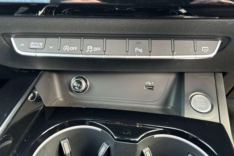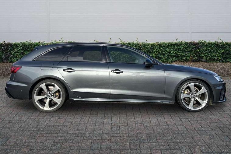 Audi connect safety and service (e-call), Audi drive select, Audi parking system plus with front and rear sensors, Audi smartphone interface, Audi virtual cockpit, Automatic start-stop system with coasting functionality and efficiency programme, Bluetooth interface, Electromechanical power steering, MMI Navigation plus with MMI touch includes 10.1" high resolution colour MMI display, 3D map, Power operated tailgate, Rear view camera, Voice control system, 54 litre fuel tank, Sports suspension lowered by 23mm, 2 USB charging ports, 8 passive loudspeakers, DAB digital radio reception, Auto dimming rear view mirror, Body colour door handles, Body colour front spoiler lip, Body colour side sill trim, Electrically folding auto dimming/adjustable/heated door mirrors with LED side indicators and kerb view function for passenger side, Grained matt black side air inlets with matt aluminium silver inlay, High beam assistant, LED headlights with LED rear lights + dynamic rear indicators + headlight adjustment and high beam, turning light + LED daytime running lights, Matt aluminium silver tailpipe trim, Privacy glass, Rain and light sensors, S Line badges on the front wings, S line front and rear bumpers with side skirts, S Line rear diffuser in matt titanium black with trim strip in matt aluminium silver, S Line roof edge spoiler, Windscreen with acoustic glazing, 3 spoke flat bottomed high multi-function leather sport steering wheel with gearshift paddles, 4 way electric lumbar support for driver and front passenger, 40/20/40 split folding 3 rear seat bench in 3 parts with rear centre armrest, Black cloth headlining, Black perforated leather gearknob, Contrast stitching on seats, steering wheel and gear lever gaiter, Deluxe 3 zone electronic climate control, Door sill trims with aluminium inlay, Electric load area cover, Front and rear head restraints, Front centre armrest, Heated front seats, Illuminated door sill trims with S logo, ISOFIX child seat mounting and top tether, Manual seat adjustment, Stainless steel pedals and foot rest, Tool kit, LED Interior light pack - A4/S4, Titanium black styling pack - A4 Avant, 3 rear seatbelts, 6 airbags - Driver, front passenger, curtain and side windows, Electronic Stabilisation Control (ESC) including ABS, ASR and EDL, Hill hold assist, Multi collision brake assist, Pop-up bonnet for pedestrian protection, Pre sense city, Seatbelt monitoring, Warning triangle and first aid kit, Anti theft alarm, Anti theft wheel bolts, Keyless Go, Piano black finish inlay, 19" 5 arm rotor design alloy wheels titanium matt look, Tyre repair kit,