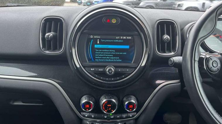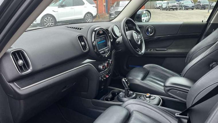 Active Guard incl speed limiting and lane departure functions with auto steering, and front collision warning with brake intervention, Automatic start/stop function with brake energy recuperation, Electro-mechanical speed dependant steering assistance, Instrument cluster, Mini E-call, MINI TeleServices, On board computer, Rear parking distance control, Double Vanos system, Fully variable valve control, High precision injection, Steptronic transmission with double clutch, FM tuner and DAB digital radio, Body colour fuel filler cap, Chrome line exterior, Day time driving lights, Door sill strips, Dynamic brake lights, Electric windows, Heated rear window, Heated windscreen washer jets, Left exhaust tailpipe with chrome finisher, Model logo, Model logo on Tailgate, Radiator grille, Rain sensor with auto headlights, Rear fog lights, Rear window wiper, Side scuttle panel with integrated indicator, Split rear doors, Sun/heat protection glass, White indicator lenses, 12V Accessory socket in centre console, 360L luggage compartment capacity, 4 lashing eyes in luggage compartment, 40:20:40 split folding rear seats, Chrome interior highlights, Cupholders, English handbook, Front headrests, Glove compartment, Height and length steering column adjustment, Interior lighting with 12 basic colours selectable via toggle switch in roof, Isofix rear child seat preparation, Leather gearshift lever and handbrake gaiters, LED reading lights, vanity mirror lights, front foot well light and spotlight on front seats, Manual air conditioning, Mechanical seat adjustment, driver seat height adjust, forward/back and front seats backrest, MINI Yours fine walk nappa leather steering wheel with contrast stitching in silver and MINI Yours badge, Multifunction steering wheel, Passenger seat height adjuster, Rear headrests, Storage compartments in doors, Sunvisors with vanity mirrors, Excitement pack - Countryman, Navigation pack - Countryman, 2 tone horn, 3 point seatbelts on all seats, 6 Airbags - front, side, head and seat belt tensioners, Anti-lock braking system (ABS), DSC - Dynamic Stability Control, Electronic handbrake, Front and rear disc brakes, Hill start assist, Tyre pressure monitoring system, Alarm system with tilt sensor, monitoring doors, bonnet interior and tailgate, Auto drive away locking, Deadlocking function, Electronic vehicle immobiliser, Locking wheel bolts, Start/stop toggle with keyless go, Chrome line interior, Tool kit,