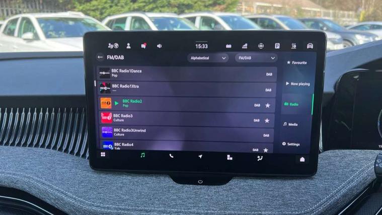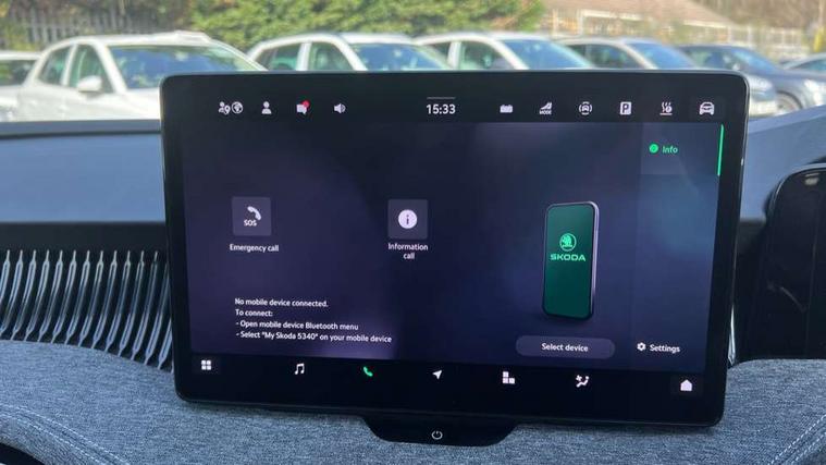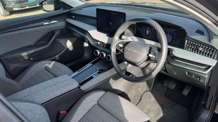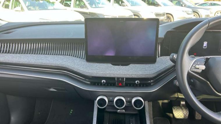 13" touchscreen display with satellite navigation, 4x USB-C ports (2x in front centre console and 2x in rear) (45W), Adaptive cruise control with speed assist, lane assist plus and traffic tram assist, Blind spot detection with door exit warning, Bluetooth system, CareConnect and Emergency Call, ChatGPT functionality, Drive mode selection, Driver fatigue sensor, Front assist with extended predictive pedestrian protection, Front cross traffic assist, PAS, Quick start all heating software functionality, Stop/start engine system, Traffic sign recognition, Turn assist with evasive assistance, Virtual Cockpit - 10.25" digital display, Voice control system, Washer for rear camera, Wireless charging for one smartphone (15W) with cooling function, Wireless smartlink apple carplay, SmartLink+ android auto, Mode 3 charging cable, 8 Speakers, DAB Digital radio, Display cleaner, FM radio connection, Web radio connection, Acoustic side windows and interior noise suppression, Backdrop lighting, Body colour door handles, Body coloured door mirrors, Chrome roof rails, Chrome window surround, Dark chrome grille surround, Electrically adjustable, heated, folding and driver side auto-dimming door mirrors with integrated indicators and logo projection, Frameless auto-dimming rear view mirror with USB-C, Ice scraper in fuel tank cap, LED 3rd brake light, Light assist with High beam control, Light assistant (coming/leaving home/tunnel light), Privacy glass, Rear fog light (x1), Rear roof spoiler, Rear side wing doors, Rear windscreen wiper, Unique dark chrome design logo on alloy wheels, Windscreen wipers with rain sensor, 12V socket 1x centre console 1x boot, 2x cargo elements in boot, 2x light in boot, 3 seat bench in 2nd row, 4x foldable bag hooks in boot, 60:40 Split folding rear seats, Bottle holders in the front doors 1.5 litre bottle and rear 1.5 litre bottle, Cup holder in front with easy open mat, Front armrest with storage box, Front comfort seats, Heated front seats, Height adjustable driver and front passenger seats with 2-way electric tilt, 4-way pneumatic lumbar support, and extendable thigh support, Height adjustable front and rear head restraints, Height adjustable front passenger seat, Illuminated glovebox, Interior lights with control switches, Isofix child seat fittings in outer rear and front passenger seats, LED front and rear reading lights, Massage function for front seats, Single front passenger seat, Skoda lettering on steering wheel, Storage compartment with cover, Storage pockets on back of front seats, Sun visors with illuminated vanity mirrors, Ticket holder on A Pillar, Tri zone climate control, Umbrella in driver's door, 3 rear seatbelts, 8 Airbags - Front driver and passenger, front side driver and passenger, centre, curtain front and rear, drivers knee, Crew protect assist, Driver and passenger seatbelts with warning light, Electronic parking brake, ESC including ABS, EBV, MSR, ASR, EDS, HBA, DSR, RBS, CBC, multi-collision brake (MKB) and Auto hold, Hill hold assist, Power operated child lock in rear doors, Alarm with interior monitoring tilt sensor and back up horn, Backrest remote release from trunk, Electronic engine immobiliser, Keyless start/stop, Remote central locking with SAFE system, Third key, Decorative front door sills, Tyre repair kit,