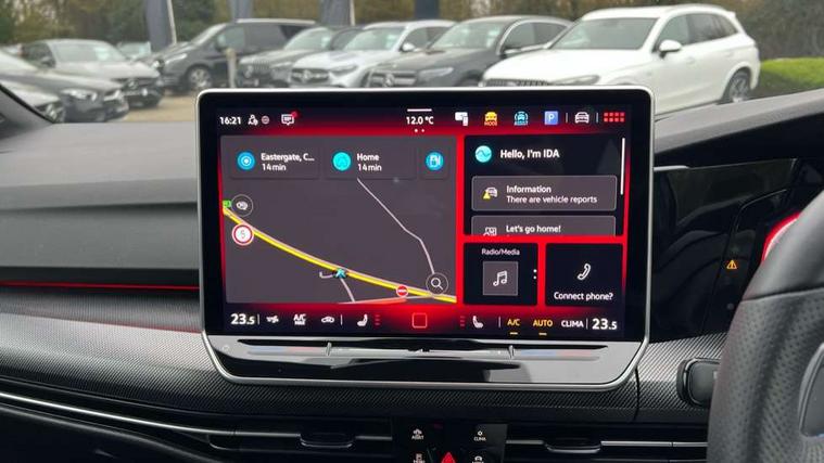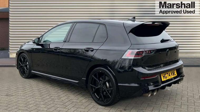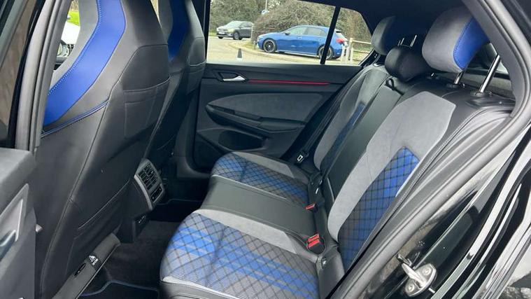 Activated carbon canister, Adaptive cruise control (ACC) with speed limiter and front assist (reacting to vehicles pedestrians and cyclists), Advanced driver attention and drowsiness monitor, Driver alert system, Dynamic road sign display, E-Sim card for online connectivity, eCall emergency call system, Electronic maximum speed limit increased to 270 km/h, includes driving Modes 'drift' and 'special', larger roof spolier and GPS laptimer + G-Meter, Front and rear parking sensors, Lane keeping system, Multi-color Digital cockpit pro, selection of different info profile possible, Multifunction camera for distance control, Navigation system, Oncoming vehicle braking when turning including swerve support, Preparation for light assist system, Progressive steering, Speedo, rev counter, electronic odometer, trip, service interval display, exterior temperature and fuel gauge, Voice assistant and voice enhancer with chat GPT, Warning signal and warning light for front and rear seatbelts not fastened, We connect plus preparation, We connect preparation, Wireless app connect, Front stabilizer bars, Petrol Particulate Filter, Sports suspension, Start-stop system with battery regeneration (recuperation - energy recovery during braking), XDS electronic differential lock for improved traction and handling, 2 USB C ports in front, 2 USB charging sockets on the centre console in the rear charging capacity upto 45W, Comfort telephony + wireless charging, without wireless aerial connection, Digital radio reception (DAB), Diversity antenna for FM reception, Gaming platform via car app, Infotainment system with 12.9" display, Mobile phone interface with inductive charging feature, 3rd brake light, Auto dimming rear view mirror, Auto headlights, Automatic headlamp activation with Coming home and Leaving home feature, Black badge on B-pillar, Black mirror caps, Black strips on radiator grille and headlights, Body colour door handles, Cornering light and poor weather light, Darkened headlights, Darkened R Logos and VW logos in front, rear and on fender, Dynamic headlight range control with dynamic cornering light, Exhaust system with black tailpipe, Exterior ambient lighting variant 1, Exterior mirrors convex on the left and aspherical on the right, Front and rear electric windows, Front fog lamps, Heat insulating windshield made of laminated glass, Iluminated lighting animation with wake up/goodbye scenario and illuminated door handles, LED daytime running lights, LED rear combination lights, R name plate, Rain sensor, Rear fog light on one side and reversing lights on both sides, Rear side wing doors, Rear tinted glass 65% light absorbing from B pillar backwards, Rear windscreen washer and wiper with interval delay, Remote electrically foldable door mirrors, puddle lights and reverse activated passenger's door mirror, Welcome light with surround lighting, 12V socket in front centre console, 12V socket in luggage compartment, 3 rear head restraints, 3 seat bench in 2nd row, Air care climatronic 3 Zone automatic climate control with rear air conditioning control panel, Ambient lighting with 30 colour including LED light unit in front footwell with selectable light colour, Brushed stainless steel pedals, Carpet mats, front and rear, Front centre armrest, Front passenger seat, Front sports seats, ISOFIX anchors for child seats on outer rear bench seats and on front passanger seat compatible for i-Size, Leather gearshift handle, Leather wrapped multifunction sports steering wheel with touch control and shifting paddles, Luggage compartment lighting, Rear cupholder and loadthough, Soul black instrument panel, Split folding backrest with centre armrest and unsplit rear seat bench, Storm grey roof lining, Sun visors with illuminated vanity mirrors, R styling pack - Golf, 3 point height adj front seatbelts + pretensioners, 3 rear three point seatbelts, ABS, Autonomous emergency braking front assist with pedestrian and cyclist monitoring, Child locks on rear doors, Disc brakes in rear incl. brake calipers in black with darkened R-logo, Driver and front passenger airbag with front passenger airbag deactivation, Electronic parking brake with auto hold, ESC (Electronic Stability Control), Extended pedestrian protection measures, Two tone horn, Tyre pressure monitoring system, Volkswagen roadside assistance, Alarm with interior protection, Anti theft wheel bolts, Keyless start with SAFE lock, Preparation for alcohol interlock, Wheel hub cover with darkened R-logo,