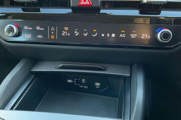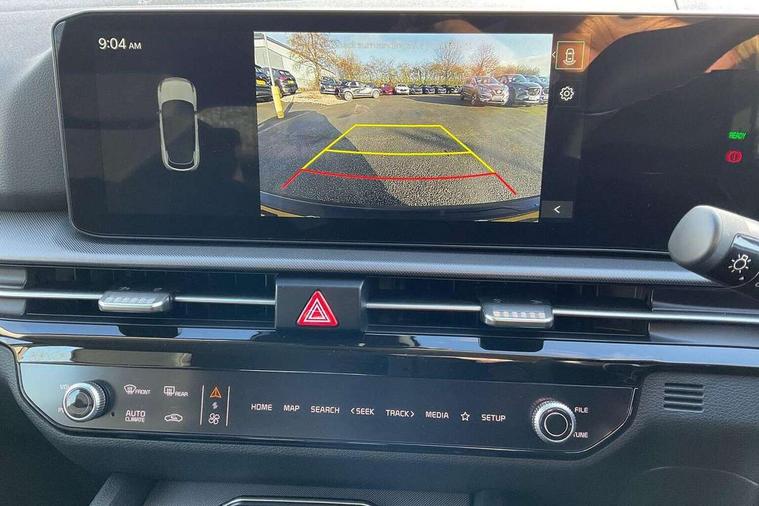 12.3" Touchscreen navigation system, 4.2" driver display screen, Bluetooth connection, Drive mode selector, Driver attention warning, E-call, Emergency stop signalling system, Forward collision avoidance assist (FCA) - city/pedestrian/cyclist/junction covering, Front and rear parking sensors, Highway Driving Assist (HDA), Intelligent speed limit assist, Kia Connect (UVO), Lane Following Assist (LFA), Lane keep assist, Low washer fluid warning, Motor driven power steering, Over the air (OTA) functionality, Reversing camera, Smart cruise control with stop and go functionality, Speed limiter, Tailgate, Trip computer, Windscreen washer level indicator, Wireless apple car play/android Auto, 6 speaker audio system, DAB Radio with MP3, Front passenger 1x USB-C port, Steering wheel mounted audio controls, USB-C port for connection of a media device, Auto dimming rear view mirror, Automatic defog system, Automatic headlight control system, Black bumpers with silver accents, Black radiator grille with silver surround, Black wheel arches, Body colour door mirrors, Body colour exterior door handles, Body colour radiator upper garnish and door garnish, Electric front and rear windows with front one touch function, Electrically adjustable/heated/folding door mirrors with LED indicators, Heated rear window, High beam assist, LED daytime running lights, LED Headlights, LED High mounted stop light, LED rear lights, Rain sensing wipers, Rear fog lamp, Rear roof spoiler, Rear side wing doors, Rear wiper, Satin finished beltline, Silver front and rear skid plate, Silver roof rails, Silver window surround, Trailer stability assist, 12V power socket in front and luggage compartment, 2nd row personal lamps, 3 seat bench in 2nd row, 3 x passenger assist grips, 40/20/40 split folding rear seat, All-round height adjustable headrests, Automatic air conditioning, Centre console storage box, Cloth upholstery, Cupholders in rear armrest, Door courtesy lamps, Driver and front passenger sunvisors with illuminated vanity mirrors, Driver's seat manual height adjust, Drivers seat power lumbar support, Front and rear door storage, Front cabin, rear & luggage compartment lights, Front passenger's seat manual height adjustment, Front seat and rear pockets, Gear shift indicator, Glovebox, ISOFIX Child seat top tethers and anchor fixings outer rear seats, Leather steering wheel, LED lighting in overhead console, Luggage area load cover, Luggage area parcel shelf, Luggage board, Luggage compartment under floor storage, Luggage net hooks, Manual adjust steering wheel, Metal paint interior door handles, Paddle shift controls, Rear air conditioning, Rear cabin light, Rear coat hooks, Single front passenger seat, Ventilation ducts to rear compartment, Active front headrests, All round 3-point seatbelts, Anti-lock braking system (ABS), Dual front side airbags, Dual horn, Dynamic brake control, Electronic parking brake with auto hold function, Electronic stability control with downhill brake control, Front passenger airbag cut-off switch, Front seatbelt pretensioners + load limiters, Height adjustable front seatbelts, Hill start assist control (HAC), Impact sensing auto door unlocking, Multi collision brake assist, Rear airbags, Rear door child safety locks, Rear seat alert system, Seatbelt reminder warning, Traction control, Twin curtain airbags, Twin front airbags, Tyre pressure monitoring system, Vehicle stability management, Customisable automatic door locking, Customisable automatic door unlocking, Door deadlocks, Engine Start/Stop Button with Smart Entry System, Locking wheel nuts, Smart key with motion sensor, Speed sensitive auto door locking, Thatcham category 2 security alarm and immobiliser, Visible vehicle identification number, 17" Alloy wheels, Tyre mobility kit,
