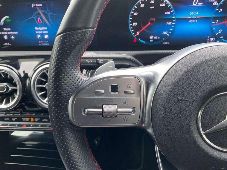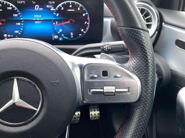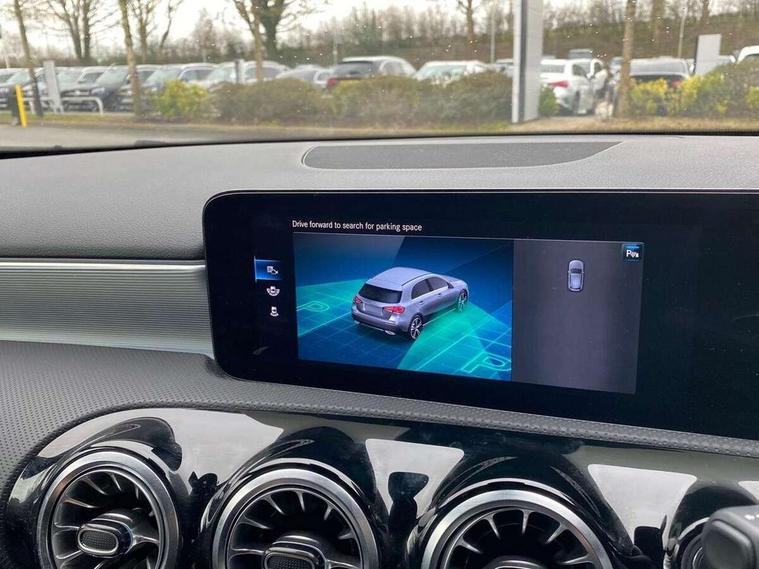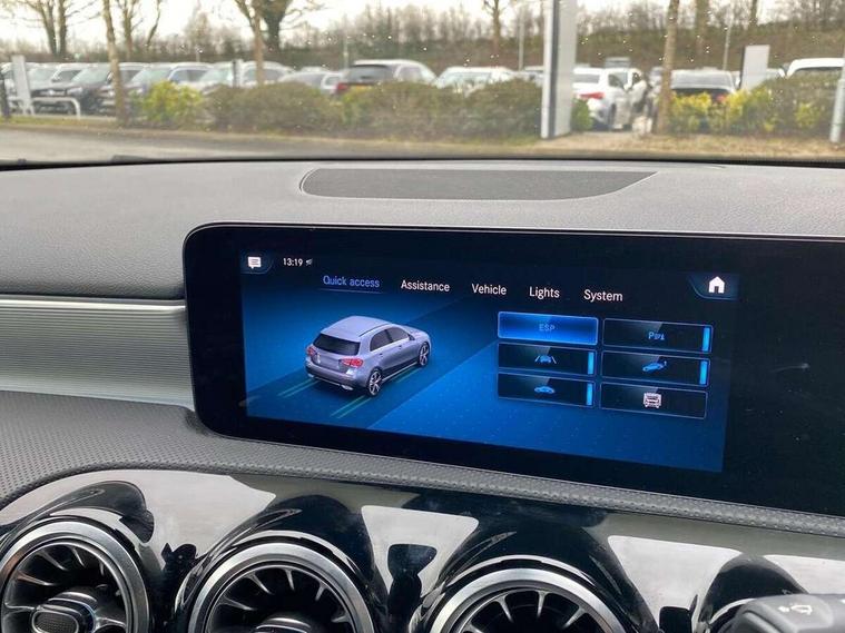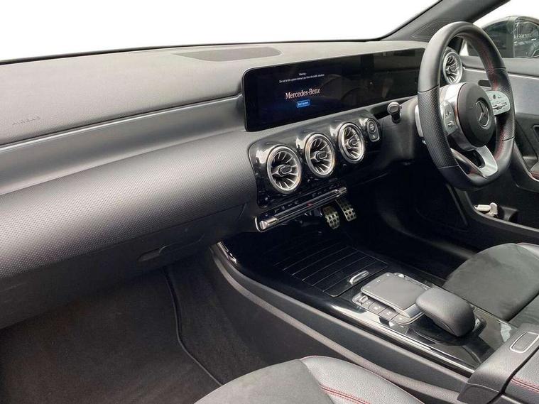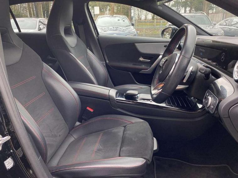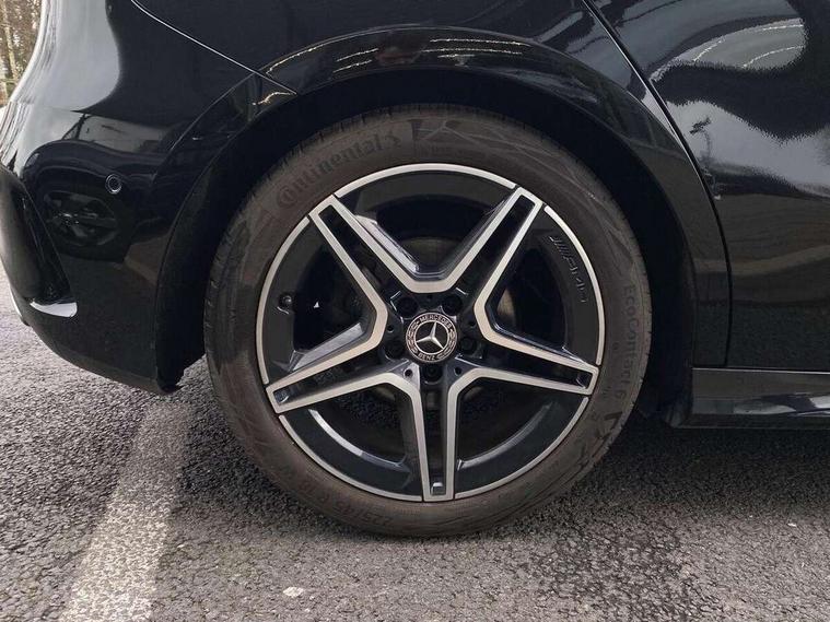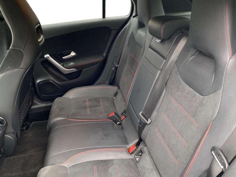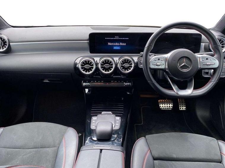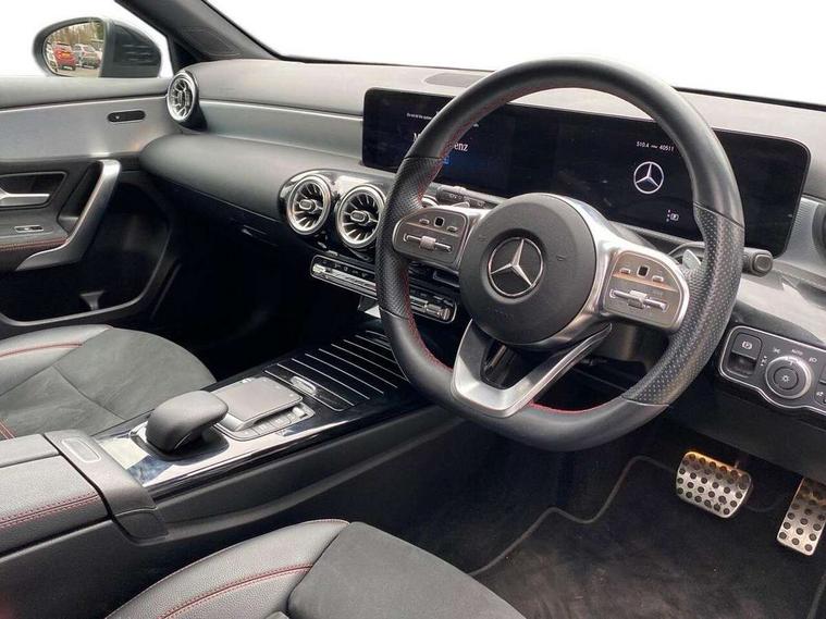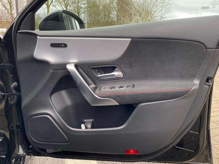 10.25" Digital instrument cluster display screen, 10.25" media display, 180 degree rear view camera with parking guidelines, Active parking assist with visual and audible warning of detected obstacles, Attention assist, Brake pad wear indicator warning light, Car wash mode, Cruise control + speed limiter, Direct steering, Dual bluetooth interfaces, DYNAMIC SELECT with a choice of driving modes (ECO, Comfort, Sport and Individual), ECO start/stop function, Fluid level warning indicator for fuel, oil, coolant and washer fluid, Hard-disk navigation, Hey Mercedes Voice activation, Lamp failure indicator, Lane keeping system, Mercedes me connect including emergency call system, accident recovery, breakdown and maintenance management, Mercedes me remote services, Outside temperature gauge, Owners manual in English, Pre-installation for private car sharing, Preinstallation for Mercedes Benz link, Service indicator (ASSYST), Smartphone integration with Apple CarPlay and Android auto, Speed limit assist, Speed sensitive power steering, Trip computer, Ultrasonic sensors positioned in the front and rear bumpers, Lowered comfort suspension, Rear axle torsion beam, 2 USB ports (type C) in rear stowage compartment and one in front of center console, 6 speakers, DAB Digital radio, MBUX multimedia system with DAB digital radio and touchpad including satellite navigation, Mercedes-Benz sound system - 100W, 4 Electric Front and Rear windows, Adaptive brake lights, AMG bodystyling - Front apron with splitter in chrome, rear apron with chrome trim and chrome visible trim elements in tailpipe, Automatic headlights, Black weather strip, Body colour bumpers, Body colour door handles with chrome inserts, Body colour side skirt, Electric adjustable and heated door mirrors with integrated LED side indicators, Exclusive diamond radiator grille, Exhaust system - Twin visible tailpipes in polished stainless steel, Headlamp assist automatic headlamp activation, Heated glass rear windscreen + timer control, LED High level third brake light, LED high performance headlamps with integrated LED daytime running lights, LED tail lamp, Privacy glass, Radio aerial, Rain sensing windscreen wipers with two sensitivity settings, Rear fog lights, Rear side wing doors, Rear wiper, 3 seat bench in 2nd row, 3 Spoke flat bottom leather multi function steering wheel with perforated leather in grip area, 40:20:40 split folding rear seats, Artico man-made leather/Microfibre Dinamica upholstery with red contrast stitching, Auto Mercedes-Benz child seat recognition sensor, Black air vents with surround in silver chrome, Black roof lining, Brushed stainless steel sports pedals with rubber studs, Controller on centre console with chrome surround, Floor mats with AMG lettering, Front centre armrest with storage compartment, Front seat backs luggage nets, Galvanished gear shift paddles on steering wheel, Heated front seats, Height/reach adjustable steering column, Illuminated Mercedes Benz lettering front door sills with changeable cover, Interior lighting - 64 colour Ambient lighting, Interior mirror with reading lamps in black and frameless, Manual height adjustable front seats, Rear armrest with 2 cupholders, Rear head restraints, Seat occupancy sensor for front passenger seat, Single front passenger seat, Sports seats with integrated headrests, Stowage compartment in centre console with retractable cover, Sunvisors with illuminated vanity mirrors, Touchpad on center console, Twin front cupholders, Two zone thermotronic luxury automatic climate control, Light and sight pack - A Class, Mirror package - A Class, Night pack - A Class Saloon/Hatchback, Seat comfort pack - A Class, 3 rear 3 point seatbelts, ABS with Brake Assist, Active bonnet, Active brake assist includes forward collision warning system with autonomous braking, Adaptive brake assist with hold function and hill start assist, Black seatbelts, Childproof locks manually operated for rear doors and electrically operated for rear power windows, Crash responsive emergency lighting, Driver and passenger head and side airbags, Drivers knee airbag, Dual stage driver/passenger airbags, Electronic parking brake, ESP curve dynamic assist, ESP with ASR, Front and rear seatbelt reminder, Front brake callipers with Mercedes Benz lettering, ISOFIX and top tether child seat fixing points in two outer rear seats, Tyre pressure monitoring system, Warning triangle and first aid kit, Window airbags, Alarm system/interior protection/immobiliser, Keyless entry lock/unlock, Keyless Go, Remote central locking and crash sensor with emergency opening function, Urban guard vehicle protection system with immobiliser and interior protection, Matrix look light longitudinal grain aluminium trim element, 18" AMG 5 twin spoke light alloy wheels aerodynamically optimised painted in black with highsheen finish, Summer tyres, Tirefit sealant kit,