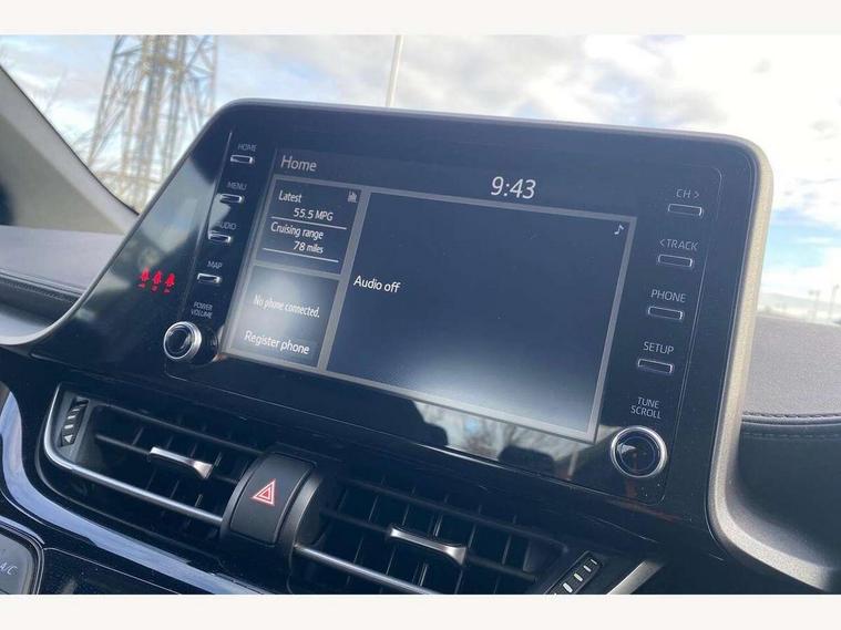 4.2" coloured TFT screen for multi-information display, Adaptive cruise control, Bluetooth connectivity, E-call, Electric power steering, Hybrid system indicator, Lane departure alert with steering control, Lane trace assist, Push button start, Push button tailgate release, Remote boot door release in cabin, Remote boot door release in key, Reversing camera, Road sign assist - RSA, Smart voice assist, Trip computer, Voice recognition, Vehicle Stability Control (VSC), 6 speakers, AM/FM radio, DAB Radio (Digital Audio Broadcasting), Toyota touch 2 multimedia system with 8" display, USB connector, Wi-fi connectivity, Anti-jam protection on power windows, Auto high beam, Auto up and down function on all power windows, Automatic headlights, Automatic headlights cut-off, Black and body coloured rear bumper, Black lower front grille, Black upper front grille, Body colour door handles, Body colour door mirrors, Body colour front spoiler lip, Body coloured front bumper, Boot door release with push button, Electric heated door mirrors, Follow me home headlights, Front and rear power windows, Front fog lights, Headlight cut off reminder, Honeycomb lower front grille, LED daytime running lights, LED High mounted stop light, LED rear brake lights, LED rear combination lights, Manual headlight levelling, Manually retractable door mirrors, Noise reduction layer on front windows and windscreen, Power adjustable door mirrors, Rear side wing doors, Rear spoiler, Rear tailgate, Rear window defogger, Rear window wiper, Reflective LED headlights, Shark fin antenna, UV-filter on driver and passenger windows, UV-filter on rear windows, 12v power outlet - front, 3 rear headrests, 3 seat bench in 2nd row, 3 spoke leather steering wheel, 60/40 split folding rear seat, Adjustable rear headrests, Adjustable speed limiter switch on steering wheel, Assist grips front and centre pillar, Audio and telephone switches on steering wheel, Black front door assist grips, Boot light, Chrome interior door handles, Cloth upholstery, Driver and front passenger personal light, Driver and front passenger Whiplash Injury Lessening seats, Dual zone automatic air conditioning, Floor mats, Front cupholders, Front head restraints, Front sports seats, Glovebox with internal light, Hard tonneau cover, Hooks for luggage holding net, Humidifying Nanoe air purifier, Illuminated entry system, Isofix attachments on outer rear seats, Leather gearshift, Light on driver sun visor, Light on passenger sun visor, Manual telescopic steering wheel, Manual tilt steering wheel, Manually adjustable lumbar support on driver seat, Manually height adjustable driver seat, Manually height adjustable front passenger seat, Manually reclining driver seat, Manually reclining front passenger seat, Manually sliding driver seat, Manually sliding front passenger seat, Microphone on front personal light, Mirror on driver sun visor, Mirror on passenger sun visor, Multimedia switches on steering wheel, Pollen filter, Shopping bag hooks, Single front passenger seat, Slow opening on lower glovebox, Voice recognition switch on steering wheel, 16 Disk front wheel brake, 3x3 point rear seatbelts, ABS+EBD+Brake assist, Electronic parking brake, Front and rear seatbelt reminder, Front passenger airbag on/off switch, Hill start assist control (HAC), Pre collision system with pedestrian detection, Pre-tensioners and force limiters, Rear door child safety locks, SRS Airbags - Driver + Front passenger, front side, front and rear curtain and driver's knee airbags, Toyota safety sense, Tyre pressure monitoring system, Tyre pressure warning system, Acoustic vehicle alert system (AVAS), Glass-breaking alarm sensors, Immobiliser, Intrusion alarm, Intrusion sensor, Motion sensor alarm, Power door locks, Power passenger window lock, Remote central locking, Black lower dashboard, Black upper dashboard, Grey deco line on upper dashboard, Matte black centre console, Tyre repair kit,