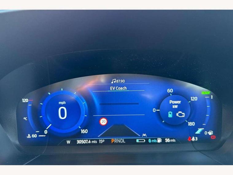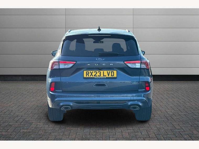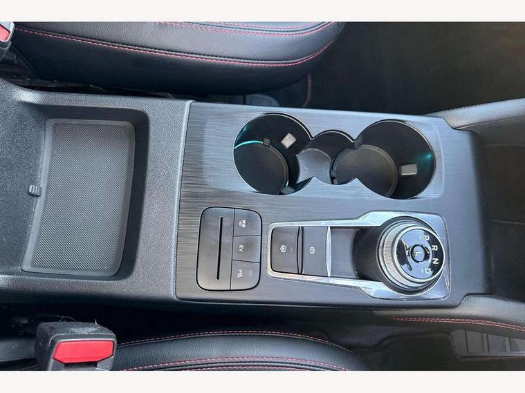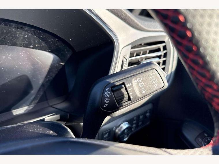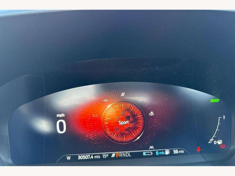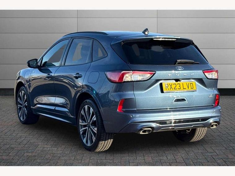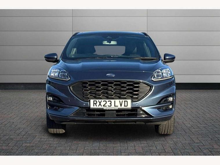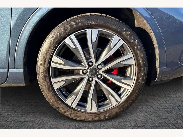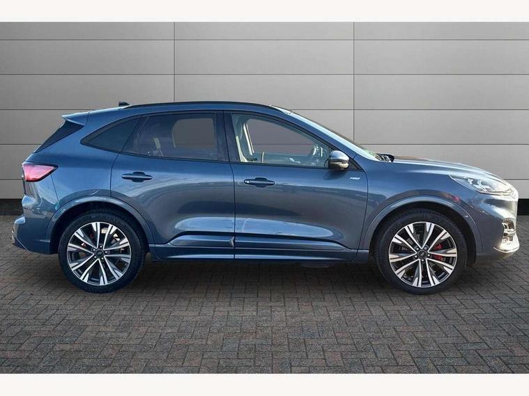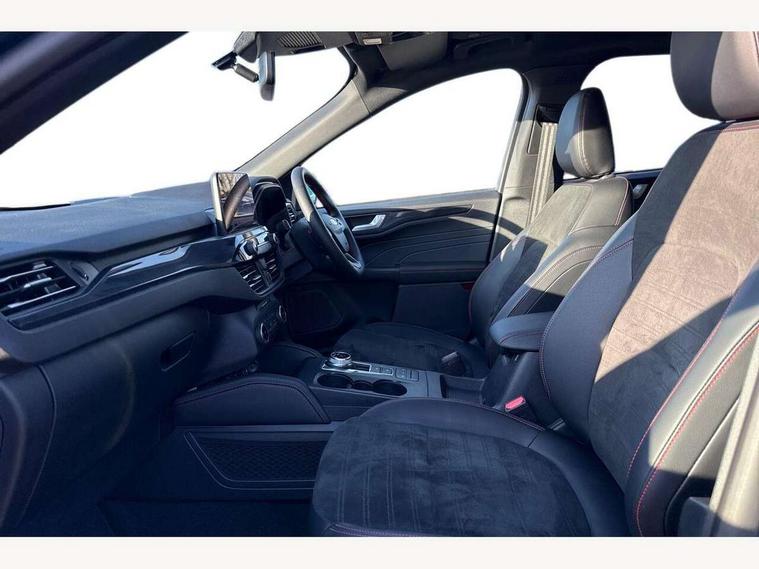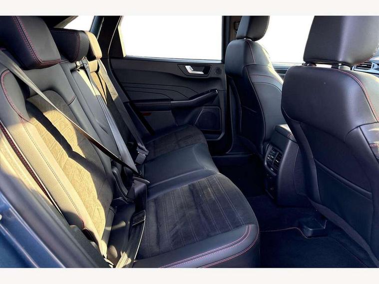 Driver impairment monitor, Ford easy fuel, Ford SYNC 3 with 8" colour touchscreen, App Link, andriod auto/apple carPlay and navigation with Ford pass connect, Front and rear parking sensors, Hands free power tailgate, Intelligent speed assist, Lane keeping aid with lane departure warning, Mobile phone wireless charging pad, Power assist steering, Selectable drive modes, 3-Pin Home charge cable (230V/16A Domestic socket), Sports suspension, Ford DAB audio system with 6 speakers, Auto dimming rear view mirror, Auto headlamps with high and low beam, Auto wipers, Black roof rails, Front LED fog lights with cornering function, Full LED headlamps, Large rear spoiler, LED daytime running lights, LED rear lights, Power folding heated door mirrors with puddle lights, Power front/rear windows with global close, Power opening panoramic roof, Privacy glass, Quickclear heated windscreen, ST Line body styling kit with unique front and rear fascia and bumper, rear painted diffuser, front painted skid plates, dark mesh upper grille, ST Line front scuff plates, Twin exhausts, 10 way power adjustable drivers seat, 2nd row sliding seats, 8 way manual passenger seat including lumbar support and height adjust, Alloy pedals, Ambient lighting, Centre console with electronic parking brake, Dark headlining and pillars, Dual electronic automatic temperature control, Flat bottomed leather steering wheel in sensico with red stitching, Front and rear head restraints, Heated passenger and driver seats, Rear charging point, Sensico partial premium leather upholstery, Sports seats, ST Line front and rear floor mats, B&O with large instrument cluster pack - Kuga, 3x3 point rear seatbelts, Airbags - front driver/passenger, front and rear curtain, Drivers knee airbag, Electronic stability control (ESC) and ABS, Ford MyKey Gen 2 safety system, Post collision braking, Powered child proof rear door locks, Pre collision assist with autonomous emergency braking, Red brake calipers, Tyre pressure monitoring system, Engine immobiliser, Keyless entry, Keyless start with 'Ford Power' starter button, Locking wheel nuts, Remote powered central double locking doors, Thatcham category 1 alarm,