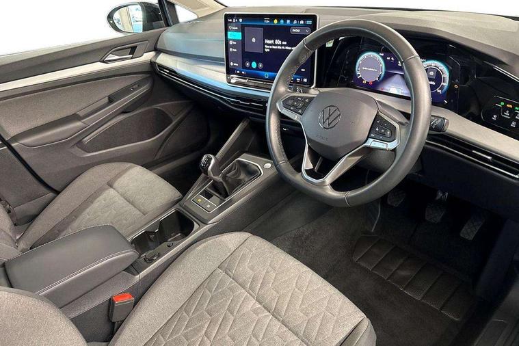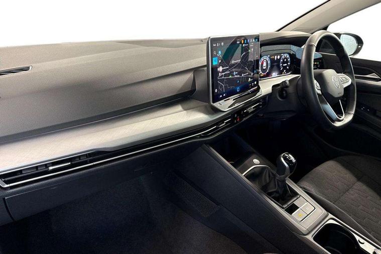 Activated carbon canister, Adaptive cruise control (ACC), Advanced driver attention and drowsiness monitor, Dynamic road sign display, E-Sim card for online connectivity, eCall emergency call system, Multi-color Digital cockpit pro, selection of different info profile possible, Multifunction front facing camera for distance control, Navigation system, Oncoming vehicle braking when turning including swerve support, Preparation for light assist system, Speed limiter, Speedo, rev counter, electronic odometer, trip, service interval display, exterior temperature and fuel gauge, Voice enhancer and voice control, Warning signal and warning light for front and rear seatbelts not fastened, We connect plus preparation, We connect preparation, Wireless app connect, Petrol Particulate Filter, Start-stop system with battery regeneration (recuperation - energy recovery during braking), XDS electronic differential lock for improved traction and handling, 2 USB C ports in front, 2 USB charging sockets on the centre console in the rear charging capacity upto 45W, Comfort telephony + wireless charging, without wireless aerial connection, Digital radio reception (DAB), Diversity antenna for FM reception, Gaming platform via car app, Infotainment system with 12.9" display, Mobile phone interface with inductive charging feature, 3rd brake light, Auto dimming rear view mirror, Auto headlights, Automatic headlamp activation with Coming home and Leaving home feature, Body colour door handles, Body colour door mirrors, Exterior ambient lighting with illuminated door handles, Exterior mirrors convex on the left and aspherical on the right, Front and rear electric windows, Heat insulating windshield made of laminated glass, LED daytime running lights, Rain sensor, Rear exhaust tailpipe, Rear fog light on one side and reversing lights on both sides, Rear side wing doors, Rear tinted glass 65% light absorbing from B pillar backwards, Rear windscreen washer and wiper with interval delay, Remote electrically foldable door mirrors, puddle lights and reverse activated passenger's door mirror, Standard bumpers, Welcome light with surround lighting, 12V socket in front centre console, 12V socket in luggage compartment, 3 rear head restraints, 3 seat bench in 2nd row, Chrome plated radiator grille inserts, air vent surrounds and light switch surrounds, Front centre armrest, Front head restraints, ISOFIX anchors for child seats on outer rear bench seats and on front passanger seat compatible for i-Size, Leather gearshift handle, Luggage compartment lighting, Rear cupholder and loadthough, Single front passenger seat, Soul black instrument panel, Split folding backrest with centre armrest and unsplit rear seat bench, Standard pedal cluster, Storm grey roof lining, Sun visors with illuminated vanity mirrors, Parking and comfort pack - Golf Estate/Hatchback, 3 point height adj front seatbelts + pretensioners, 3 rear three point seatbelts, ABS, Autonomous emergency braking front assist with pedestrian and cyclist monitoring, Child locks on rear doors, Driver and front passenger airbag with front passenger airbag deactivation, Electronic parking brake with auto hold, ESC (Electronic Stability Control), Extended pedestrian protection measures, Rear disc brakes, Two tone horn, Tyre pressure loss indicator, Volkswagen roadside assistance, Alarm with interior protection, Anti theft wheel bolts, Keyless start with SAFE lock, Preparation for alcohol interlock, Nature cross brushed decorative inserts for dashboard and front door panels,