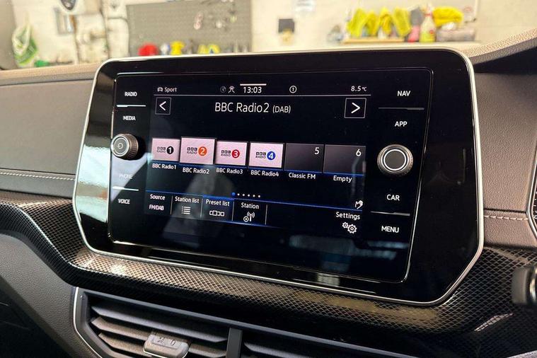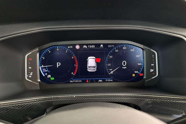 'Lights On' Reminder warning buzzer, 10.25" Digital cockpit pro, Advanced driver attention and drowsiness monitor, Blind spot monitoring, Car information display, Driver profile selection including ECO function, Dynamic road sign display, E-Sim card for online connectivity, eCall emergency call system, Front and rear parking sensors, Front assist, forward collision warning, autonomous emergency braking and speed limiter, Low washer fluid warning light, Multifunction computer with visual gear change recommendation for fuel consumption, Multifunction front facing camera for distance control, Operating permit alteration, Power assisted steering, Predictive adaptive cruise control, Preparation for navigation system with media and internet package, Preparation for We connect and We connect plus, Semi-automated driving assistance, travel assist including lane keeping system Lane Assist and emergency assisst, Speedo, rev counter, electronic odometer, trip, service interval display, exterior temperature and fuel gauge, Warning sound and light for doors and tailgate open, Warning sound and light for front seatbelts unfastened, Wireless Car net app connect with Apple CarPlay, combined functionality of Apple CarPlay/Android Auto and MirrorLink, Wireless charging, Misfuel prevention device, Start-stop system with battery regeneration (recuperation - energy recovery during braking), 2 USB C ports in front, 2 USB charging sockets on the centre console in the rear charging capacity upto 45W, Diversity antenna for FM reception, Music playback - MP3, WMA and AAC files, Radio, Automatic dimming interior rear view mirror, Automatic hazard lights activation under emergency braking, Automatic headlight control with LED separate daytime running light and coming home and leaving home feature, Body colour door handles, Body colour door mirrors, Body coloured bumpers, Dynamic headlight range control with self adjusting whilst driving, Electric folding door mirror, adjustable, heated with front passenger exterior mirror lowering function, Exterior mirrors convex on the left and aspherical on the right, Front and rear electric windows, Front door sill protectors with R-Line logo, Galvanised body, Heat insulating and laminated safety glass windshield, Heat insulating darkened glass in side and rear windows, High Beam Assist, automatic sensing for switching between dipped and main beam, LED rear combination lights, LED third brake light, Lower door sills and door pillars in black, Privacy glass for rear side windows and rear window, Rain sensor, Rear fog light on one side, reversing light on both sides, Rear side wing doors, Rear window aerial, Rear window wiper with intermittent control, Reflectors in all doors, Scuff plates, Tailgate with integrated roof spoiler, 12V Accessory socket in centre console, 2 Front and rear reading lights incorporating LED technology, 3 rear head restraints, 3 seat bench in 2nd row, 60/40 split folding rear seat backrest, Air care climatronic 2 zone air conditioning system, Ambient lighting, Brushed stainless steel pedals, Chrome plated radiator grille inserts, air vent surrounds and light switch surrounds, Cloth upholstery, Comfort front sport seats, Door and side trim panel, Drawer under drivers seat, Driver and front passenger sunvisor with vanity mirror, Dust and pollen filter, Front + rear carpet mats, Front centre armrest with storage compartment, Front footwell illumination, Front seat back storage pockets, Glove compartment door with light, Heated front seats, Heating and fresh air system with 4 stage blower, Height/reach adjust steering wheel, Instrument lighting white adjustable panel illumination, Interior light with switch off delay and dimmer, Isofix anchors for child seats on outer rear seats and front passenger seats, Leather gearshift handle, Leather wrapped multifunction steering wheel, Luggage compartment floor, Luggage compartment lighting, Manual front seats with height adjustment, Padded dashboard, Removable luggage compartment cover, Single front passenger seat, Storage compartment in drivers and front passengers door, Titanium black roof lining, Unsplit sliding rear seat bench, 3 point outer rear seat belts with ECE label, 3 Point seatbelt for centre rear seat, Anti-lock Braking System (ABS) with Hydraulic Brake Assist (HBA), Automatic post collision braking system, Disc brakes in front, Disc brakes in rear, Driver and front passenger safety-optimised head restraints, Drivers and Front Passengers airbags with front passengers airbag deactivation switch, ESC with EDL and ASR (traction control), Extended and predictive pedestrian/cyclist protection, Front and rear passenger curtain airbag system including front side airbags, Height adjustable front 3 point seatbelts + pretensioners, Hill start assist, Pre crash preventive occupant protection, Proactive passenger protection system in combination with front assist, Rear door child safety locks, Rigid safety cell with front and rear crumple zones, Single tone horn, Tyre pressure loss indicator, Volkswagen roadside assistance, Alarm with interior protection, Anti theft alarm system, Electronic engine immobiliser, Remote tailgate unlocking using key fob, Titanium Black Decorative inserts - R Line, Low rolling resistance tyres,
