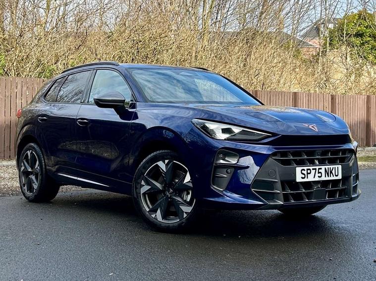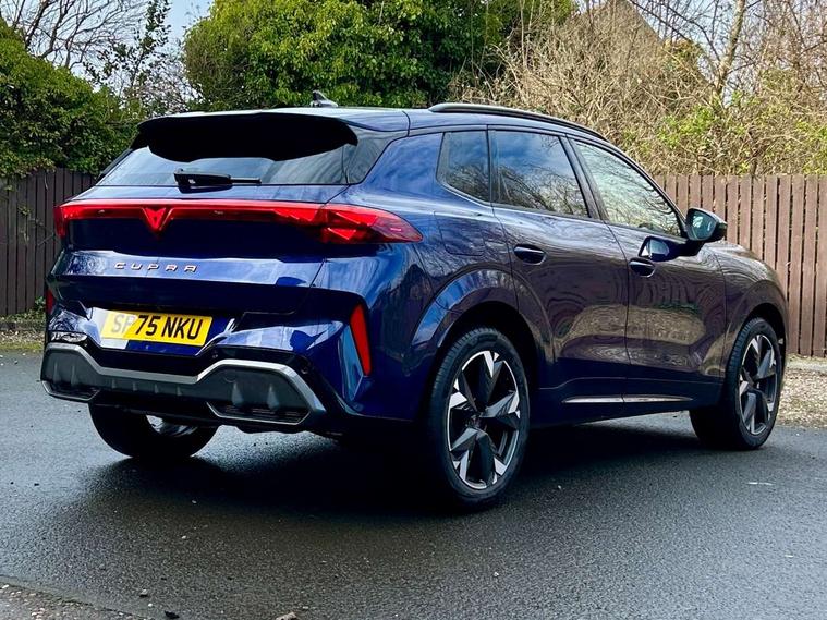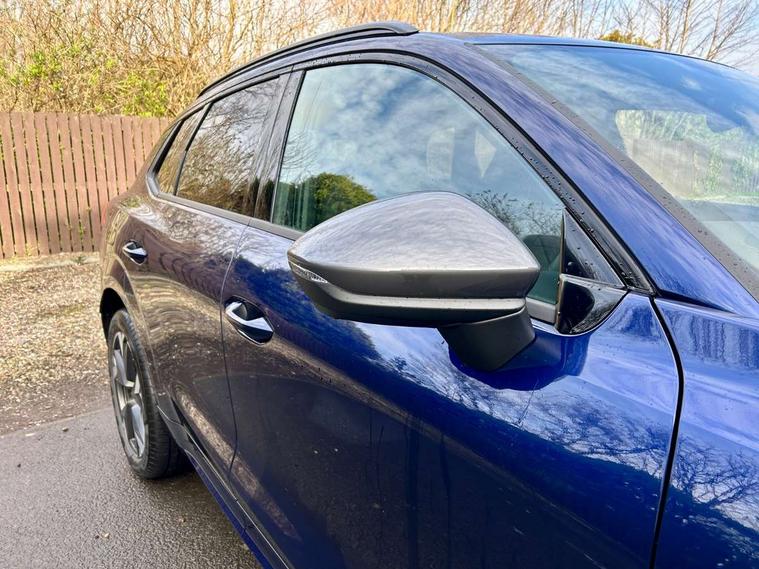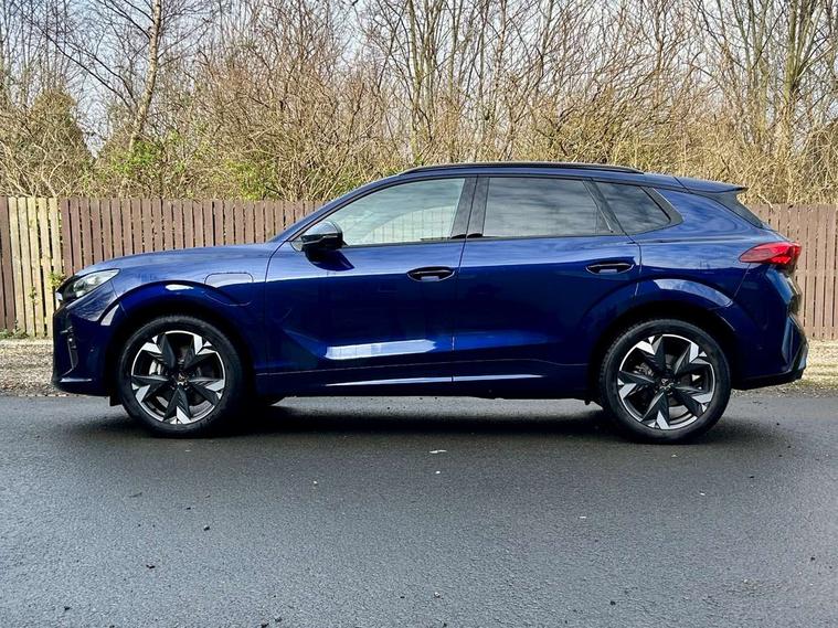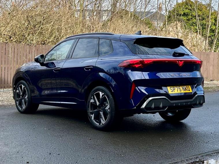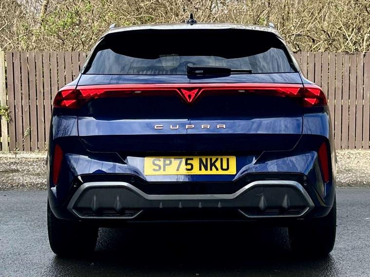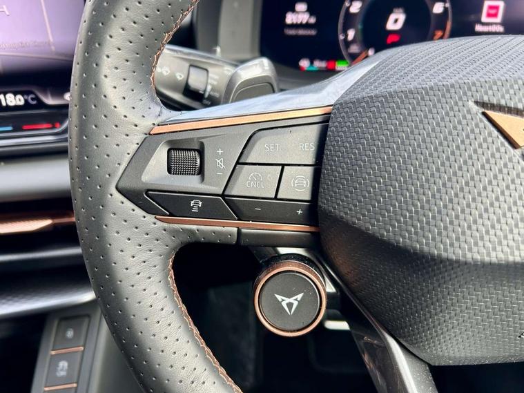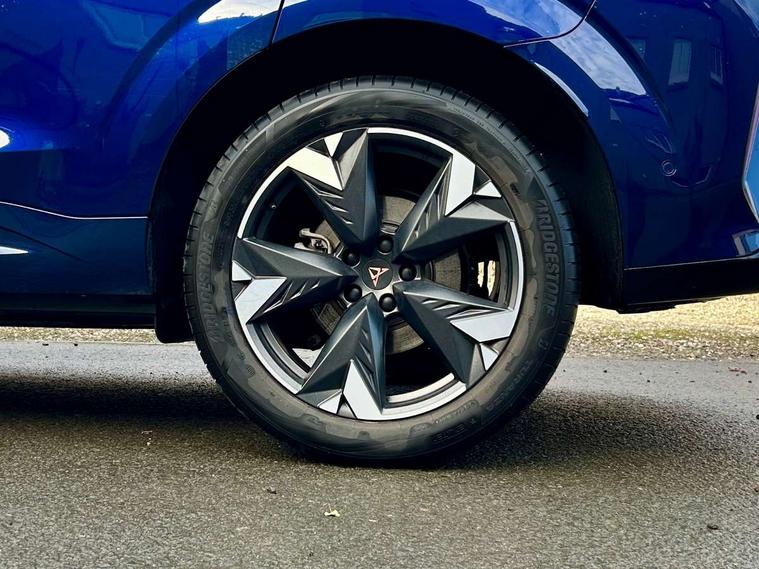 10.25" digital cockpit and configurable dashboard, Adaptive cruise control with follow-to-stop and speed limiter, Advanced driver alert system, Advanced lane assist with semi-automatic vehicle control in a medical emergency and traffic jam assist, Driving profile selection and conventional shock absorber, Dynamic road sign display, E-call, Electric tailgate with virtual pedal, Emergency steering support with turn assist, Front and rear parking sensors, Front assist (Forward collision warning with automatic braking) with multifunction camera and front cross traffic assist, Head up Display, Intelligent park assist, Media system with Nav - 12.9" touch display, voice control, full link phone (wired/wireless), DAB and Steering wheel mounted controls, Rear traffic assist, Side and exit assist, Speed sensitive power steering, Start/stop system with regenerative braking, Top view camera (front camera, rear camera, 2 side cameras), Wireless phone charger, 10 amp mode 2 charging cable, 16 amp mode 3 charging cable, Auto dimming rear view mirror, Black roof rails, CUPRA 3D rear lights with ceremony & swiping indicator and illuminated logo, Dark tinted rear windows, Daytime running lights with automatic headlight control and Coming and Leaving home function, Door mirrors with memory function and lowing function on passenger mirror, Dynamic headlight range control, Electric front/rear windows, Electrically adjustable, heated and folding door mirrors, Front fog lamps with cornering function, Heat reflecting windscreen, High beam assist, LED headlamps with signature "CUPRA LED", Rain sensing wipers, Rear fog light on one side, back up light on both sides, Rear side wing doors, Rear wash/wipe, Third brake light, Welcome lights (within exterior mirror housing), 3 seat bench in 2nd row, Black roof lining, Cupra sports pedals, Dinamica cloth upholstery, Driver seat memory function, Electrically adjustable front seats including lumbar support, Four x USB Type C ports (2 in front and 2 in rear), Front and rear head restraints, Front and rear reading lights X 4, Front centre armrest, Heated front seats, Heated leather wrapped multi function sports steering wheel with tiptronic, Illuminated interior front door sills, Isofix, Operating voltage 12V, Single front passenger seat, Smart wraparound interior lighting, Sunvisors with illuminated mirror, Three zone climate control with control panel in rear, Unsplit rear seat bench, split folding backrest, with centre armrest, Variable luggage/load compartment floor, 3 point seatbelts in front with pretensioner and electric height adjustment, 3 point seatbelts on all rear seats, Brake control system - ESC and brake booster, Child proof door locks, Driver and front passenger airbags, Electronic parking brake, Front and rear disc brakes, Front interaction airbag, Front passenger airbag deactivation switch, Front side airbags with curtain airbags, Pre-crash front and rear seat belt tensioner, window closure and hazard lights, Tyre pressure monitoring system, Visual and acoustic seat belt reminder, electric contact in front and rear, Anti theft alarm, Keyless locking and starting system with keyless access, Locking wheel bolts, Black decorative trims, Chrome interior detailing, 19" Spectrum exclusive machine alloy wheels, Breakdown kit, Tool kit,
