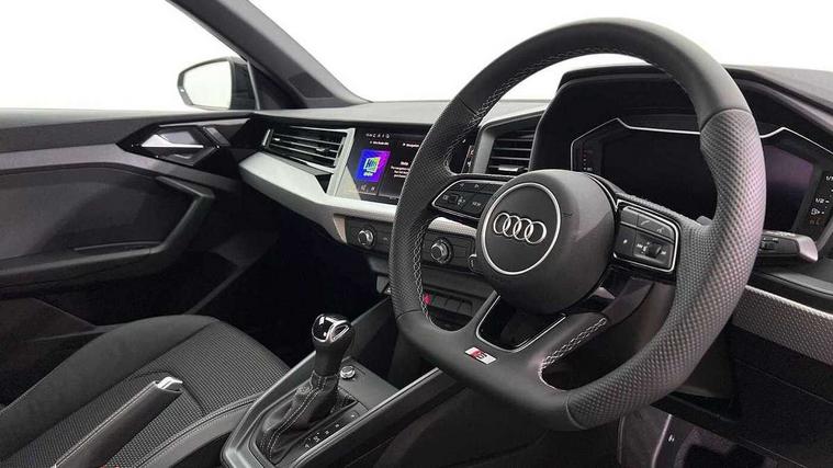 10.25" Digital instrument cluster display classis style instrument dials + speed, odometer, time, outside temperature, telephone menu + fuel level warning, Advanced driver attention and drowsiness monitor, Audi connect emergency call and service, Audi drive select, Audi remote connect and control, Bluetooth interface, Camera based traffic sign recognition, Cruise control, Driver's information system, Electromechanical power steering, Lane departure warning system, Rear parking sensor, Service interval indicator, Smartphone interface, Speed limiter, Start stop system with recuperation, Voice control system, Washer fluid level indicator, Sports suspension, 2 x USB type C connection points, 6 loudspeakers, DAB Digital radio, MMI radio plus with 10.1" colour MMI display screen and MMI touch, Auto dimming rear view mirror, Black door mirror housings, Black side skirts, Body coloured bumpers, Door sill trims with aluminium inlays and logo, Electric front and rear windows, Electrically adjustable, heated, folding door mirrors with integrated LED side indicator, Front side air inlets in grained matt black and C frame in anthracite black, Front wing badges, Headlight cleaning system, Heat insulating glass windscreen and side windows, Heated rear windscreen, High level LED brake light, LED daytime running lights, LED headlights with range control LED rear lights + dynamic rear indicators, Light and rain sensors, Privacy glass, Radiator grille and rear diffuser in matt anthracite black, Radiator protective grille frame in matt aluminium silver, Rear fog lights, Rear side wing doors, Rear wiper, Side front spoiler lips in grained matt black, 12V socket in centre console with two cup holders, 3 rear seats with headrests, 3 seat bench in 2nd row, 3 spoke flat bottomed multi-function plus leather steering wheel with S badging, grips in preforated leather, contrast stitching and paddle shift, 40:60 Split folding rear seat or fully collapsed, Black carpets, Black cloth headlining, Front and rear velour black floor mats with contrast stitching in fine silver, Front head restraints, Front passenger seat, Height and reach adjustable steering wheel, Interior lighting includes roof module, front and rear reading lights and right luggage compartment lighting, ISOFIX child seat mounting for front passenger and outer rear seats including top tether attachment point of outer rear seats, Leather gear knob with aluminium trim, Leather handbrake grip, Manual air conditioning, Manual height adjustable for driver and front passenger seat, Manually adjustable lumbar support in front seats, Stainless steel pedals, Ambient lighting package - A1, Black styling pack - A1 Sportback Black Edition, Luggage compartment pack - A1, 3x3 point rear seatbelts, Audi pre-sense front with pedestrain and cyclist recognition, Brake assist function, Driver and front passenger airbag with front side and head airbags, Electronic Stability Control including ABS, EBD, ASR and EDL, Front passenger airbag deactivation switch, Hill hold assist, Manual rear child locks, Seatbelt height adjustment for front seats, Seatbelt monitoring, Tyre pressure loss indicator, Warning triangle and first aid kit, Anti theft alarm, Anti theft wheel bolts, Immobiliser, Remote control key with safelock, Aluminium trim for control switches, air vents and digital instrument cluster, Black dashboard, Silver grey inlays polygon structure in diamond paint finish, Structured grey accent surfaces insert of air vents, interior door handle recesses and centre console in quartz paint finish,