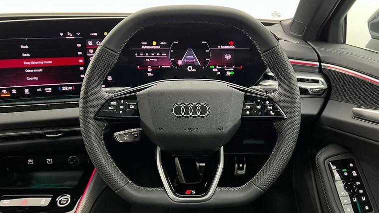 Audi application store, Audi assistant, Audi connect emergency call and service, Audi connect with Amazon Alexa Integration, Audi digital key, Audi drive select, Audi phone box with wireless charging, Audi virtual cockpit, Automatic start/stop system with coasting functionality, Bluetooth interface, Luggage compartment lid with Electric opening / closing, MMI navigation plus with high resolution 14.5" OLED touchscreen colour display, Power assisted steering, Service interval indicator, Smartphone interface includes wireless Apple carplay/Android Auto, Voice control system, Quattro with ultra technology, Sports suspension, Audi sound system impressive sound with 10 loudspeakers including centre speaker and subwoofer, 6-channel amplifier with a total output of 180 watts, DAB Digital radio, USB ports with charging function, Aluminium roof rails, Audi Matrix LED technology, Auto dimming rear view mirror, Automatic-dynamic headlight range control, Body colour door mirrors, Body coloured door handles, Dipped beam, main beam, position light, dynamic indicator and cornering light, Door mirrors - electrically adjustable, heated, folding and auto dimming on both sides, Dynamic light scenarios of the coming home/leaving home function when stationary, Electric front/rear windows, Frameless auto dimming interior rear view mirror, Front illuminated aluminium inlay door sill trims with S logo, Headlight cleaning system, LED headlights Plus incl. digital daytime running lights, turning light, all-weather light, motorway light, manouevring light and intersection light, LED rear lights pro incl. brake lights, tail lights, rear number plate lights, reversing lights, continuous light strip, LED third brake light, Privacy glass, Rain and light sensors, Rear and side windows with heat insulating glass, Rear side wing doors, Rear wiper, Roof spoiler, S line exterior styling, Sport exterior inc Radiator grille, air inlets and diffuser in scandium grey as well as inlay in diffuser in selenite silver, White rhombus logo projection light in exterior mirrors, Window trim strips in aluminium look, Windscreen with heat insulating and acoustic glazing, 3 seat bench in 2nd row, 3-spoke Sport leather steering wheel flat top and bottom with multifunction and shift paddles, 4 way electric lumbar support for driver and front passenger, 4 zone deluxe automatic climate control, 40:20:40 split folding rear seat bench with centre armrest and cup holders, Centre armrest, front- adjustable angle with four settings, Electrically adjustable front seats, Front head restraints, Heated front seats, i-Size child seat mounting on the front passenger side and outer rear seats, i-Size and top tether on the outer rear seats, Manual steering wheel adjustment, Net partition, Rear headrests, Single front passenger seat, Sport front seats, Stainless steel pedals and footrest, Steering wheel trim in chrome look, S emblem, steering wheel grips in perforated leather and contrasting stitching, Twin leather/artificial leather upholstery, Ambient lighting package plus - A6, Drive and Park assistance package - A6, Protective warning assistance package - A6, 3x3 point rear seat belts, Acoustic vehicle alerting system, Black seat belts, Convenience key with safelock, Driver and front passenger airbags, EBD - Electronic brakeforce distribution, Electric rear child safety lock, Electromechanical parking brake, Electronic Stability Control (ESC) including ABS, ASR and EDL, First aid kit with warning triangle and vests, Front passenger airbag deactivation, Seatbelt monitoring, Side airbags front with head airbag system and interaction airbag, Standard 18"steel disc brakes front and rear, Tyre pressure monitoring system, Anti theft alarm, Anti-theft wheel bolts, Immobiliser, Keyless Go, Remote central locking, Accents in the interior in aluminium look, Inlays in matt brushed aluminium with linear embossing, anthracite, Upper and lower interior elements in leatherette with contrasting stiching, Wraparound interior elements in artificial leather, Tyre repair kit,