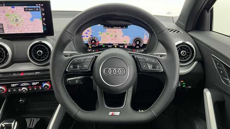 3D map display, Audi connect navigation and infotainment includes innovative services, Audi connect remote and control connects your vehicle to your smartphone, Audi drive select: S tronic - power steering assistance + engine + gearshift (modes: comfort, auto, dynamic, efficiency, individual), Audi smartphone interface - Apple carplay/Android Auto, USB connect, 2xSDXC card readers, voice control for navi, telephone, music and 3rd party apps, Audi virtual cockpit, Automatic start/stop system with recuperation, Bluetooth interface includes bluetooth audio streaming, Camera based traffic sign recognition, Cruise control, Distraction and Fatigue warning, E-call, Jukebox hard drive memory for music (10GB), Lane departure warning, MMI navigation plus with 8.8" touchscreen, Natural voice recognition, Power operated tailgate, Progressive steering, Rear parking sensors, Sport suspension, 6 passive loudspeakers, DAB Digital radio, USB type C port, Audi beam, Auto dimming rear view mirror, Black window trims, Bumper in full body colour paint finish, Electrically adjustable, folding, auto dimming and heated door mirrors with integrated LED side indicators, Front windscreen with grey tinted sunband, LED daytime running lights, LED headlights with dipped beam, high beam, position lights, indicators, LED rear lights, LED third brake light, Privacy glass - dark tinted rear and rear side windows from B-pillar backwards, Rear side wing doors, Rear wiper, Variable front intermittent wipers, Wheel arch trims in manhattan grey, 12V socket in front, 3 seat bench in 2nd row, 3 spoke flat bottomed multi-function leather sport steering wheel with gear shift paddles with S logo, 4-way electric lumbar support for front seats including manual seat height adjustment for both front seats, 60/40 split folding rear seat bench, Black carpets, Black cloth headlining, Front and rear head restraints, Front centre armrest, Front sport seats, Front/rear floor mats, Height/reach adjust steering wheel, Illuminated door sill trims with S logo, ISOFIX child seat mounting in front passenger and rear outer seats, Manual air conditioning, Single front passenger seat, Stainless steel pedals, Black styling pack - Q2, 3x3 point rear seatbelts, 6 airbags - Front, curtain and front side airbags, Electromechanical parking brake, Electronic stabilisation control including ABS, ASR and EDL, Front passenger airbag deactivation, Hill hold assist, Pre-sense front with pedestrian recognition, Seatbelt monitoring, Tyre pressure warning light with visual and acoustic warning, Warning triangle and first aid kit, Anti theft wheel bolts, Electronically operated child locks, Remote central door locking, Thatcham category 1 alarm, Aluminium interior element, Black dashboard, Gloss black centre console, Matt brushed aluminium trim inlays, Tool kit,