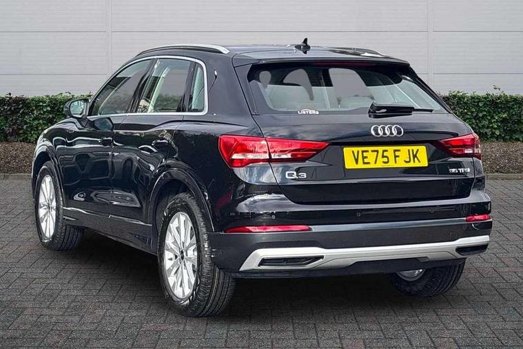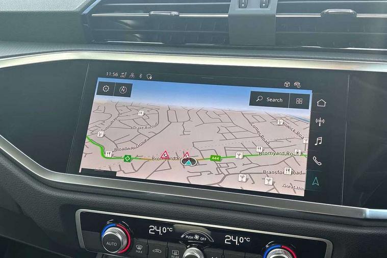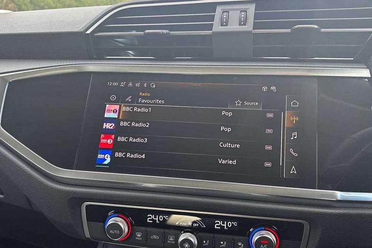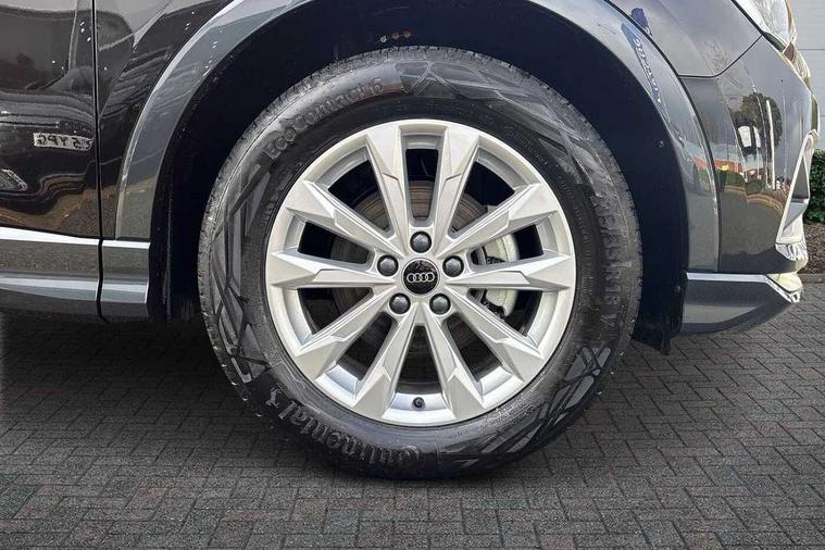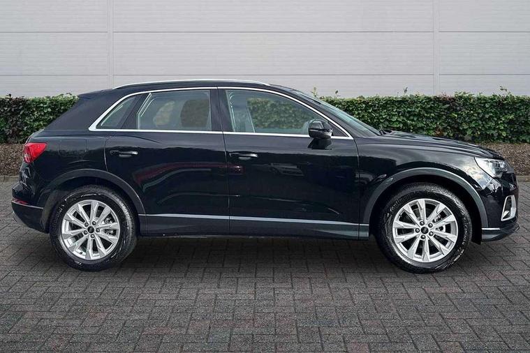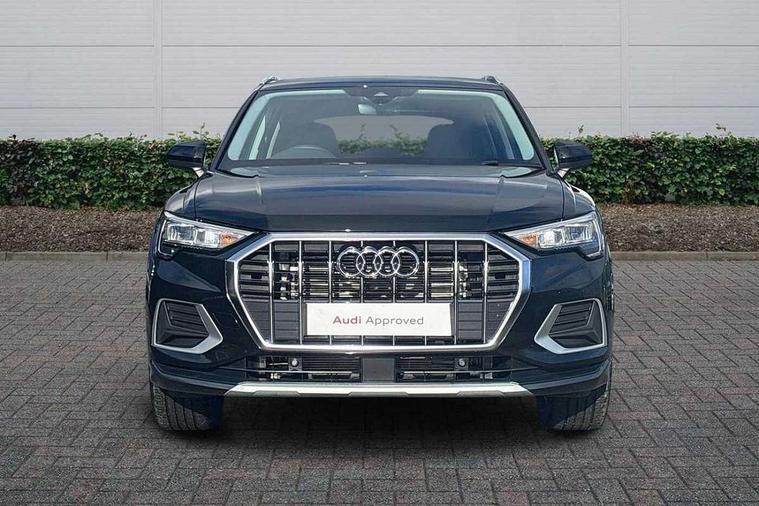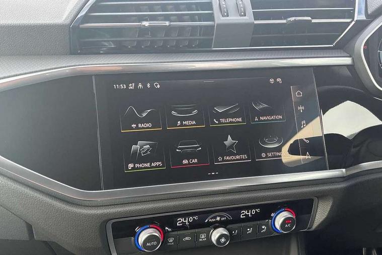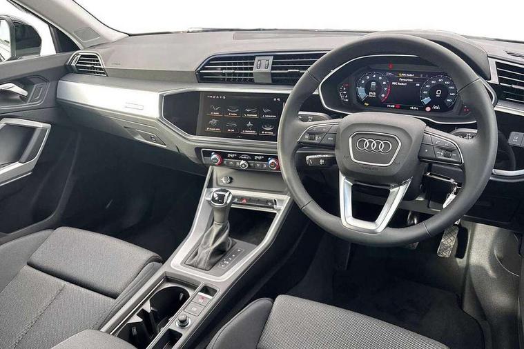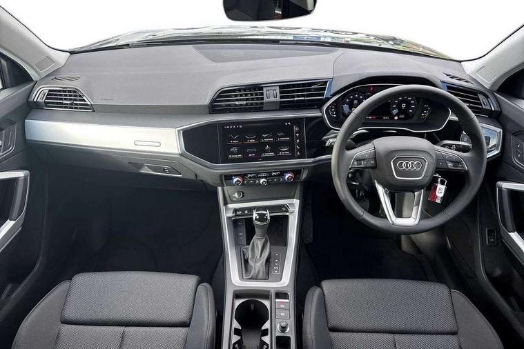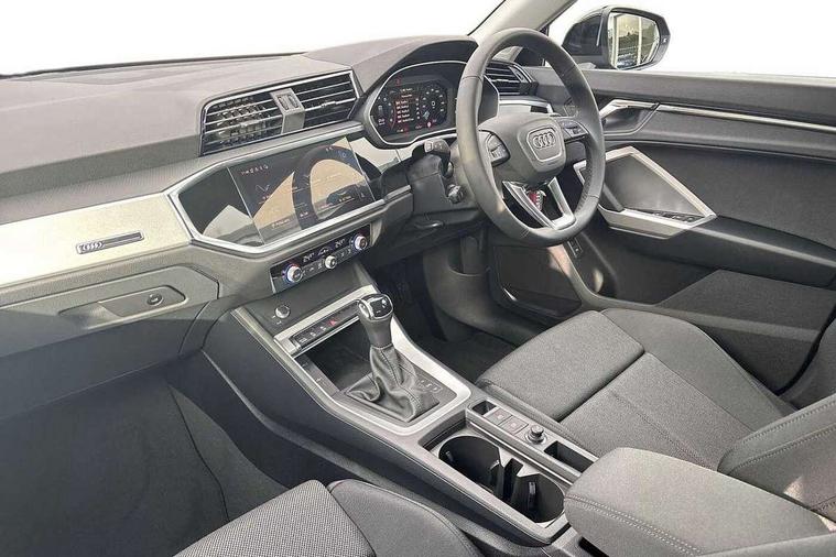 Amazon alexa Integration, Audi connect safety and service, Audi drive select, Audi lane departure warning, Audi Virtual Cockpit - 10.25" display, Bluetooth interface, Camera based traffic sign recognition, Distraction and Fatigue warning, Legal emergency call, MMI Navigation Plus with high resolution 10.1 inch touchscreen colour display, Power operated tailgate, Progressive steering, Service interval indicator, Smartphone interface includes wireless Apple carplay/Android Auto, Start stop system with recuperation, Voice control system with natural language interaction, Standard suspension, 2 USB-C ports with charge and data functions, 6 passive loudspeakers, DAB digital radio module, Acoustic windscreen, Aluminium roof rails, Aluminium window trim, Anthracite black radiator grille, Auto dimming door mirrors, Auto dimming frameless rear view mirror, Electrically folding, adjustable and heated door mirrors with integrated LED side indicators and kerb view function for passenger side, Front and rear bumpers, wheel arch trims and side sill trims in contrasting Manhattan grey paint finish, Front and rear electric windows, Front fog lights, Front side air inlets in matt selenite silver, Front spoiler in matt selenite silver, Grille vertical bars in aluminium silver/Matt, High gloss black finish B and C pillars, LED headlights with LED daytime running lights, LED third brake light, Rain and light sensors, Rear diffuser strip in matt selenite silver, Rear side wing doors, Rear wiper, Variable front intermittent wipers, 12V socket in rear centre console, 3 seat bench in 2nd row, 3 spoke multi-function leather steering wheel, 40:20:40 folding with manual adjustment for 60:40 forwards/backwards position and backrest angle, Black carpet mats, Door sill trims with aluminium inlay, Dual zone electronic climate control, Electric lumbar support, Front and rear floor mats, Front and rear headrests, Front centre armrest, Height and reach adjustable steering wheel, ISOFIX child seat mounting for front passenger with airbag deactivation and outer rear seat including top tether attachment point for outer rear seats, Luggage compartment sill protection in stainless steel, Lunar silver cloth headlining, Manual front seats with height adjustment, Single front passenger seat, Non smoking pack - Q3, 3x3 point rear seatbelts, 6 airbags - Driver, front passenger, curtain and side windows, Audi pre-sense front with pedestrain and cyclist recognition, Electrically operated child locks on rear doors, Electromechanical parking brake, Electronic stabilisation control including ABS, ASR and EDL, Front seatbelt reminder, Hill descent control, Hill hold assist, Pre sense basic, Seatbelt monitoring, Tyre pressure warning, Warning triangle and first aid kit, Anti theft wheel bolts, Immobiliser, Remote central locking, Thatcham approved category 1 anti theft alarm, Aluminium look interior elements, Detail dashboard around MMI touch colour display in glass look, black with surround in aluminium look, Micrometallic silver inlay,