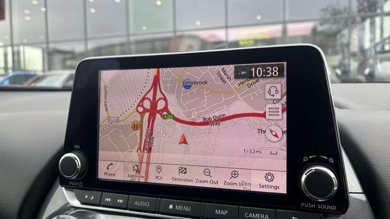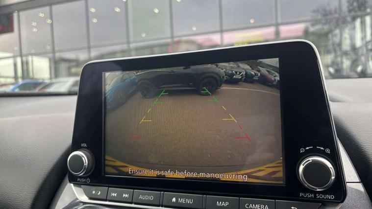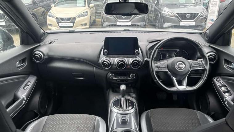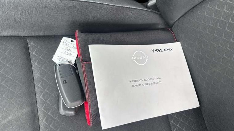 7" full colour TFT screen combimeter, Apple CarPlay and Google Android auto, Drive modes select (Eco, normal and sport), Emergency and breakdown call, Front parking sensor, Idle start/stop system, Intelligent lane intervention, Lane departure warning system, Nissan connect 8" touch screen entertainment system, Nissan connect nav with TomTom traffic, Nissan connect services and Wifi connection, Outside temperature sensor, Power Steering, Rear parking sensor, Traffic sign recognition, Trip computer, Voice recognition, Gasoline particulate filter, 6 speakers, Bluetooth system, USB, Aux-in and 12V socket, DAB Digital radio, Rear console USB port, Auto dimming interior rear view mirror, Auto headlights, Automatic hazard signal with emergency stop signal, Body colour bumpers, Body colour door handles, Electrically adjustable door mirrors with integrated indicators, Follow me home headlights, Front and rear electric window with one touch driver window, Heated and auto folding door mirrors, High beam assist, LED daytime running lights, LED headlamps, LED rear fog lamp, LED rear lamps, Rain sensor windscreen wipers, Rear privacy glass, Rear side wing doors, Rear wiper, Three blink turn signal, 3 height adjustable rear headrests, 3 seat bench in 2nd row, 60/40 split folding rear seat, Automatic climate control, Card holder on driver sunvisor, Cloth upholstery with black and metallic grey syntech leather inserts, Driver and passenger sliding and reclining seats, Driver side rear coat hanger, Driver/passenger sunvisors and vanity mirrors, Front and rear cabin lights, Front armrest, Front door pockets with bottle holders, Front head restraints, Front/rear passenger grab handles, Grey synthetic leather kneepad, Height adjustable driver's seat, Internal chrome door handles, Leather gearshift knob, Leather steering wheel, Luggage board, Luggage space lighting, Monoform sporty seats, Multifunction steering wheel, Rear door bottle holders, Single front passenger seat, Steering wheel mounted gearshift paddles, Telescopic steering wheel adjustment, Two cupholders in front centre console, Two rear isofix child seat anchorage points with top tether, Welcome light and console tray ambient lighting, ABS with EBD and brake assist, Active ride control, Active Trace Control, Driver and passenger airbags, Driver and passenger side airbags, Electric handbrake with auto hold function, Electronic Stability Programme (ESP), Front and rear curtain airbags, Height adjustable seatbelts, Hill start assist, Intelligent emergency braking with pedestrian and cyclist recognition, Rear door child safety locks, Seatbelt reminder for driver/front passenger and rear seats, Single tone horn, Three 3 point rear seatbelts, Traction control, Tyre pressure monitoring system, VDC Dynamic Vehicle Control, Ventilated rear brake discs, Alarm, Immobiliser, Intelligent key and start push button with walk away lock and approach unlock functions, Remote central locking,