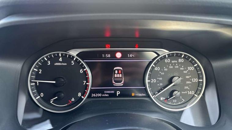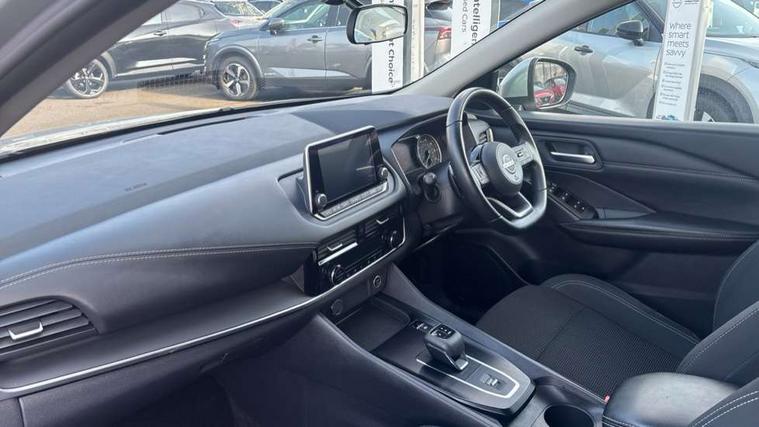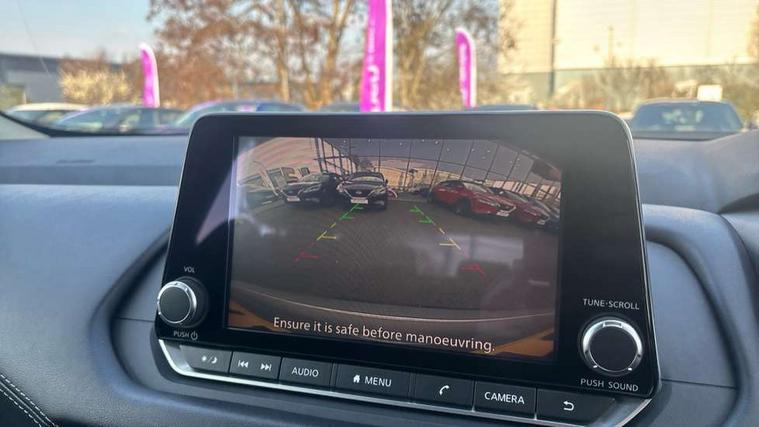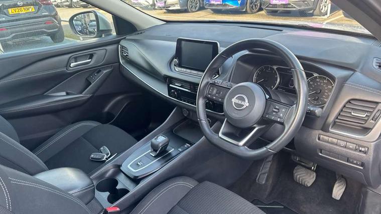 7" High definition full colour TFT screen combimeter, Android auto/Apple CarPlay (Wired), Blind spot warning, Drive modes (sport, normal, eco), Electric speed sensitive power steering, Emergency and breakdown call, Idle stop/start system, Intelligent Cruise control (ICC), Intelligent driver alert system, Intelligent forward collision warning, Intelligent lane intervention, Lane departure prevention, Lane departure warning system, Maximum speed limiter, Nissan connect 8" touchscreen infotainment system, Push button starter, Rear cross traffic alert, Rear parking sensors, Rear view camera, Traffic sign recognition with legal speed adjustment, Trip computer, 6 speakers, AM/FM audio system with DAB, Bluetooth audio streaming, Front USB connections (Type-A and Type-C), Auto dimming rear view mirror, Auto rear wiper when reversing, Automatic hazard signal with emergency stop signal, Body colour mirror caps, Body coloured door handles, Bodyside mouldings, Chrome side window finisher, Door handle with button, Electric auto folding door mirrors, Electrically adjustable and heated door mirrors with LED turn indicator, Follow me home headlights, High beam assist, Intelligent auto headlights, LED daytime running lights, LED Headlights, LED rear lights, One touch front and rear electric windows with remote opening and closing, Partially body coloured bumpers, Rear reversing light (bulb lighting), Rear roof spoiler, Rear side wing doors, Shark fin antenna, Splash free rain sensing wipers, Three blink turn signal, 12v power socket in dashboard and luggage, 2x Rear coat hooks, 3 bench rear seats in 2nd row, 3 rear headrests, 4 folding assist grip, 6-way manually adjustable driver's seat, 60/40 split folding rear seat bench, Centre console storage tray, Chrome interior door handles, Cloth monoform upholstery, Driver and front passenger sunvisors with illuminated vanity mirrors, Driver seat back pocket, Dual zone automatic climate control with pollen filter, Electrically adjustable lumbar support for driver, Front and rear door storage, Front centre console and armrest, Front cupholders x 2, Front door with bottle holders, Glovebox with light, Hard trunk cover, Height adjustable driver's seat, Height adjustable front headrests, Height adjustable passenger seat, Leather steering wheel, Luggage space lighting, Manually adjustable passenger (slide recline + lifter), Multifunction steering wheel, Passenger seat back pocket, Rear armrest with 2 cupholders, Rear door bottle holders, Single front passenger seat, Steering wheel gearshift paddles, Steering wheel switches, Sunglasses holder, Tilt/telescopic adjustable steering wheel, Two rear isofix child seat anchorage points with top tether, 3x3 point rear seatbelt pretensioners + load limiters, ABS with EBD and brake assist, Active brake limited slip, Auto hold function, Child locks on rear doors, Curtain and front side, far side airbags, Driver and passenger airbags, Driver, passenger and 2nd row rear seat belt reminder, Electronic parking brake, Front seatbelt pretensioners + load limiters, Height adjustable front seatbelts, Hill start assist, Intelligent blind spot intervention, Intelligent front emergency braking with pedestrian, cyclist recognition and junction assist, Intelligent rear automatic braking, Tyre pressure monitoring system, Vehicle dynamic control, Capless fuel filler, Engine immobiliser, Intelligent Key, Remote central door locking with deadlocking, Thatcham Cat.1 alarm, Interior instrumental panel A finisher, 17" Alloy wheels, Tyre puncture repair kit,