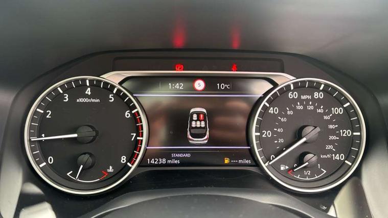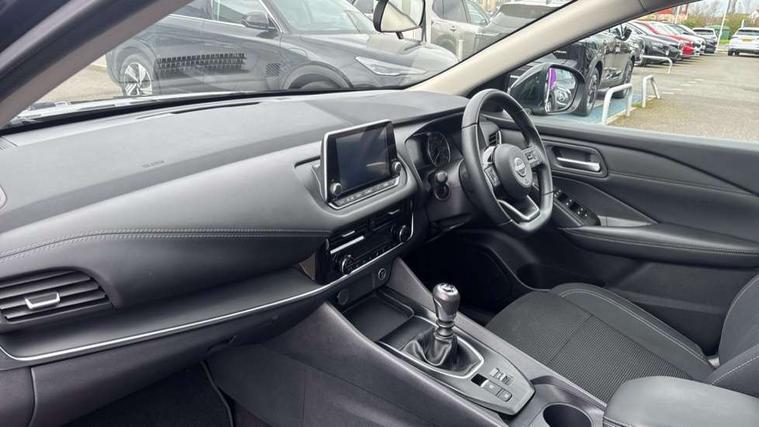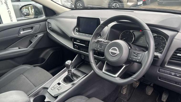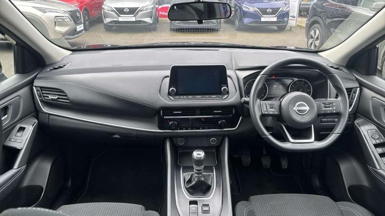 7" High definition full colour TFT screen combimeter, Android auto/Apple CarPlay (Wired), Blind spot warning, Drive modes (sport, normal, eco), Electric speed sensitive power steering, Emergency and breakdown call, Idle stop/start system, Intelligent Cruise control (ICC), Intelligent driver alert system, Intelligent forward collision warning, Intelligent lane intervention, Lane departure prevention, Lane departure warning system, Maximum speed limiter, Nissan connect 8" touchscreen infotainment system, Push button starter, Rear cross traffic alert, Rear parking sensors, Rear view camera, Traffic sign recognition with legal speed adjustment, Trip computer, 6 speakers, AM/FM audio system with DAB, Bluetooth audio streaming, Front USB connections (Type-A and Type-C), Auto dimming rear view mirror, Auto rear wiper when reversing, Automatic hazard signal with emergency stop signal, Body colour mirror caps, Body coloured door handles, Bodyside mouldings, Chrome side window finisher, Door handle with button, Dusk sensor, Electric auto folding door mirrors, Electrically adjustable and heated door mirrors with LED turn indicator, Follow me home headlights, High beam assist, Intelligent auto headlights, LED daytime running lights, LED Headlights, LED rear lights, One touch front and rear electric windows with remote opening and closing, Partially body coloured bumpers, Rear reversing light (bulb lighting), Rear roof spoiler, Rear side wing doors, Shark fin antenna, Splash free rain sensing wipers, Three blink turn signal, 12v power socket in dashboard and luggage, 2 way electrical driver lumbar adjustment, 2x Rear coat hooks, 3 bench rear seats in 2nd row, 3 rear headrests, 4 folding assist grip, 6-way manually adjustable driver's seat, 60/40 split folding rear seat bench, Centre console storage tray, Chrome interior door handles, Cloth monoform upholstery, Driver and front passenger sunvisors with illuminated vanity mirrors, Driver seat back pocket, Dual zone automatic climate control with pollen filter, Front and rear door storage, Front centre console and armrest, Front cupholders x 2, Front door with bottle holders, Glovebox with light, Hard trunk cover, Height adjustable front headrests, Height adjustable passenger seat, Leather shift knob, Leather steering wheel, Luggage space lighting, Manually adjustable passenger (slide recline + lifter), Multifunction steering wheel, Passenger seat back pocket, Rear armrest with 2 cupholders, Rear door bottle holders, Single front passenger seat, Steering wheel switches, Sunglasses holder, Tilt/telescopic adjustable steering wheel, Two rear isofix child seat anchorage points with top tether, 3x3 point rear seatbelt pretensioners + load limiters, ABS with EBD and brake assist, Active brake limited slip, Auto hold function, Child locks on rear doors, Curtain and front side, far side airbags, Driver and passenger airbags, Driver, passenger and 2nd row rear seat belt reminder, Electronic parking brake, Front seatbelt pretensioners + load limiters, Height adjustable front seatbelts, Hill start assist, Intelligent blind spot intervention, Intelligent front emergency braking with pedestrian, cyclist recognition and junction assist, Intelligent rear automatic braking, Tyre pressure monitoring system, Vehicle dynamic control, Capless fuel filler, Engine immobiliser, Nissan i-key, Remote central door locking with deadlocking, Thatcham Cat.1 alarm, Interior instrumental panel A finisher, 17" Alloy wheels, Tyre puncture repair kit,
