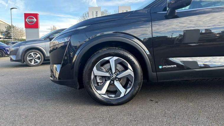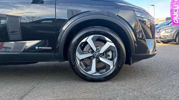 Blind spot warning, Drive modes (sport, normal, eco), e-Pedal step, Electric speed sensitive power steering, Emergency and breakdown call, Front and rear parking sensors, Full Digital 12.3" TFT Digital Combimeter, Google maps services - search, weather, 3D maps and Google street view, Idle stop/start system, Intelligent around view monitor, Intelligent Cruise control (ICC), Intelligent driver alert system, Intelligent forward collision warning, Intelligent lane intervention, Lane departure prevention, Lane departure warning system, Maximum speed limiter, Moving object detection, Nissan connect 12.3 inch touchscreen infotainment system, Nissan connect navigation, Push button starter, Rear cross traffic alert, Rear view camera, Remote control services - door locks, lights, horn and car locator, Telematics - notifications and connectivity services, TomTom live traffic services, Traffic sign recognition with legal speed adjustment, Trip computer, Virtual personal assistant and firmware over the air capability, Wireless Apple CarPlay and wired Android Auto, 6 speakers, AM/FM audio system with DAB, Bluetooth audio streaming, Front USB connections (Type-A and Type-C), Rear USB charging only ports (Type-A and Type-C), Auto dimming rear view mirror, Auto rear wiper when reversing, Automatic hazard signal with emergency stop signal, Body colour mirror caps, Body coloured door handles, Bodyside mouldings, Chrome side window finisher, Door handle with button, e-POWER badging, Electric auto folding door mirrors, Electrically adjustable and heated door mirrors with LED turn indicator, Follow me home headlights, High beam assist, Intelligent auto headlights, LED 3rd brake light, LED daytime running lights, LED Headlights, LED rear lights, One touch front and rear electric windows with remote opening and closing, Partially body coloured bumpers, Privacy glass, Rear bumper with graphite insert, Rear reversing light (bulb lighting), Rear roof spoiler, Rear side wing doors, Rear styling plate, Shark fin antenna, Splash free rain sensing wipers, Super UV and infrared cut glass, Three blink turn signal, 12v power socket in dashboard and luggage, 2x Rear coat hooks, 3 bench rear seats in 2nd row, 3 rear headrests, 4 folding assist grip, 6-way manually adjustable driver's seat, 60/40 split folding rear seat bench, Ambient lighting around centre console, Centre console storage tray, Chrome interior door handles, Cloth monoform upholstery, Driver and front passenger sunvisors with illuminated vanity mirrors, Driver seat back pocket, Dual zone automatic climate control with pollen filter, e-POWER shifter, Front and rear door storage, Front centre console and armrest, Front cupholders x 2, Front door with bottle holders, Glovebox with light, Hard trunk cover, Height adjustable driver's seat, Height adjustable front headrests, Height adjustable passenger seat, Luggage board system, Luggage space lighting, Manually adjustable passenger (slide recline + lifter), Multifunction steering wheel, Passenger seat back pocket, Rear armrest with 2 cupholders, Rear door bottle holders, Single front passenger seat, Soft PVC kneepad, Steering wheel switches, Sunglasses holder, Tilt/telescopic adjustable steering wheel, Two rear isofix child seat anchorage points with top tether, Welcome light and console tray ambient lighting, 3x3 point rear seatbelt pretensioners + load limiters, ABS with EBD and brake assist, Active brake limited slip, Auto hold function, Child locks on rear doors, Curtain and front side, far side airbags, Driver and passenger airbags, Driver, passenger and 2nd row rear seat belt reminder, Electronic parking brake, Front seatbelt pretensioners + load limiters, Height adjustable front seatbelts, Hill start assist, Intelligent blind spot intervention, Intelligent front emergency braking with pedestrian, cyclist recognition and junction assist, Intelligent rear automatic braking, Tyre pressure monitoring system, Vehicle dynamic control, Capless fuel filler, Engine immobiliser, Intelligent Key, Remote central door locking with deadlocking, Thatcham Cat.1 alarm, Interior instrumental panel B finisher, 18" Diamond cut alloy wheels, Tyre puncture repair kit,