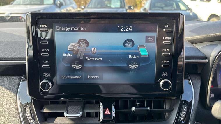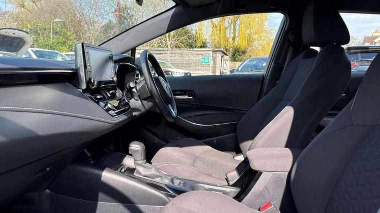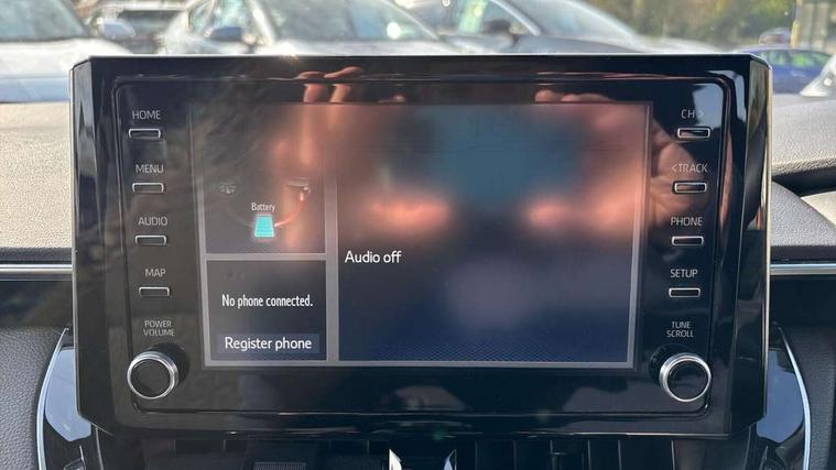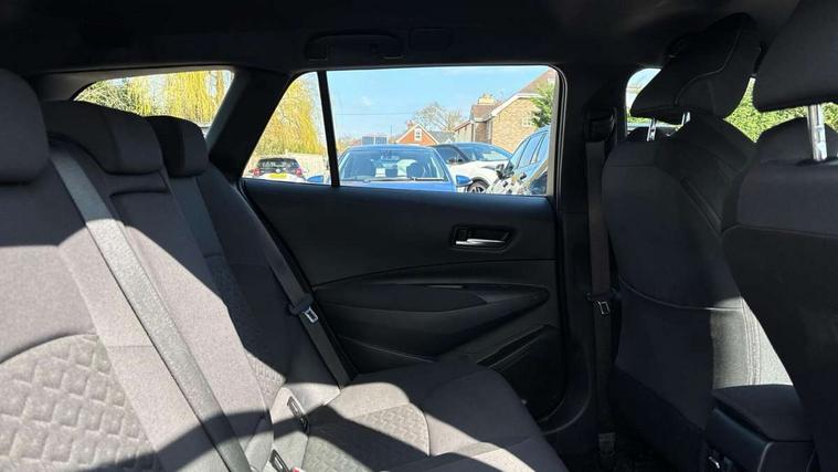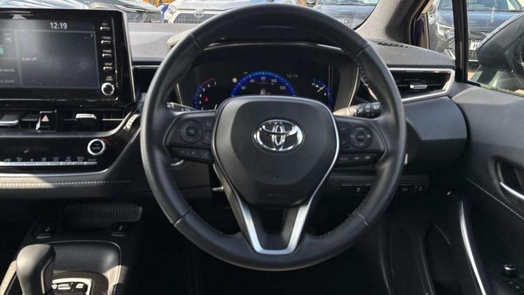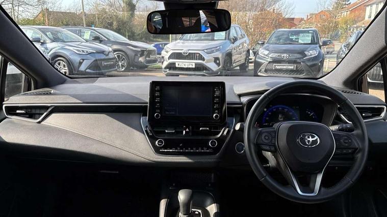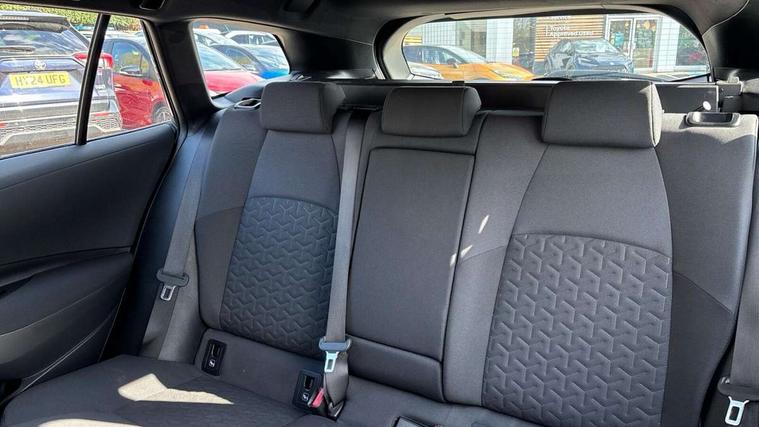 7" Multi information display screen, Bluetooth telephone connectivity, Connected car functionality upgrade, tracker, remote status and e-care, Dynamic radar cruise control (with RSA) including switch on steering wheel, E-call, Electrically assisted power steering, EV drive indicator, Lane Departure Alert (LDA) switch on steering wheel, Memory on adjustable speed limiter, Push button start, Reversing camera, Smartphone integration with Apple CarPlay and Android auto, Gasoline particulate filter, Vehicle Stability Control (VSC), 6 speakers, 8" Touchscreen with MM19 Multimedia system and voice recognition, AM/FM radio, DAB Digital radio, USB and Aux in connectors + 12V front outlet, USB charging port in centre storage box, Aluminium roof rails, Anti-jam protection on power windows, Auto up and down function on all power windows, Automatic headlights with high beam assist, Black metallic surround on lower front grille, Black toyota logo in front, Body colour rear spoiler, Body coloured bumpers, Body coloured door mirrors, Body coloured outside door handles, Follow me home headlights, LED daytime running lights, LED front fog lights, LED Headlights, LED High mounted stop light, Manual day/night rear view mirror, Noise reduction layer on front windows, Power adjustable heated door mirrors, Power front windows, Power rear windows, Rain sensor, Rear side wing doors, Rear window defogger, Rear window wiper, Shark fin antenna, Time adjustment on intermittent wiper, Turning signal integrated indicators in door mirrors, Unique lower skirt, Unique side rocker with black insert, UV-filter on driver and passenger windows, 12v power outlet - luggage side, 3 rear headrests, 3 seat bench in 2nd row, 3 spoke leather steering wheel + gear knob, 60/40 split folding rear seat, Adjustable speed limiter switch on steering wheel, Audio, multimedia and telephone switches on steering wheel, Boot light, Boot underfloor storage, Clean air filter, Driver and front passenger personal light, Driver and passenger assist grip, Driver and passenger sun visor with mirror and light, Dual sided deck board in boot, Dual zone automatic air conditioning with ECO mode switch, Fabric armrests, Front and rear cup and bottle holders, Front and rear door pockets, Front head restraints, Front passenger seat, Heated driver and front passenger seats, Illuminated entry system in room lamp, ISOFIX seat fixing (2 fixings on rear outer seats), Leather gear shift with satin chrome on gear shift console, Manual height adjustable for driver and front passenger seat, Passenger seat back pocket, Pollen filter, Power adjustable lumbar support on driver seat, Power window switches with satin chrome inserts, Quilted fabric upholstery with grey stitches seats, Rear armrest with 2 cupholders, Rear passenger air vents, Rear passenger coat hooks (2), Rear passenger personal lights, Retractable tonneau cover with luggage partition net, Satin chrome inside door handles, Shopping bag hooks in luggage compartment, Side storage in boot, Sliding armrest on centre console box, Slow opening glovebox with lights, Tilt/telescopic steering column, Tonneau cover with under floor storage, Voice recognition switch on steering wheel, Whiplash Injury Lessening (WIL) feature (active headrest) for seats, Toyota safety sense 2 pack - Corolla, 3x3 point rear seatbelts, Adjustable driver and front passenger seat belt extender to top anchor point, Anti lock braking system + Electronic brake force distribution, Brake assist function, Child locks on rear doors, Downhill Assist Control (DAC), Electronic parking brake, Emergency brake light signal (EBS), Front passenger airbag on/off switch, Front seatbelt reminder, HAC - Hill start assist control, Rear seat belt reminder, Seatbelt pretensioners and force limiters, Supplemental restraint system (SRS) 7 airbags - dual driver, dual side curtain, side impact and driver knee airbags, Traction control, Tyre pressure warning system, Acoustic vehicle alert system (AVAS), Alarm with motion sensor and immobilizer, Remote central locking + deadlocks, Satin chrome dash trim, Soft touch texture on upper dashboard, Stitching on lower dashboard, Space saver spare wheel, Unique wheel finish with red wheel cap,